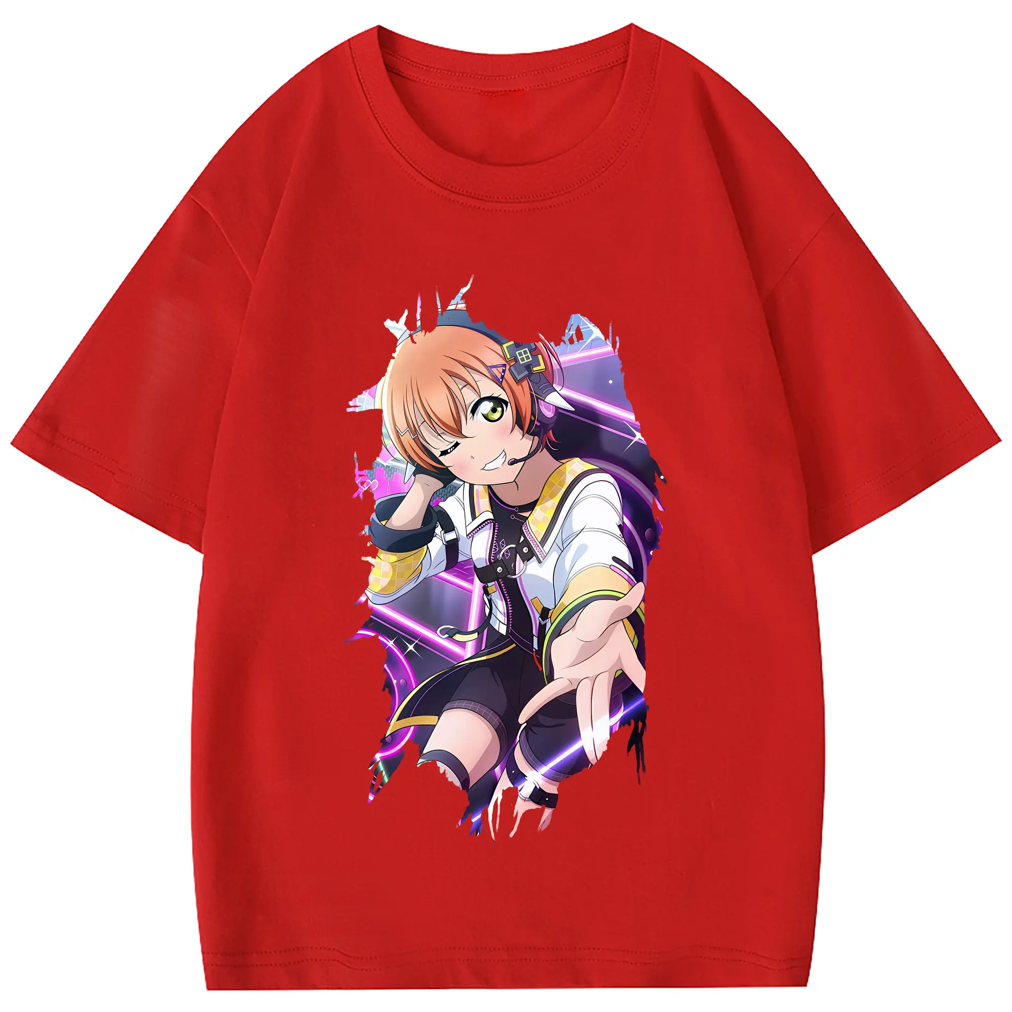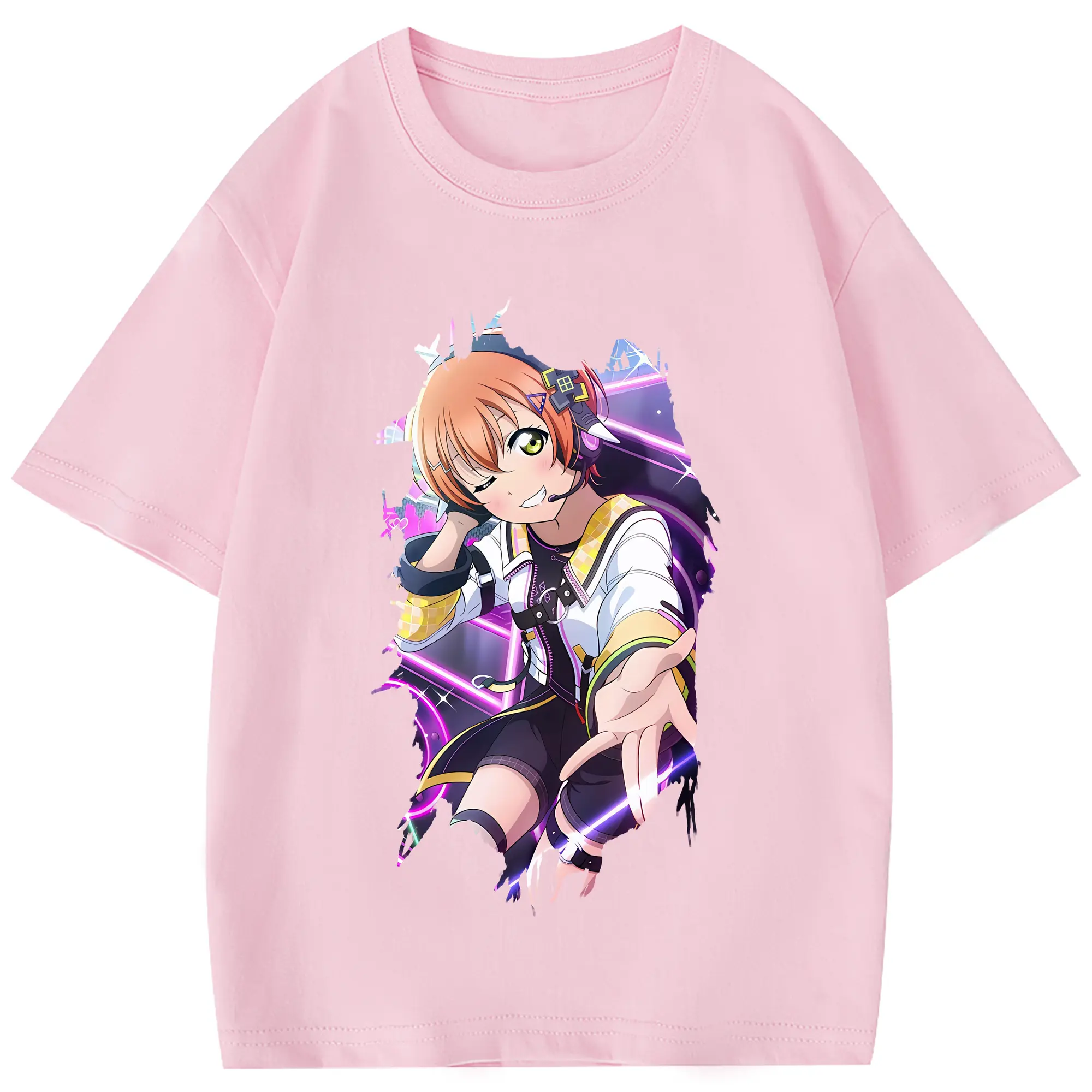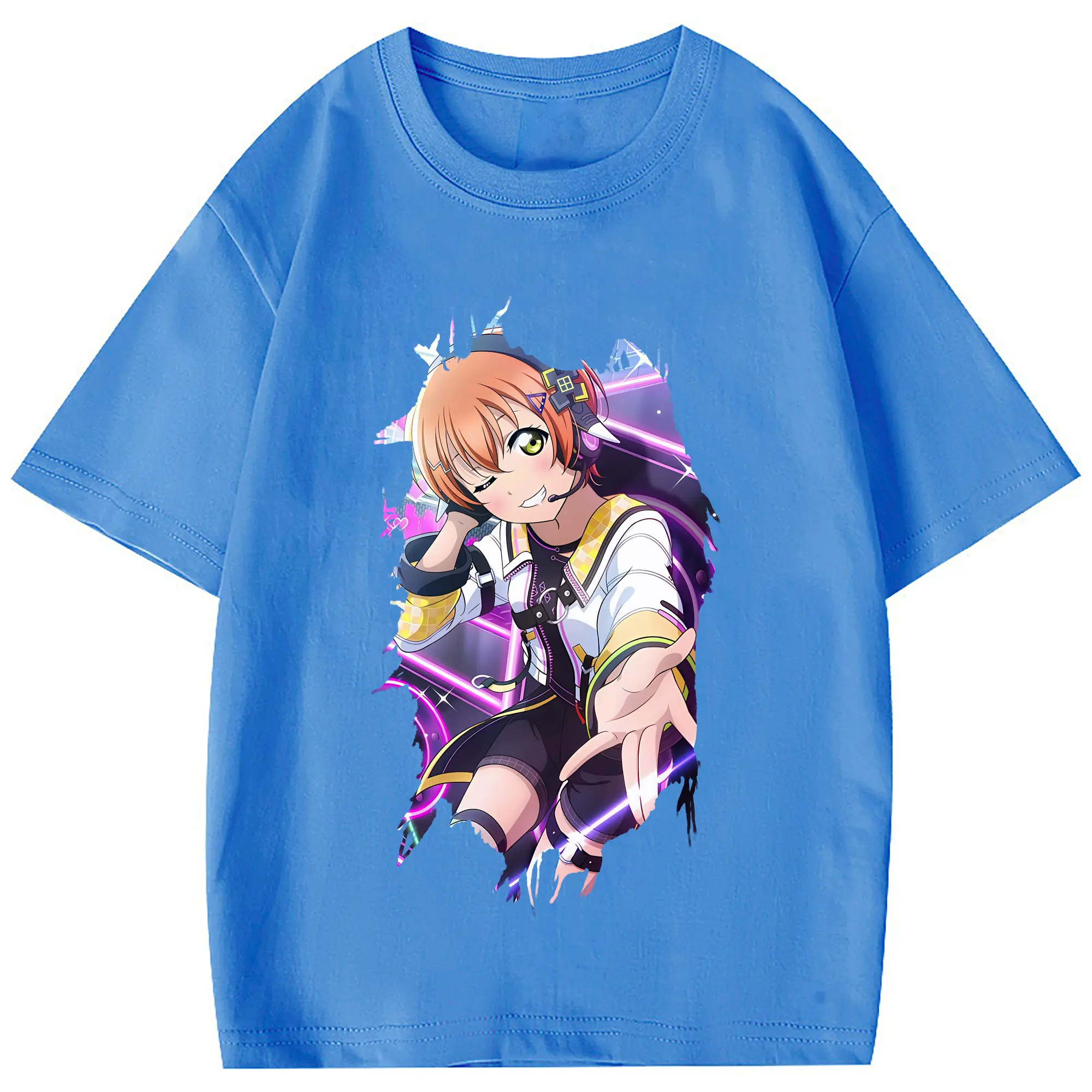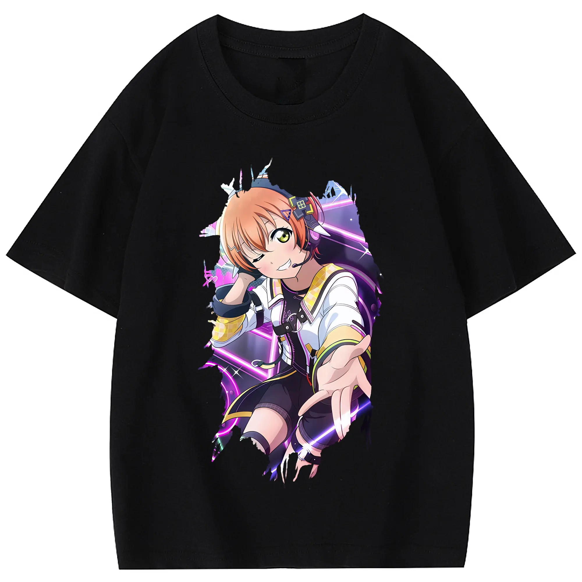 Love Live! グッズ,星空凛 - 綿100% 半袖Tシャツ ・ フロントプリント ・ 快適 通気性 ・ 日常使い 散歩 スポーツ用