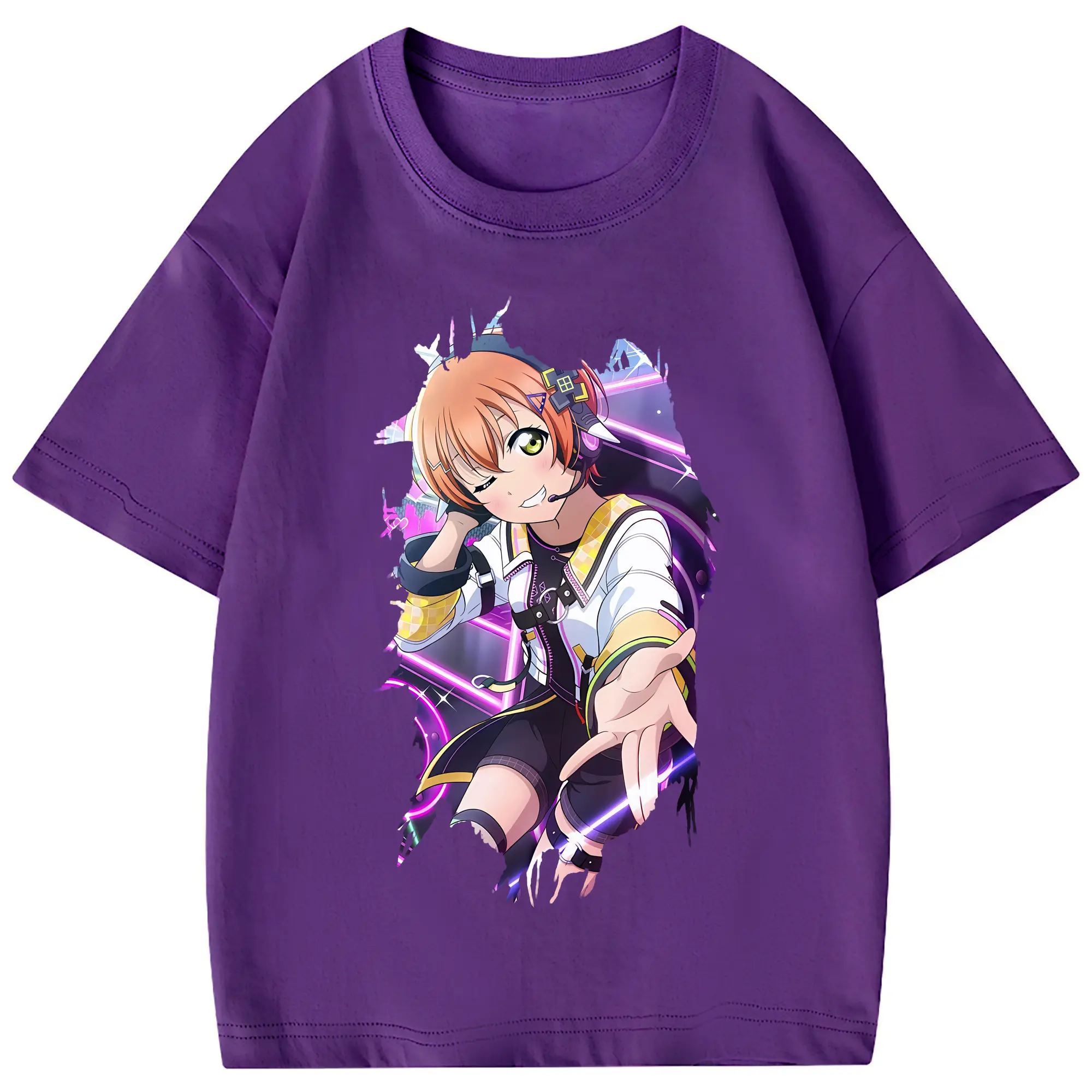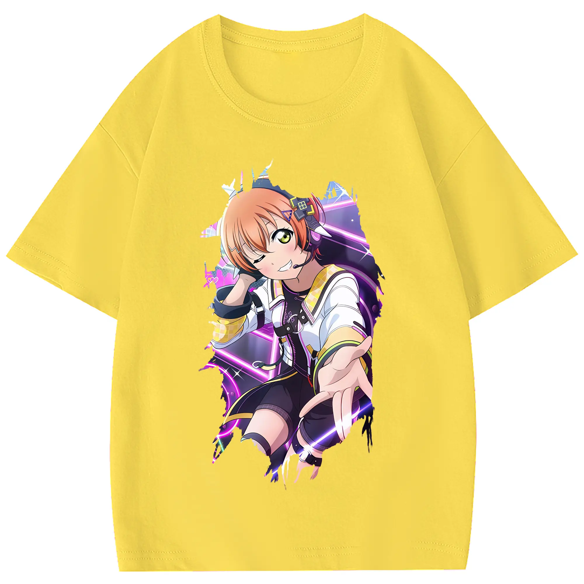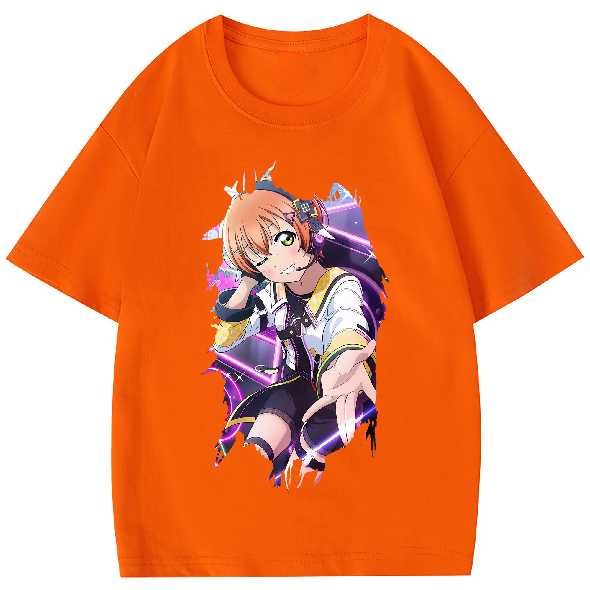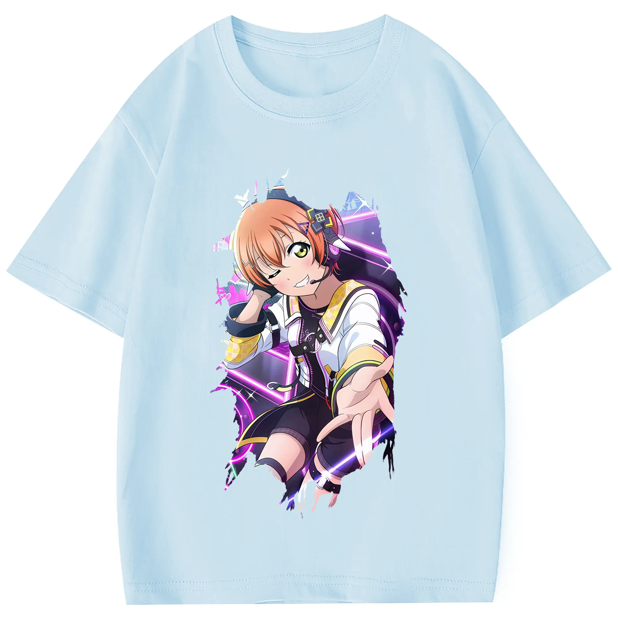 Love Live! グッズ,星空凛 - 綿100% 半袖Tシャツ ・ フロントプリント ・ 快適 通気性 ・ 日常使い 散歩 スポーツ用