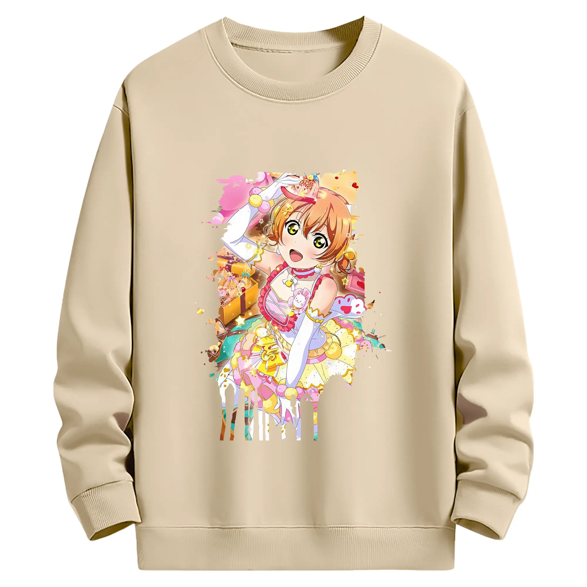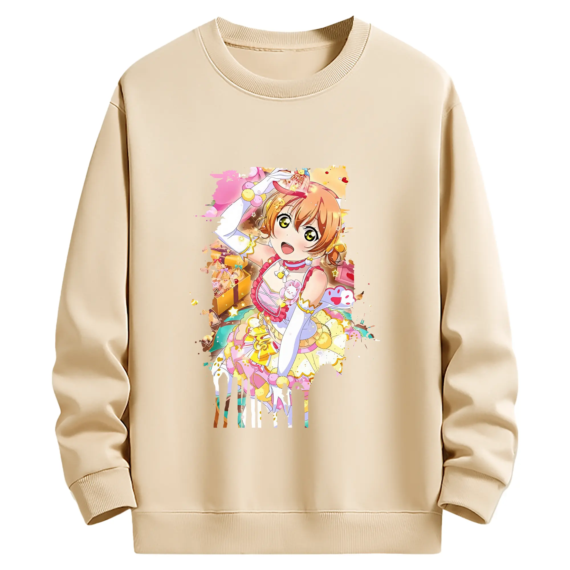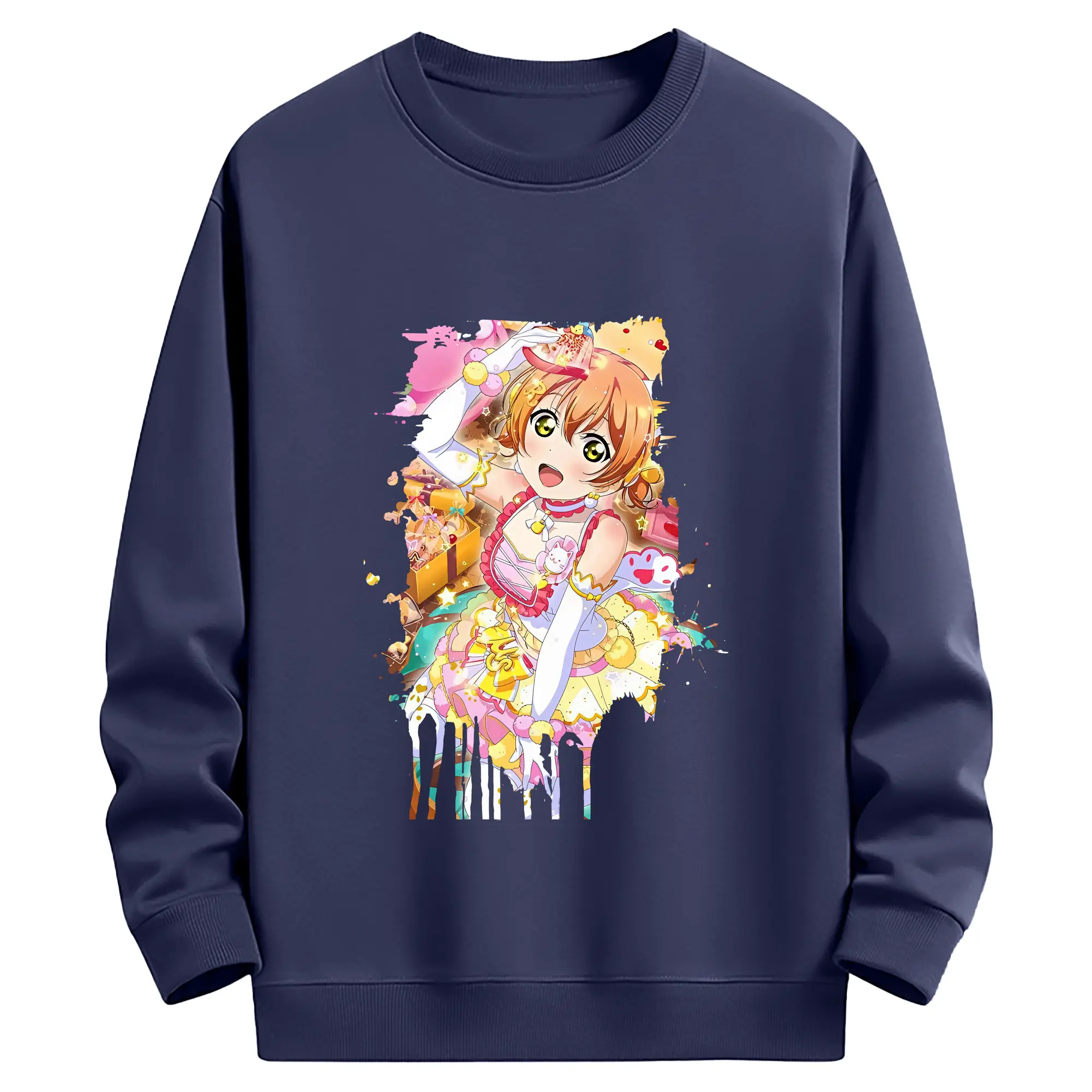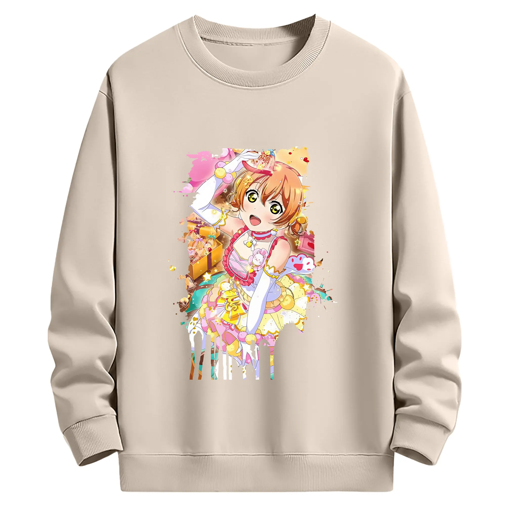 Love Live! グッズ,星空凛 - 薄手 クルーネック スウェット 裏毛260g · ポリエステル 春秋向け カジュアル 男女兼用 · トレーナー デイリー スポーツ 散歩に最適