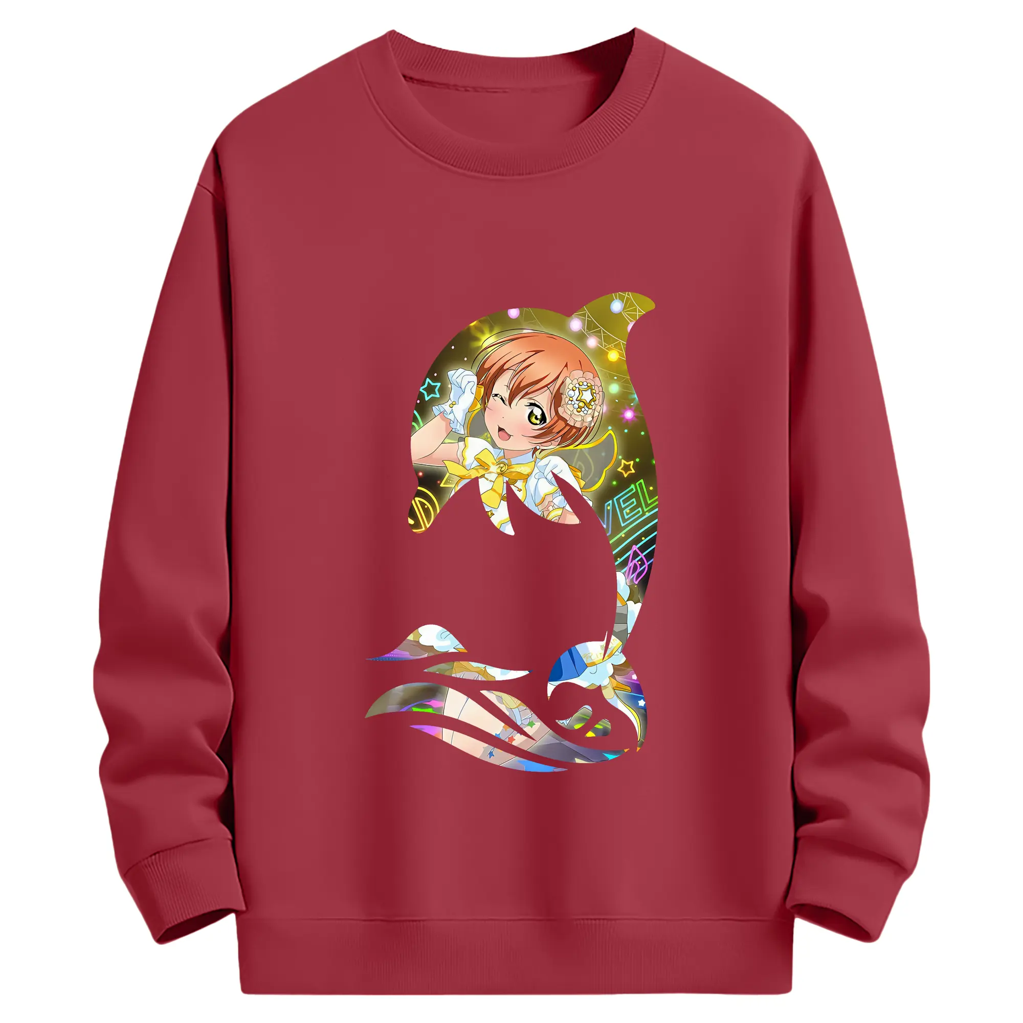Love Live! グッズ,星空凛 - 薄手 クルーネック スウェット 裏毛260g · ポリエステル 春秋向け カジュアル 男女兼用 · トレーナー デイリー スポーツ 散歩に最適