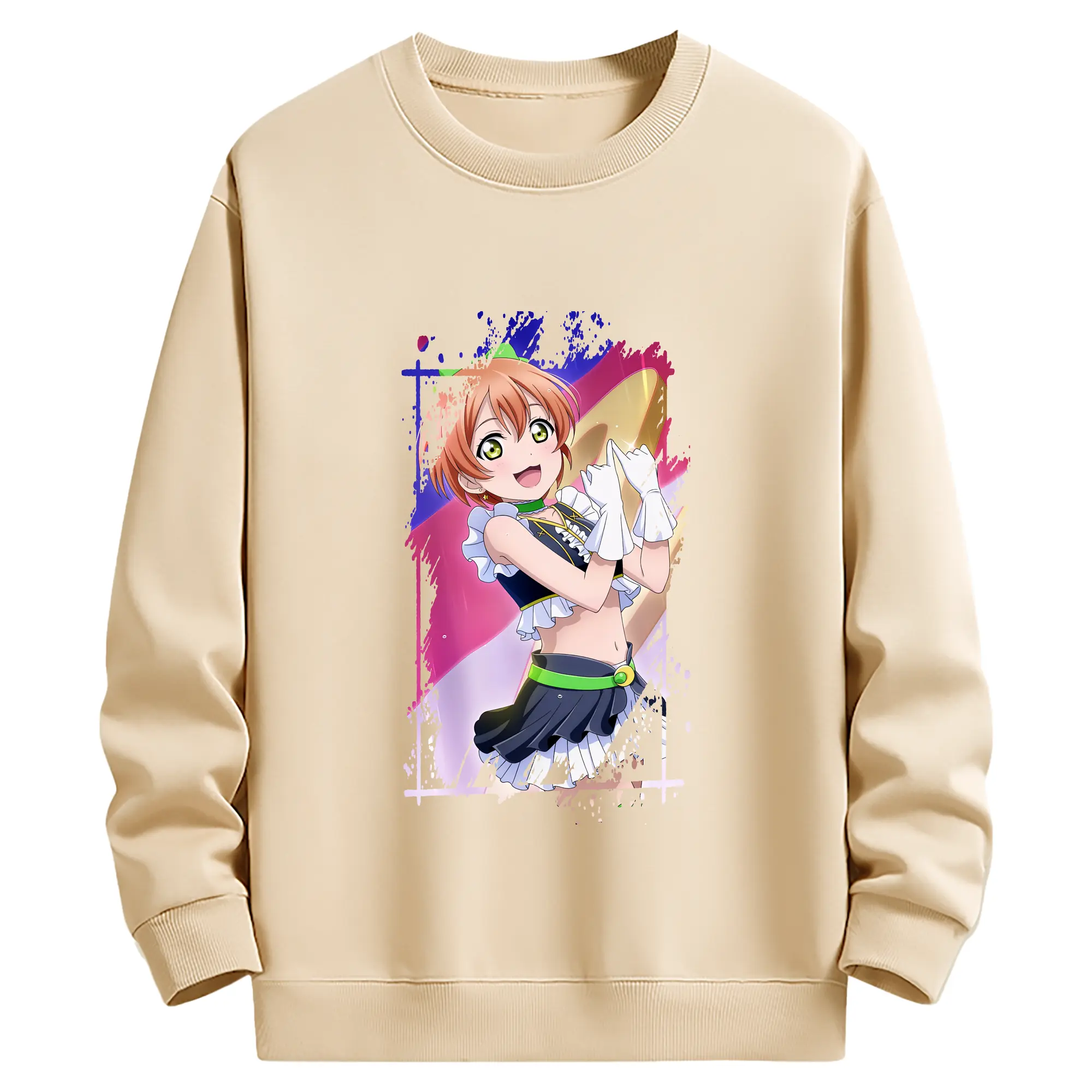 Love Live! グッズ,星空凛 - 薄手 クルーネック スウェット 裏毛260g · ポリエステル 春秋向け カジュアル 男女兼用 · トレーナー デイリー スポーツ 散歩に最適