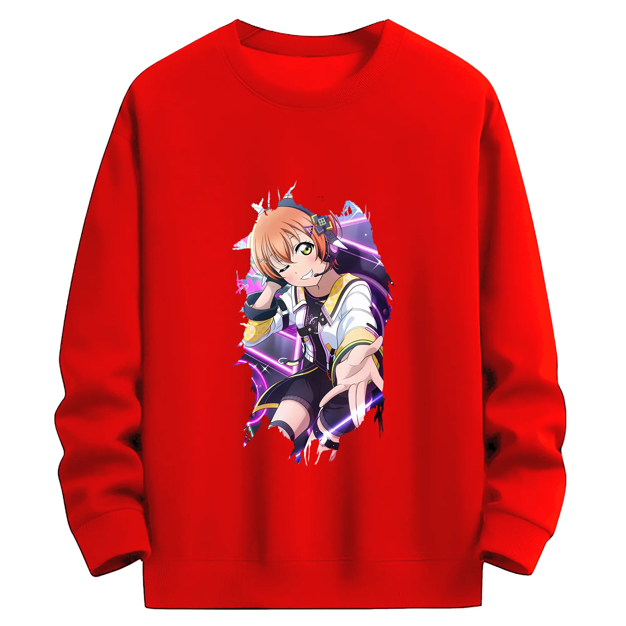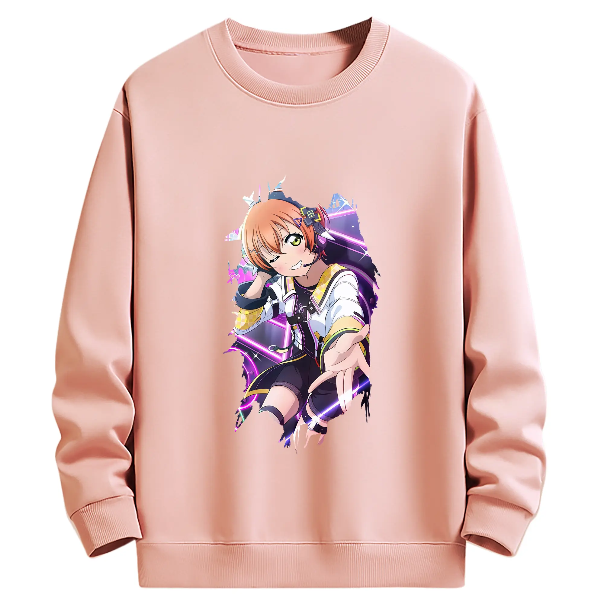 Love Live! グッズ,星空凛 - 薄手 クルーネック スウェット 裏毛260g · ポリエステル 春秋向け カジュアル 男女兼用 · トレーナー デイリー スポーツ 散歩に最適