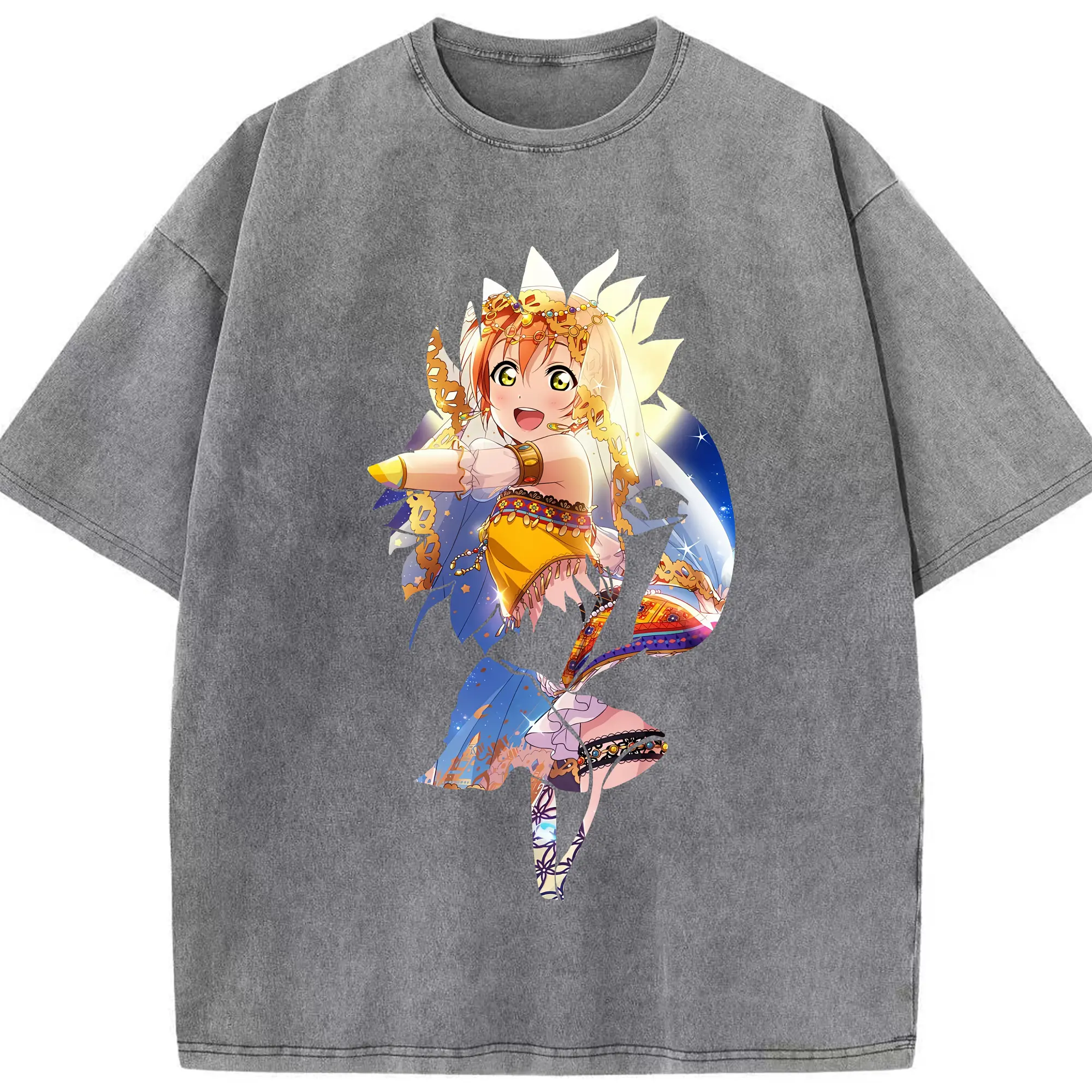 Love Live! グッズ,星空凛 - 綿100% ヴィンテージ風 半袖Tシャツ ・ 背面プリント ・ 柔らか肌触り ・ 通気性 快適 ・ スポーツ カジュアル 外出用