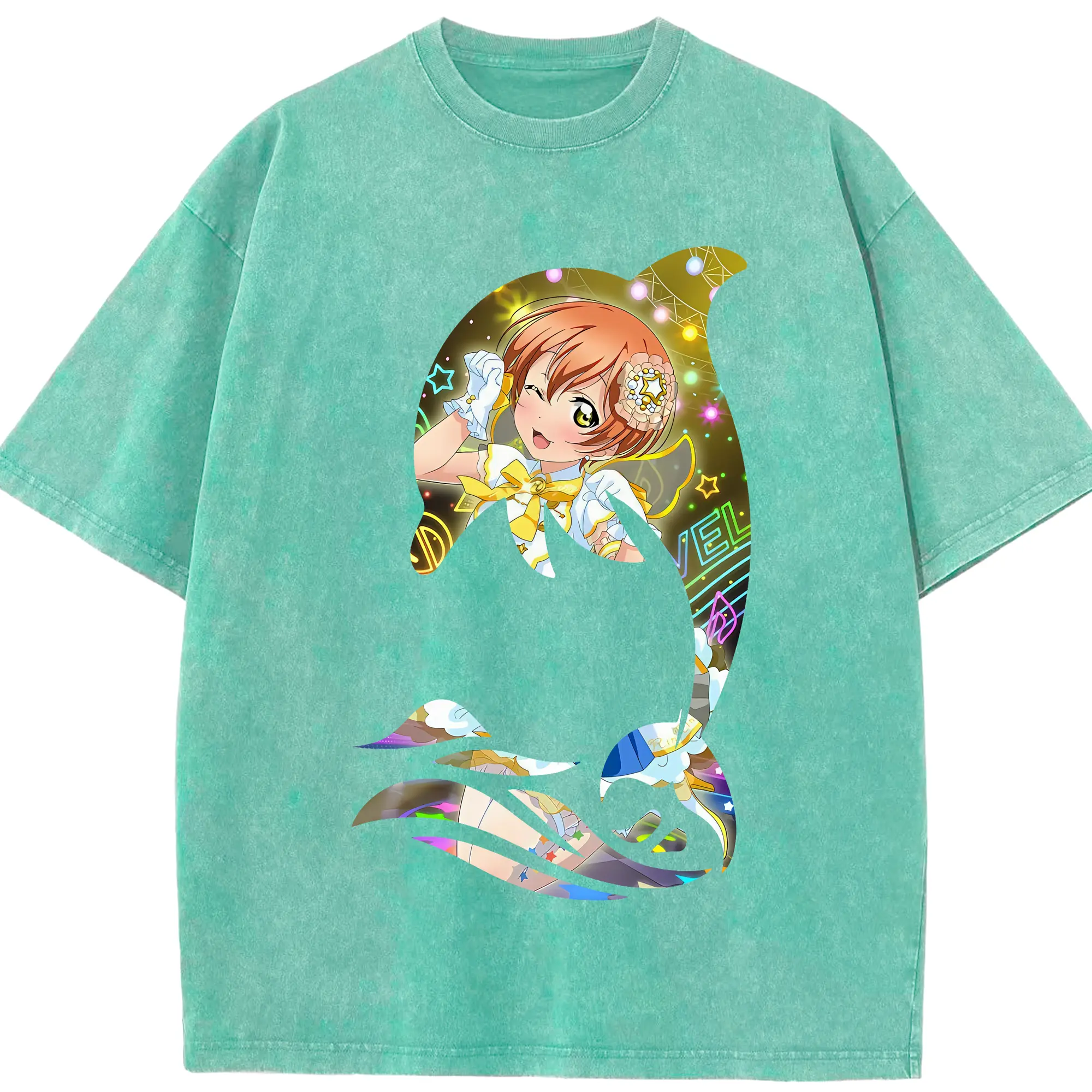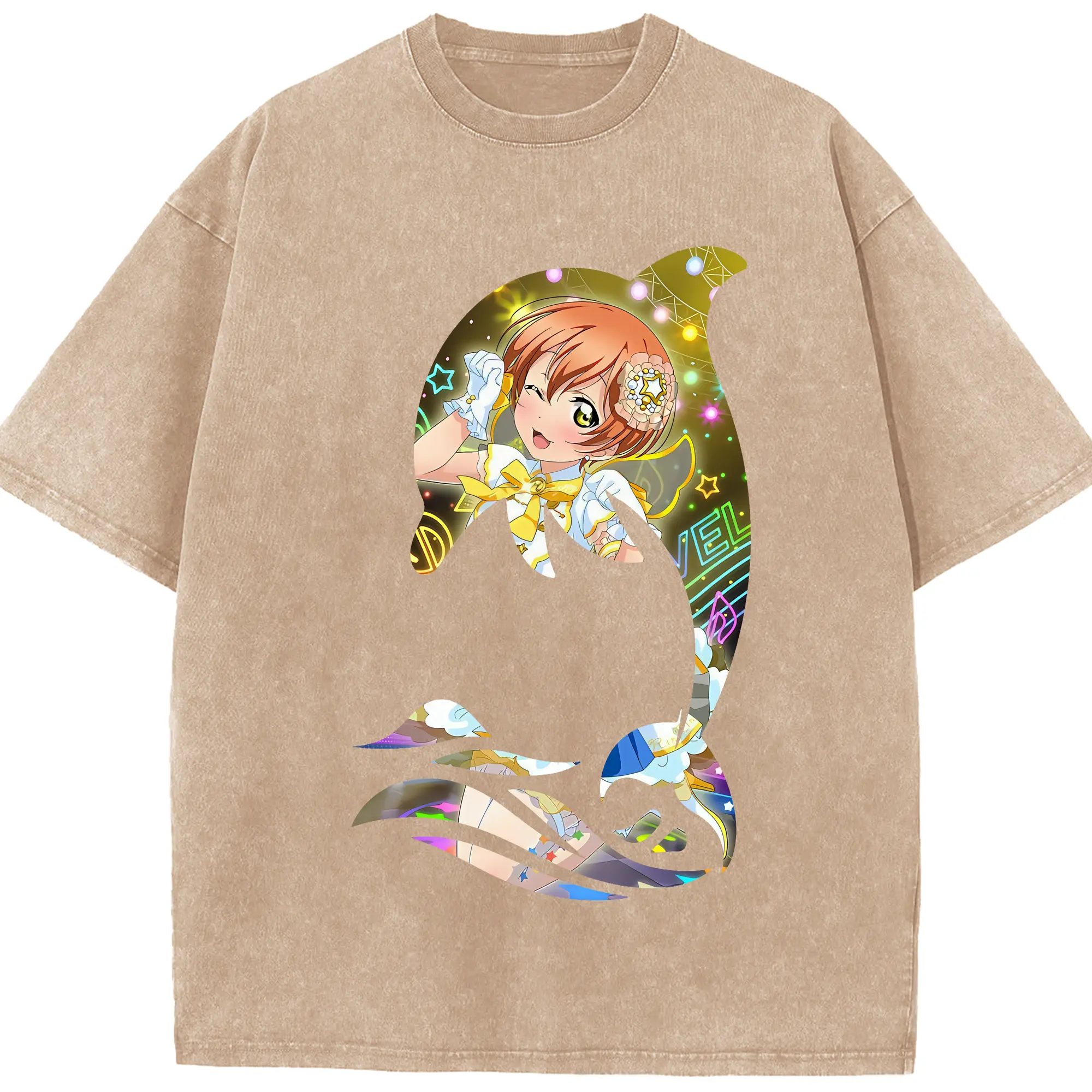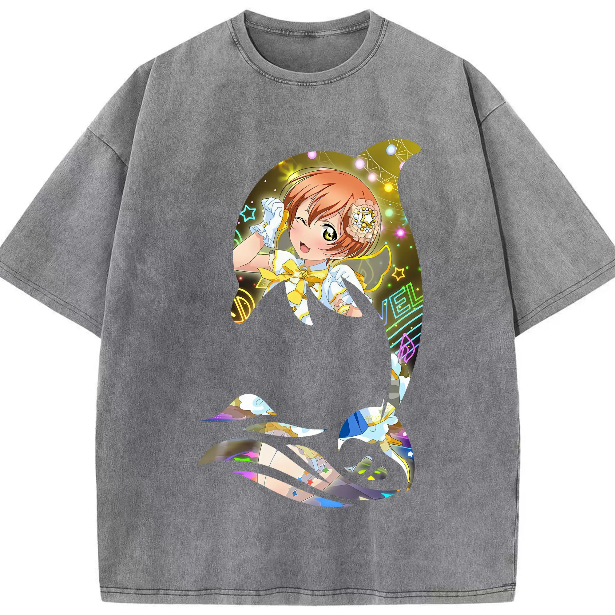 Love Live! グッズ,星空凛 - 綿100% ヴィンテージ風 半袖Tシャツ ・ 背面プリント ・ 柔らか肌触り ・ 通気性 快適 ・ スポーツ カジュアル 外出用
