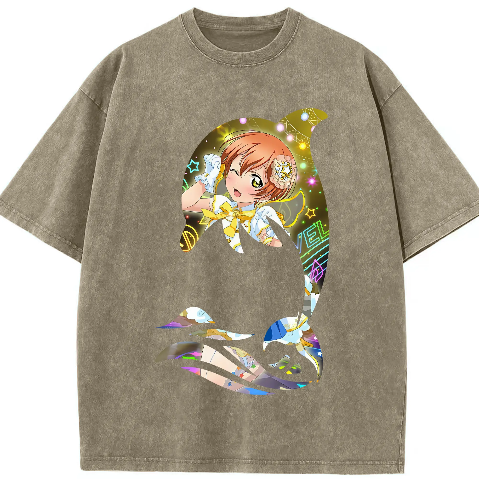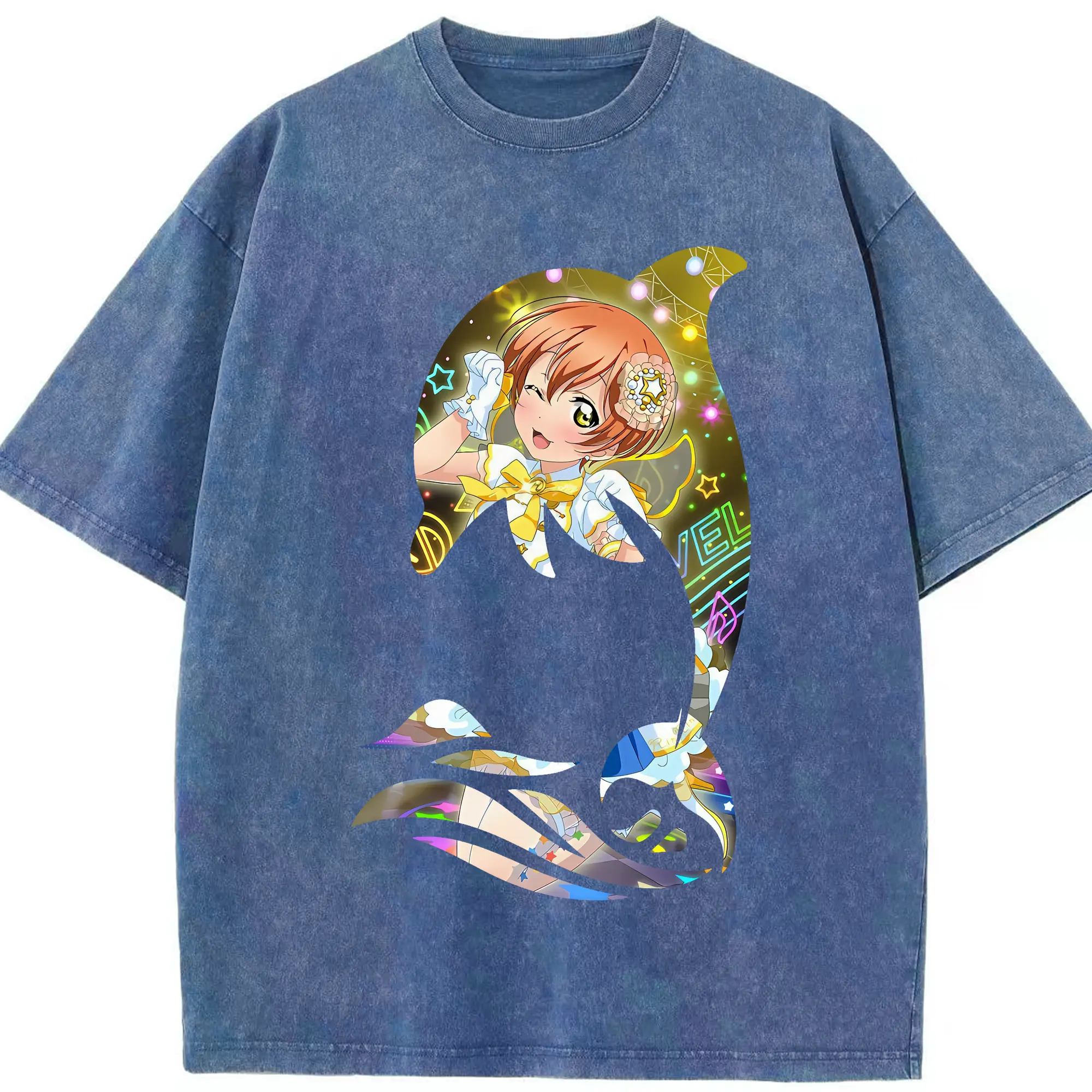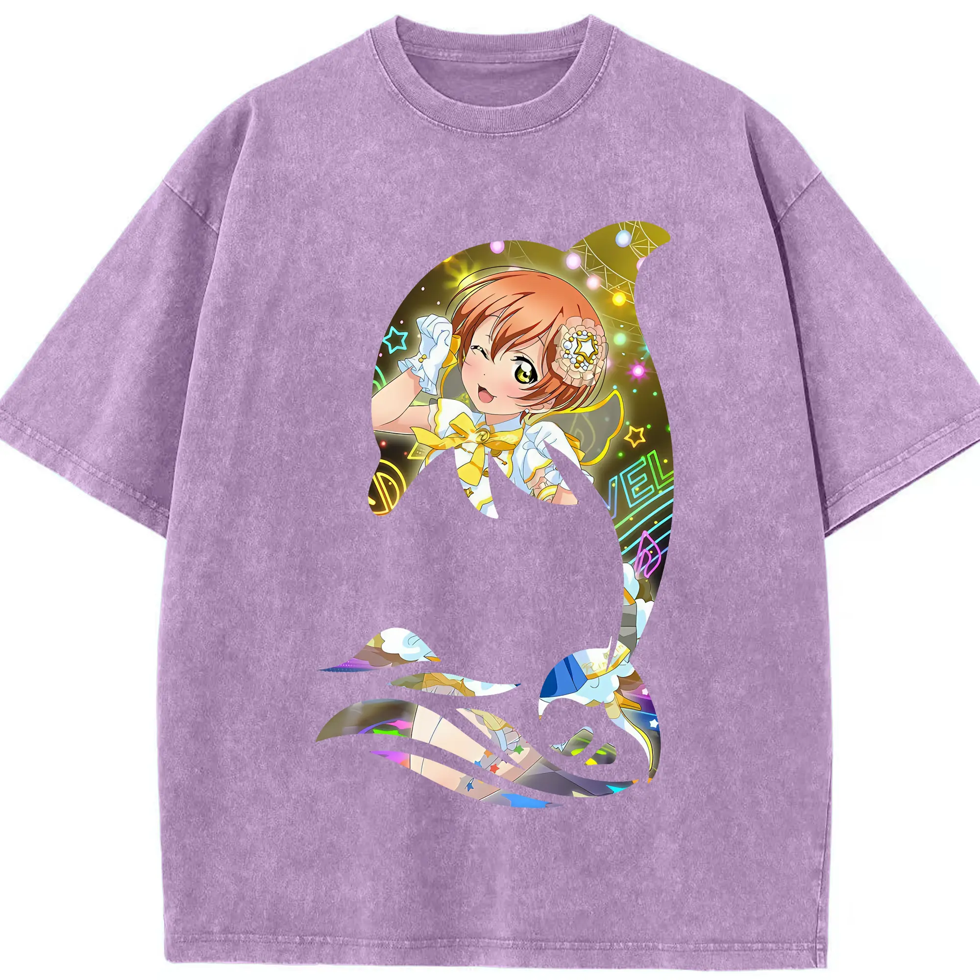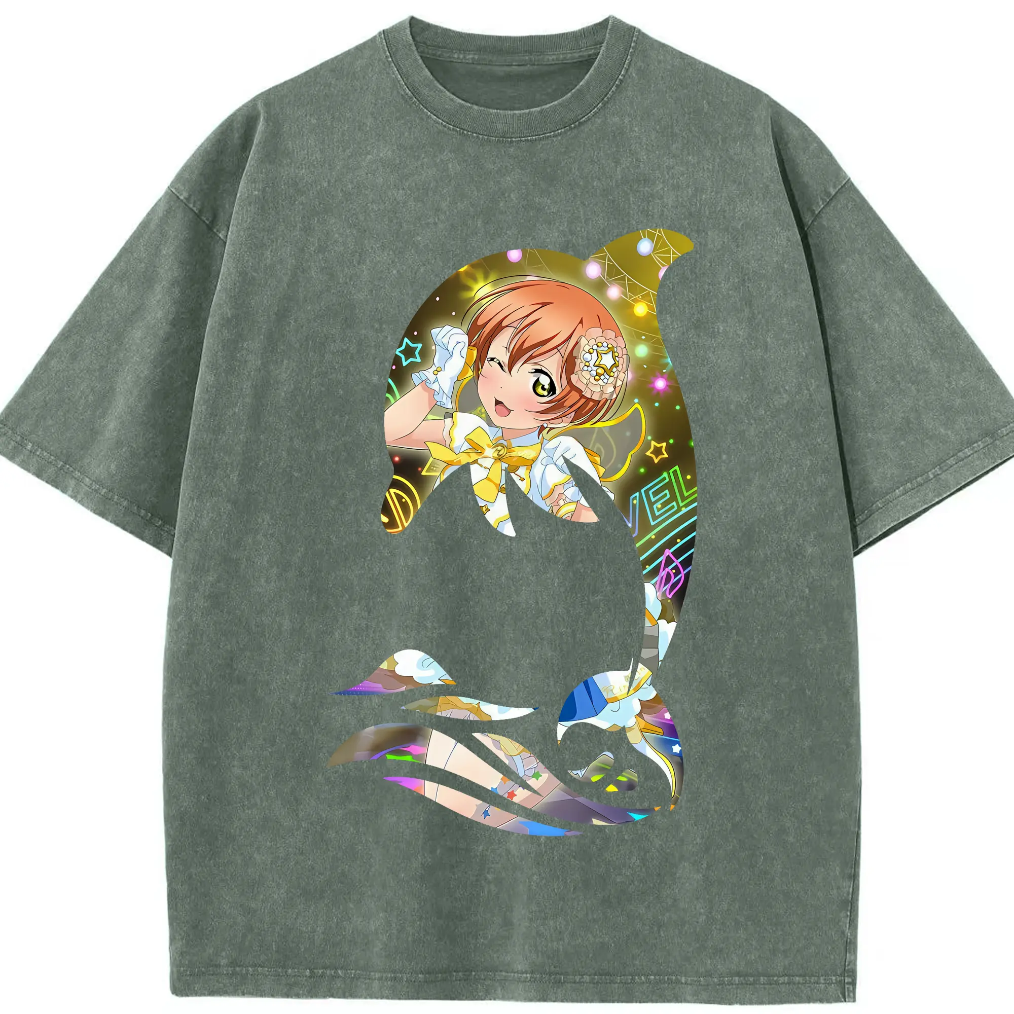 Love Live! グッズ,星空凛 - 綿100% ヴィンテージ風 半袖Tシャツ ・ 背面プリント ・ 柔らか肌触り ・ 通気性 快適 ・ スポーツ カジュアル 外出用