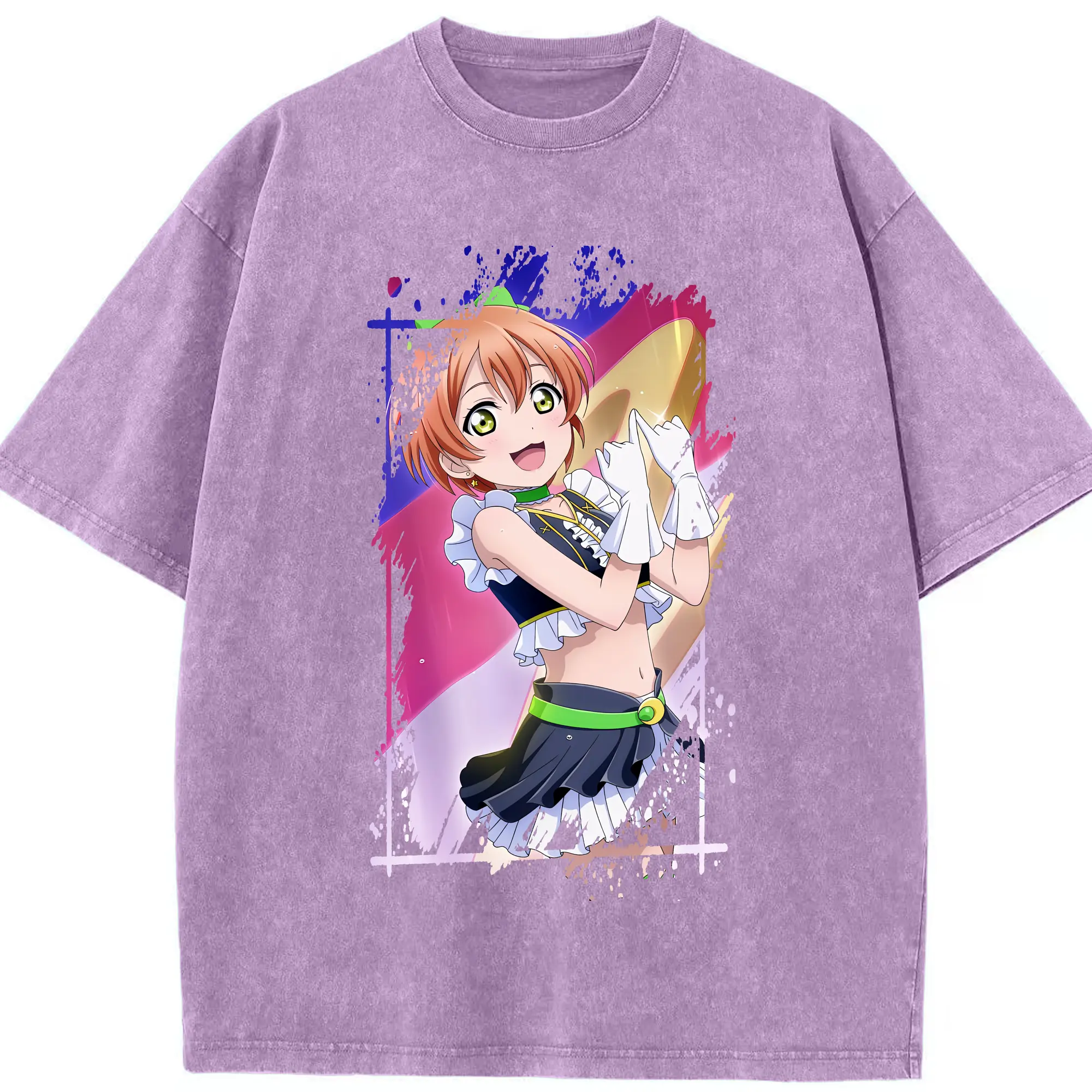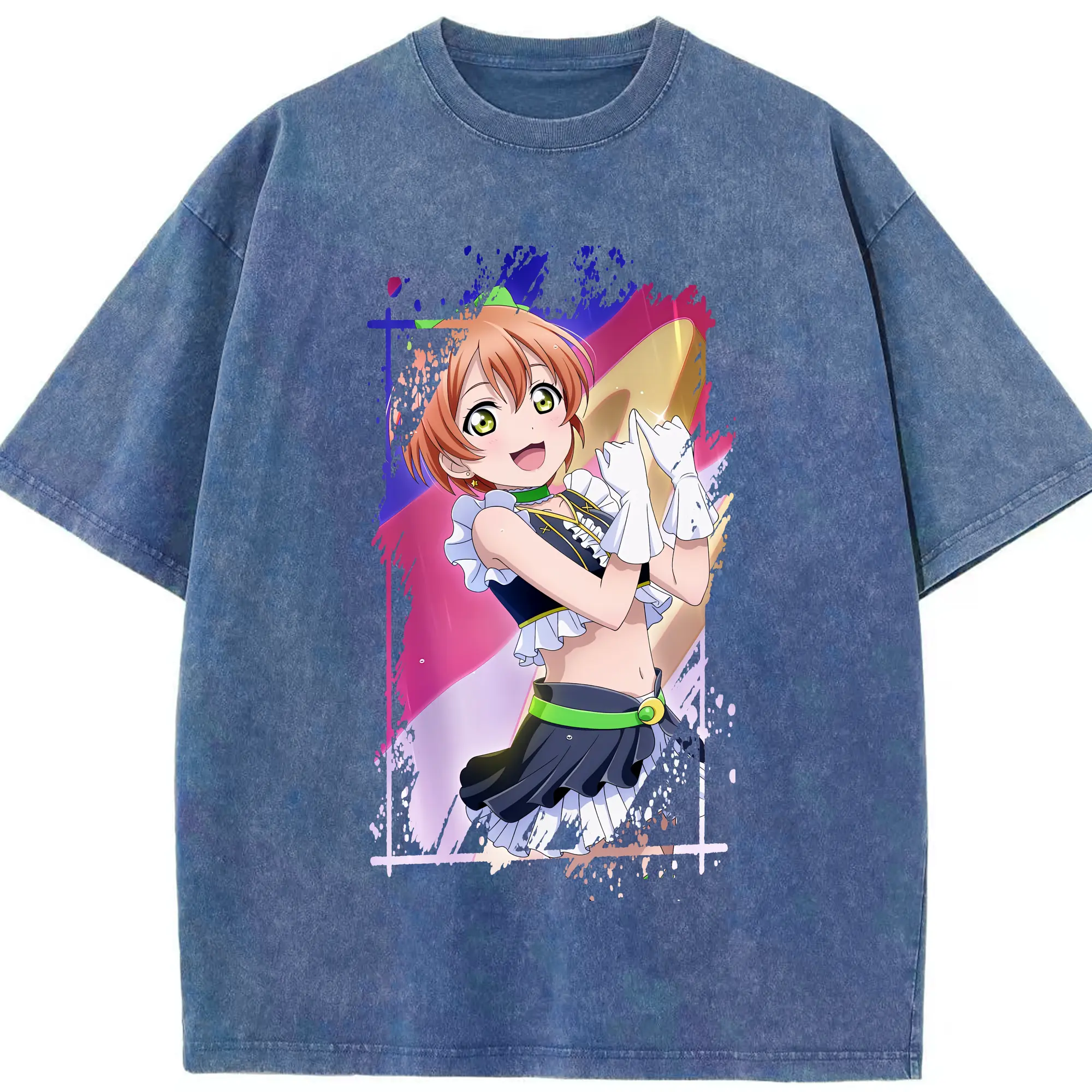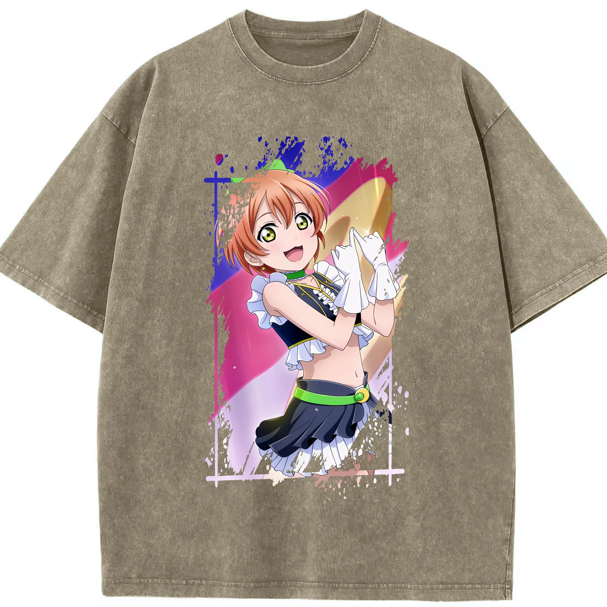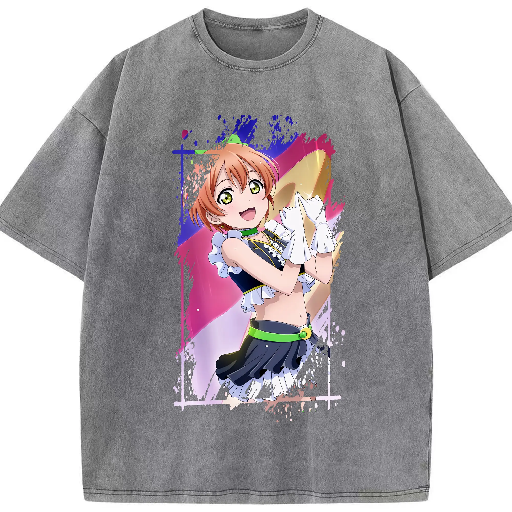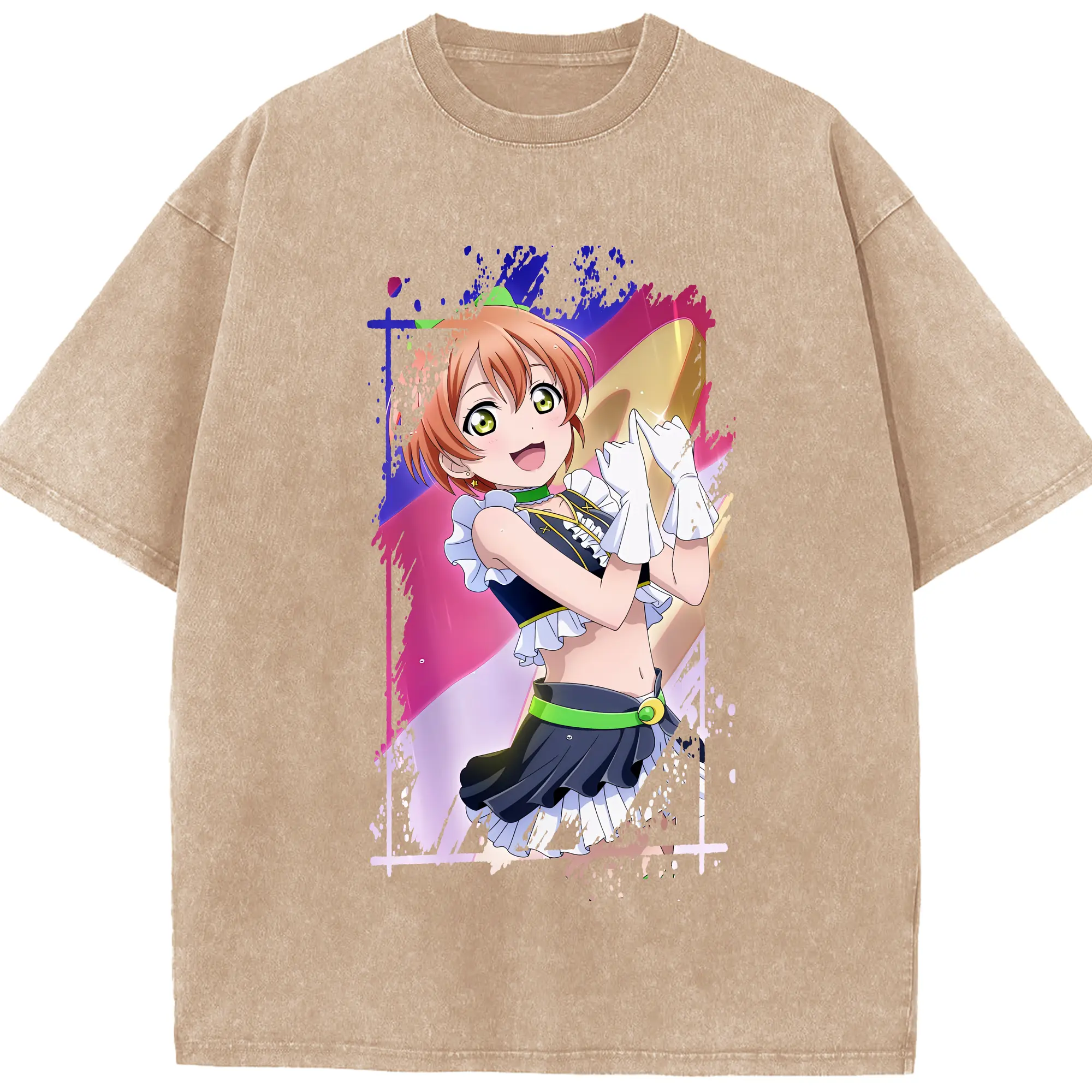 Love Live! グッズ,星空凛 - 綿100% ヴィンテージ風 半袖Tシャツ ・ 背面プリント ・ 柔らか肌触り ・ 通気性 快適 ・ スポーツ カジュアル 外出用