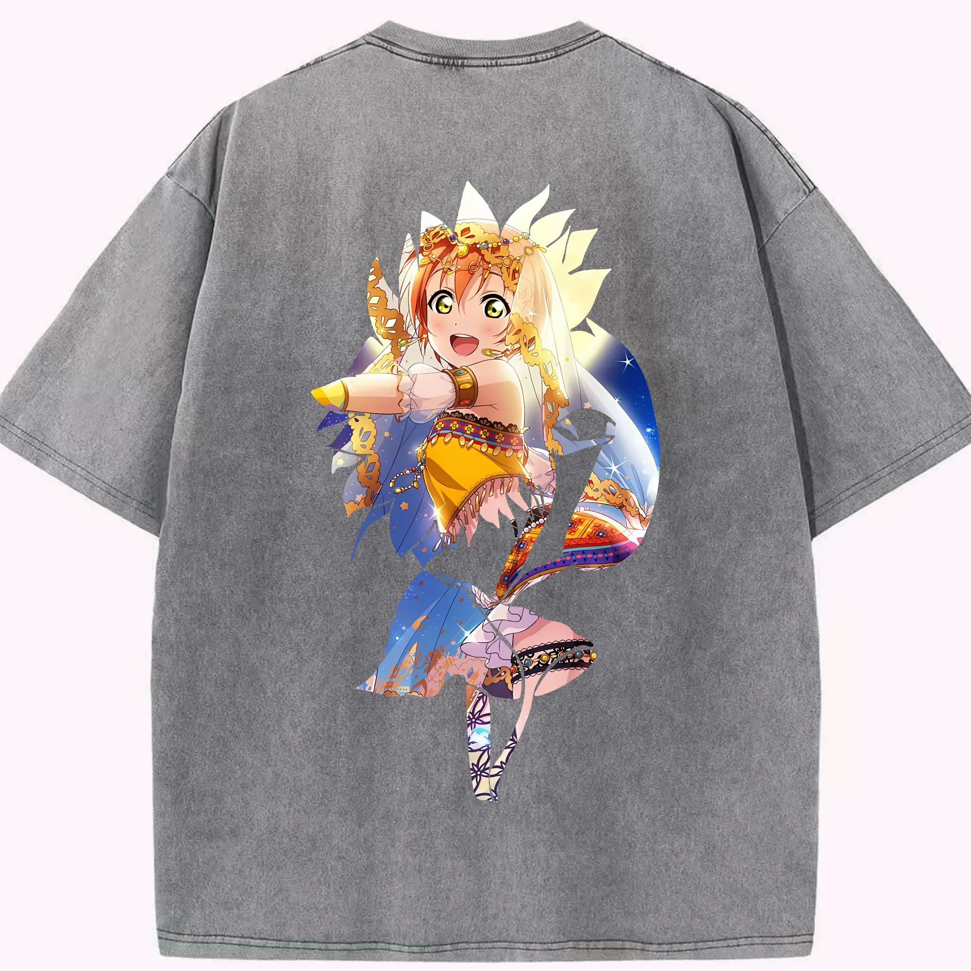 Love Live! グッズ,星空凛 - 綿100% ヴィンテージ風 半袖Tシャツ ・ フロントプリント ・ 柔らか肌触り ・ 通気性 快適 ・ スポーツ カジュアル 外出用