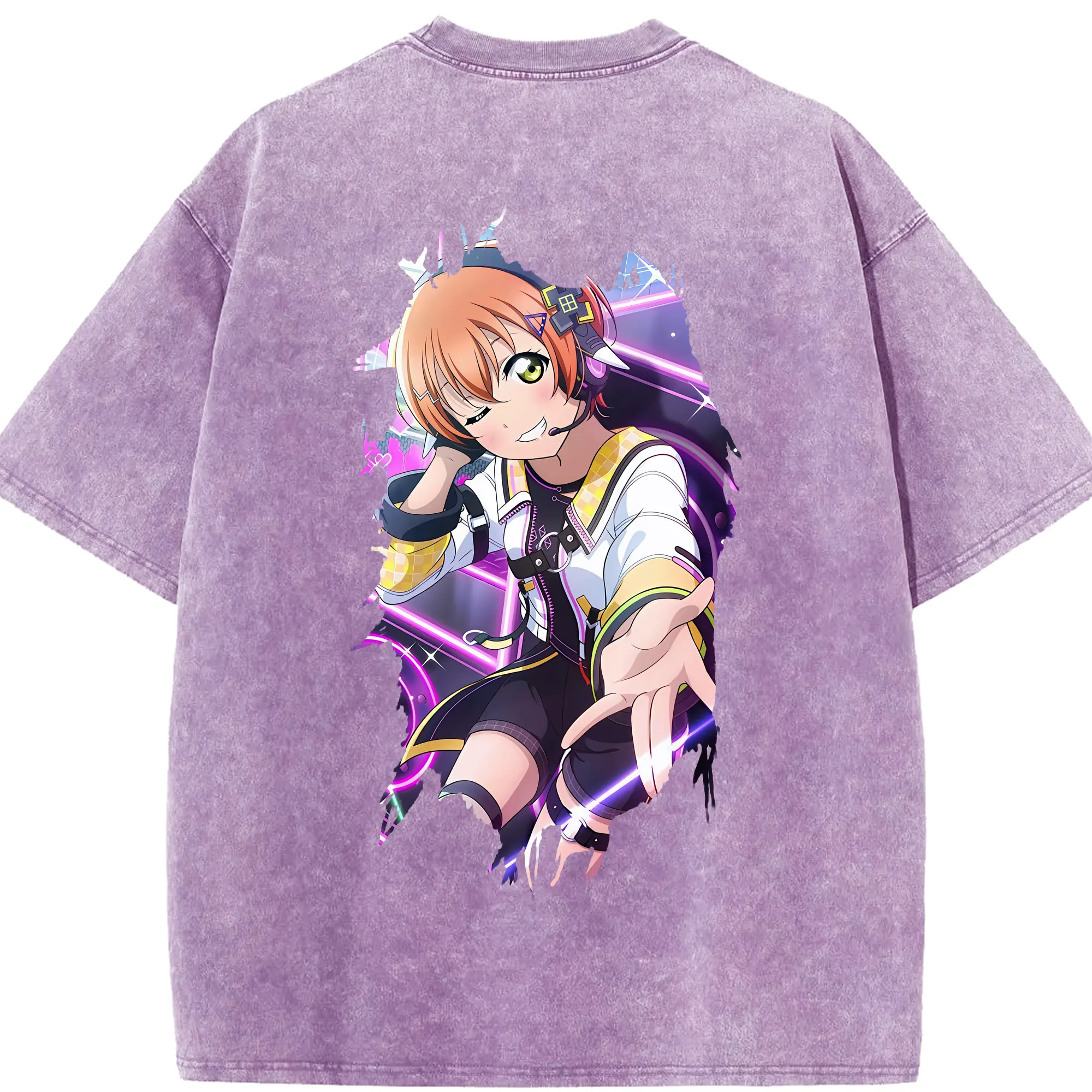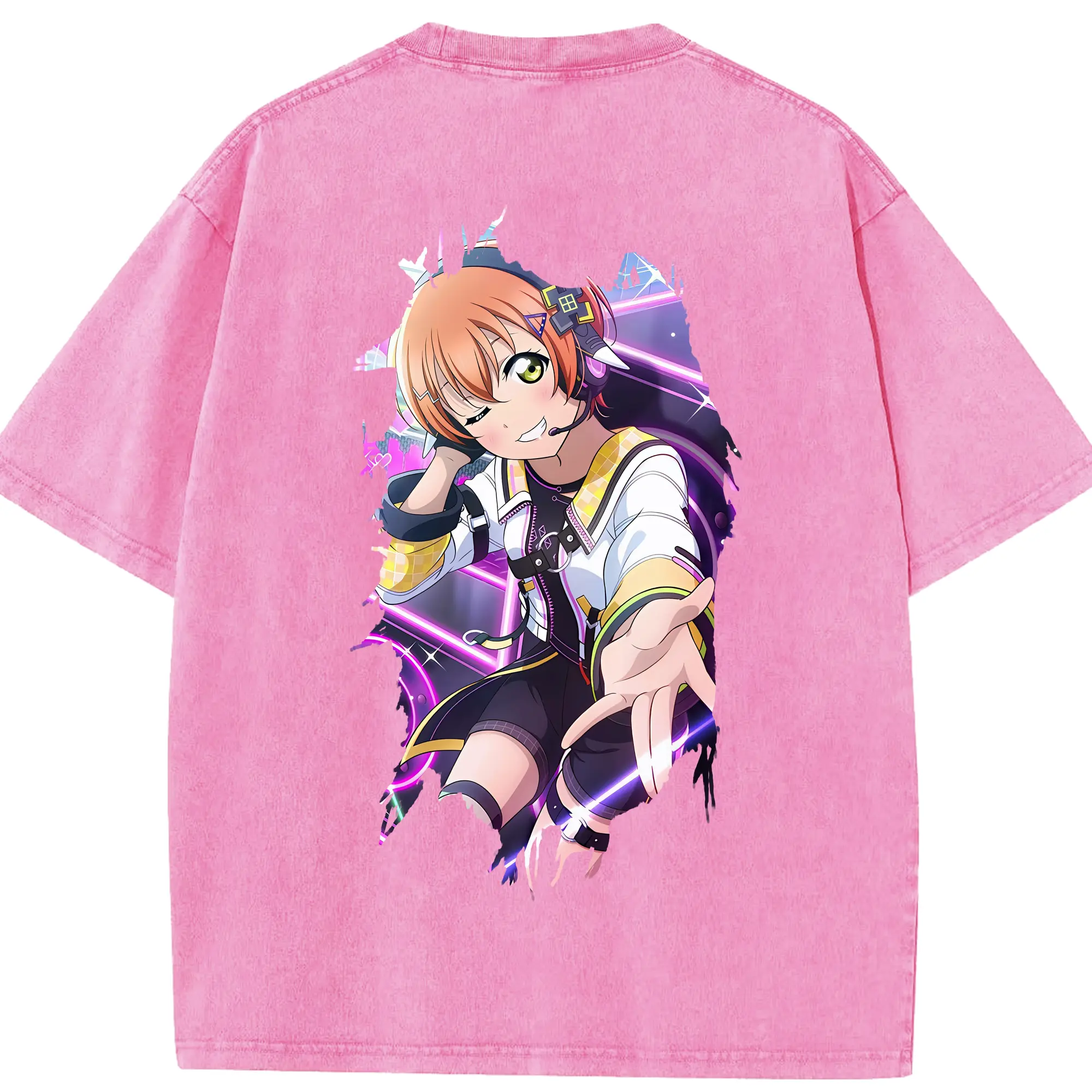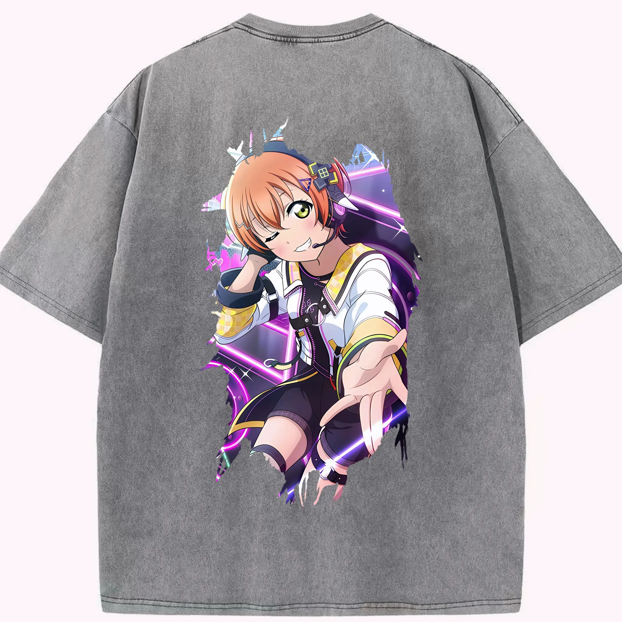 Love Live! グッズ,星空凛 - 綿100% ヴィンテージ風 半袖Tシャツ ・ フロントプリント ・ 柔らか肌触り ・ 通気性 快適 ・ スポーツ カジュアル 外出用