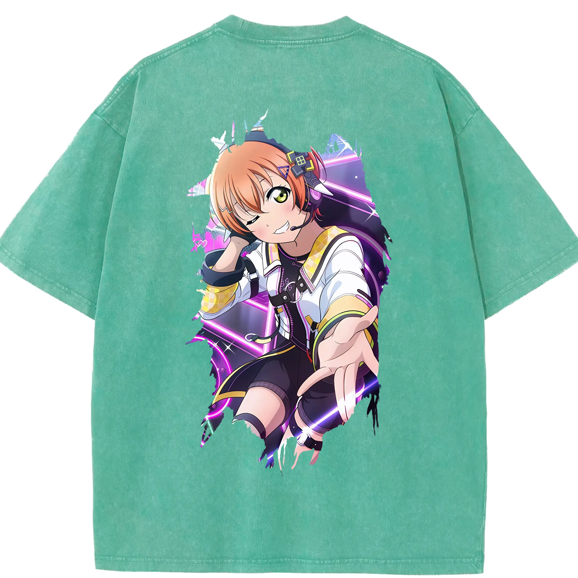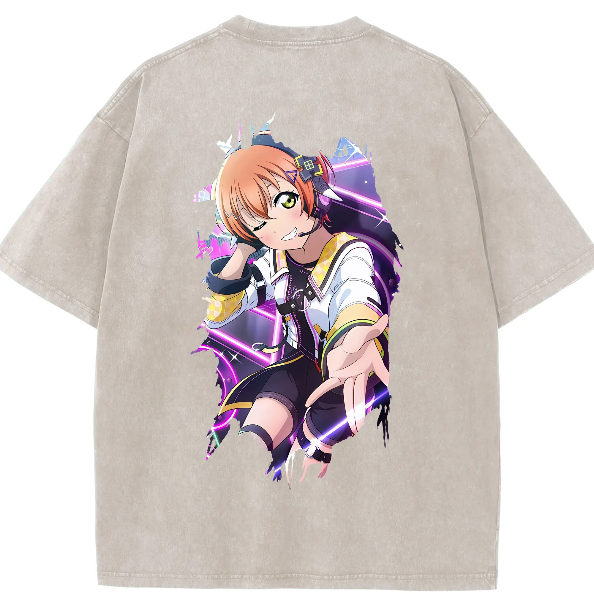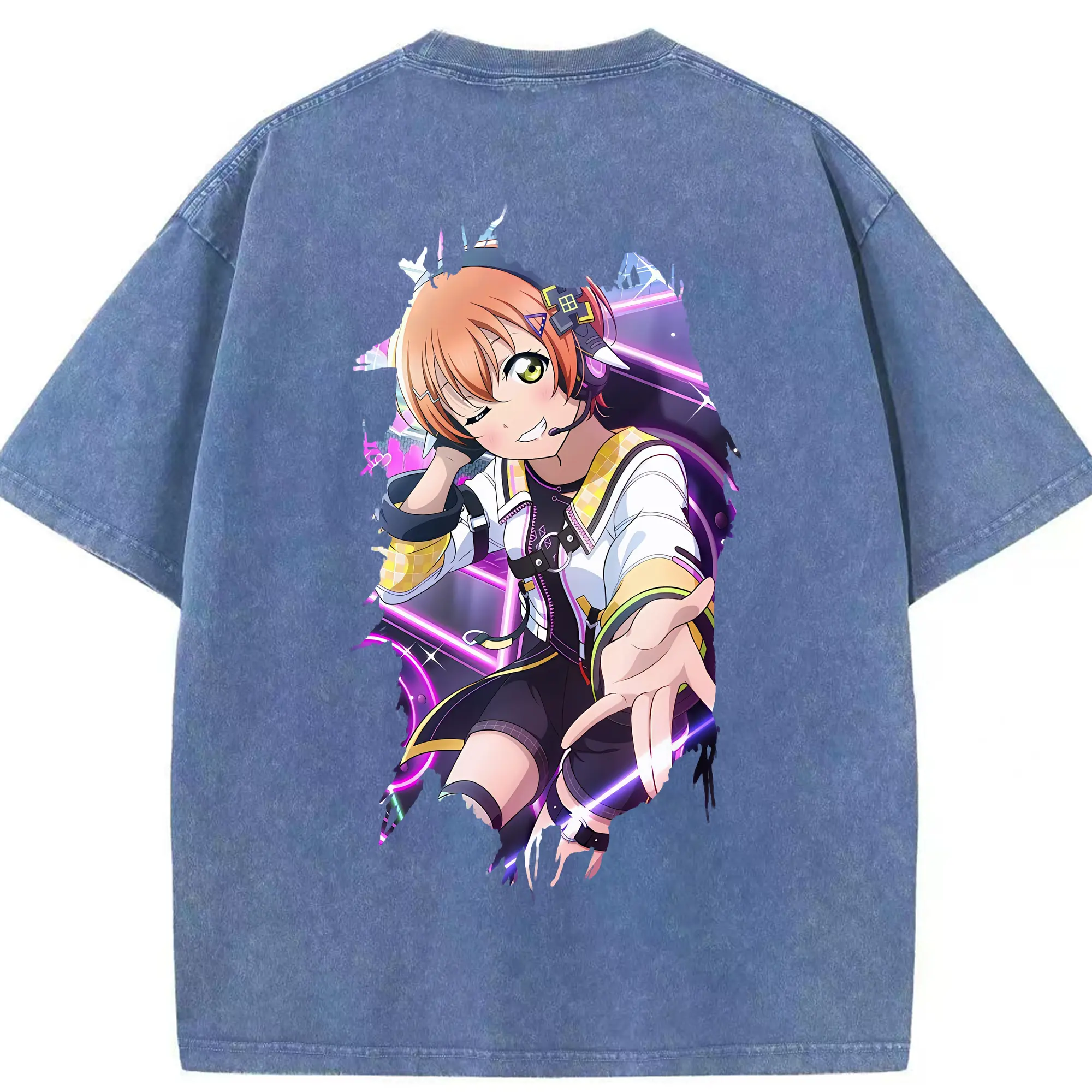 Love Live! グッズ,星空凛 - 綿100% ヴィンテージ風 半袖Tシャツ ・ フロントプリント ・ 柔らか肌触り ・ 通気性 快適 ・ スポーツ カジュアル 外出用