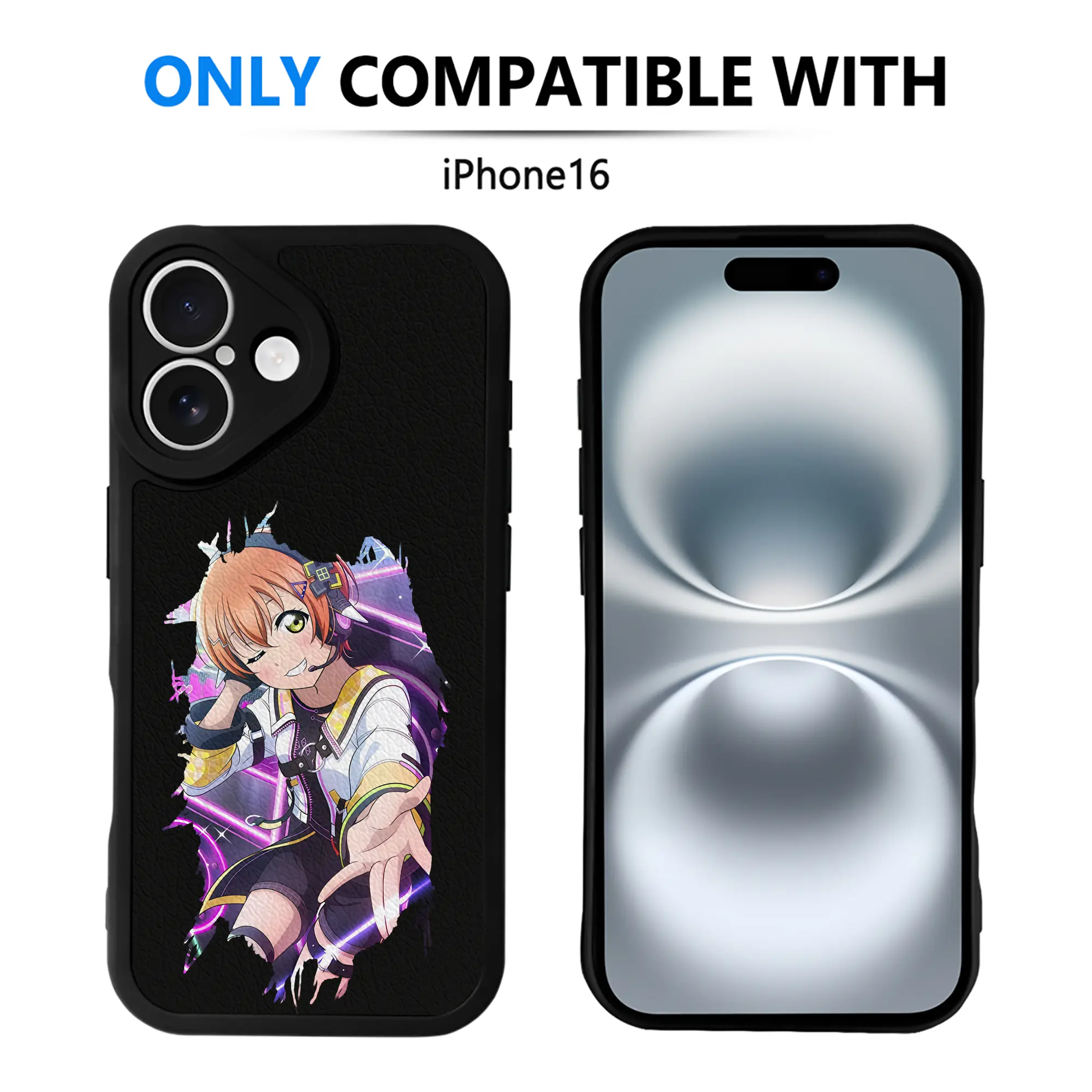 Love Live! グッズ,星空凛 - IPhone 16シリーズ対応 ・ シリコンスマホケース ・ レザー調 ・ 高精度フィット ・ 耐衝撃 ・ ワイヤレス充電対応 ・ 精密カット