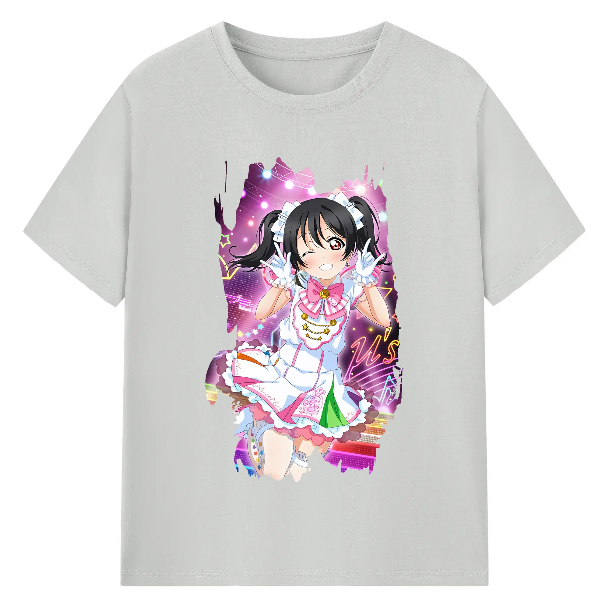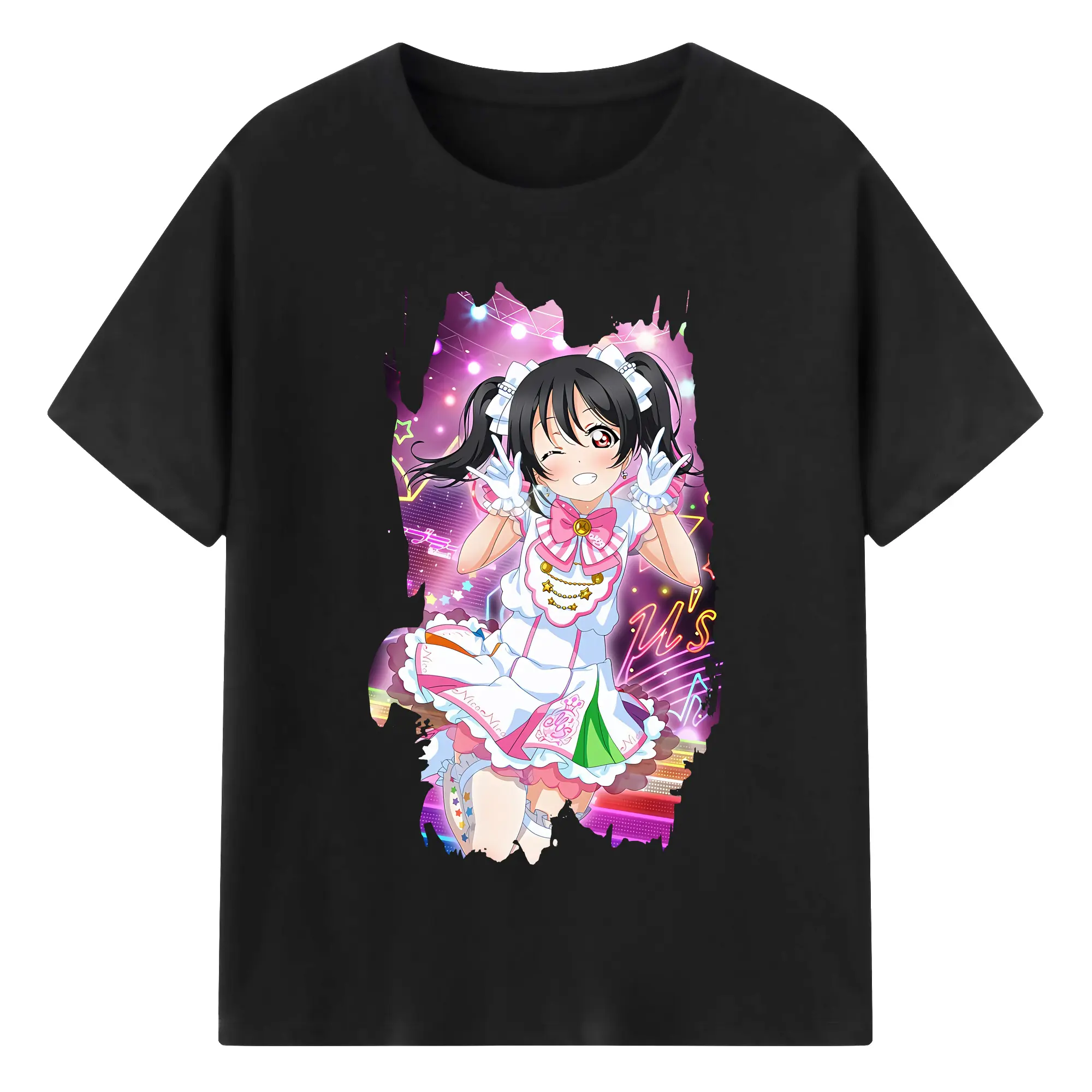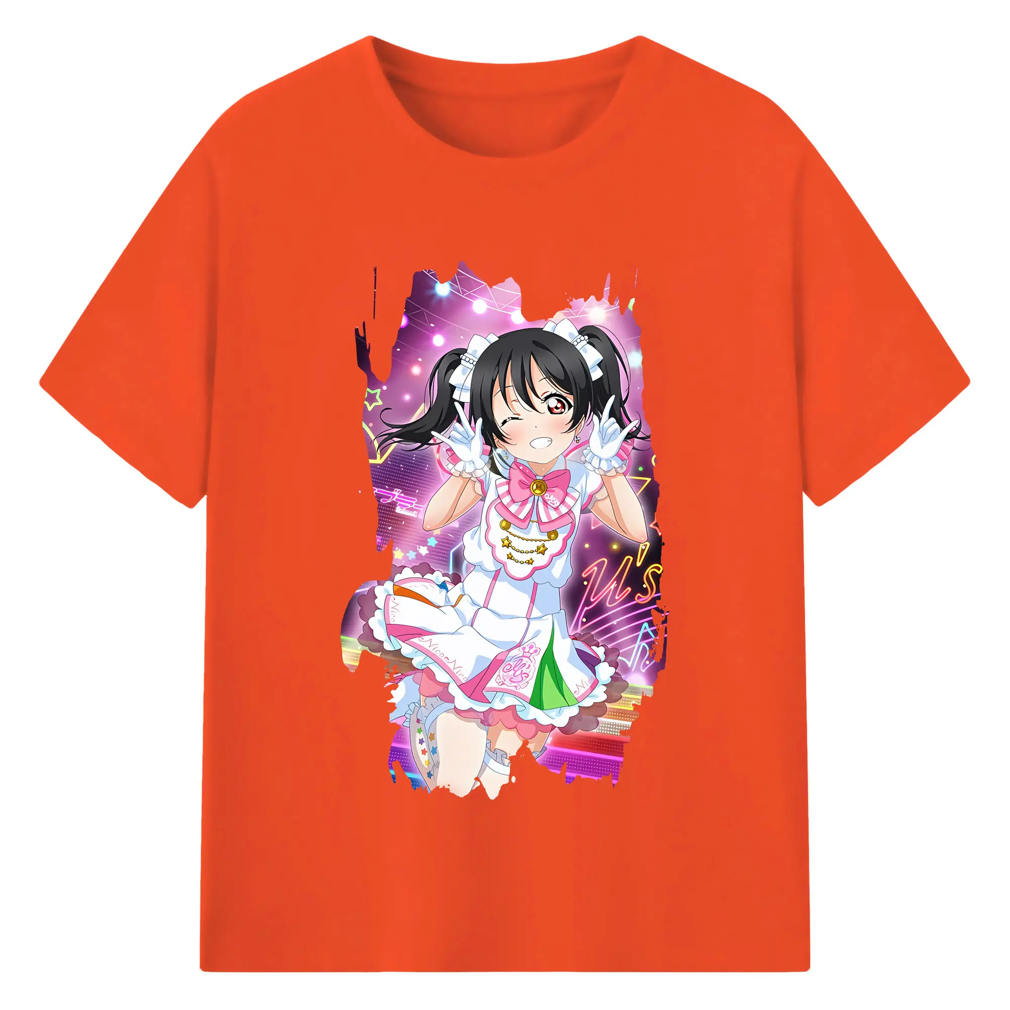 Love Live! グッズ,矢澤にこ - 綿100% ヴィンテージ風 半袖Tシャツ ・ フロントプリント ・ 柔らか肌触り ・ 通気性 快適 ・ スポーツ カジュアル 外出用