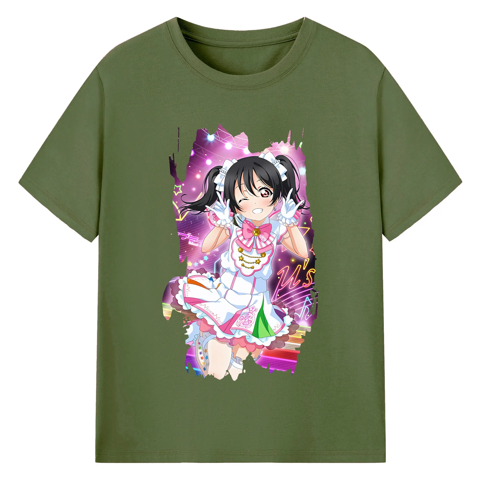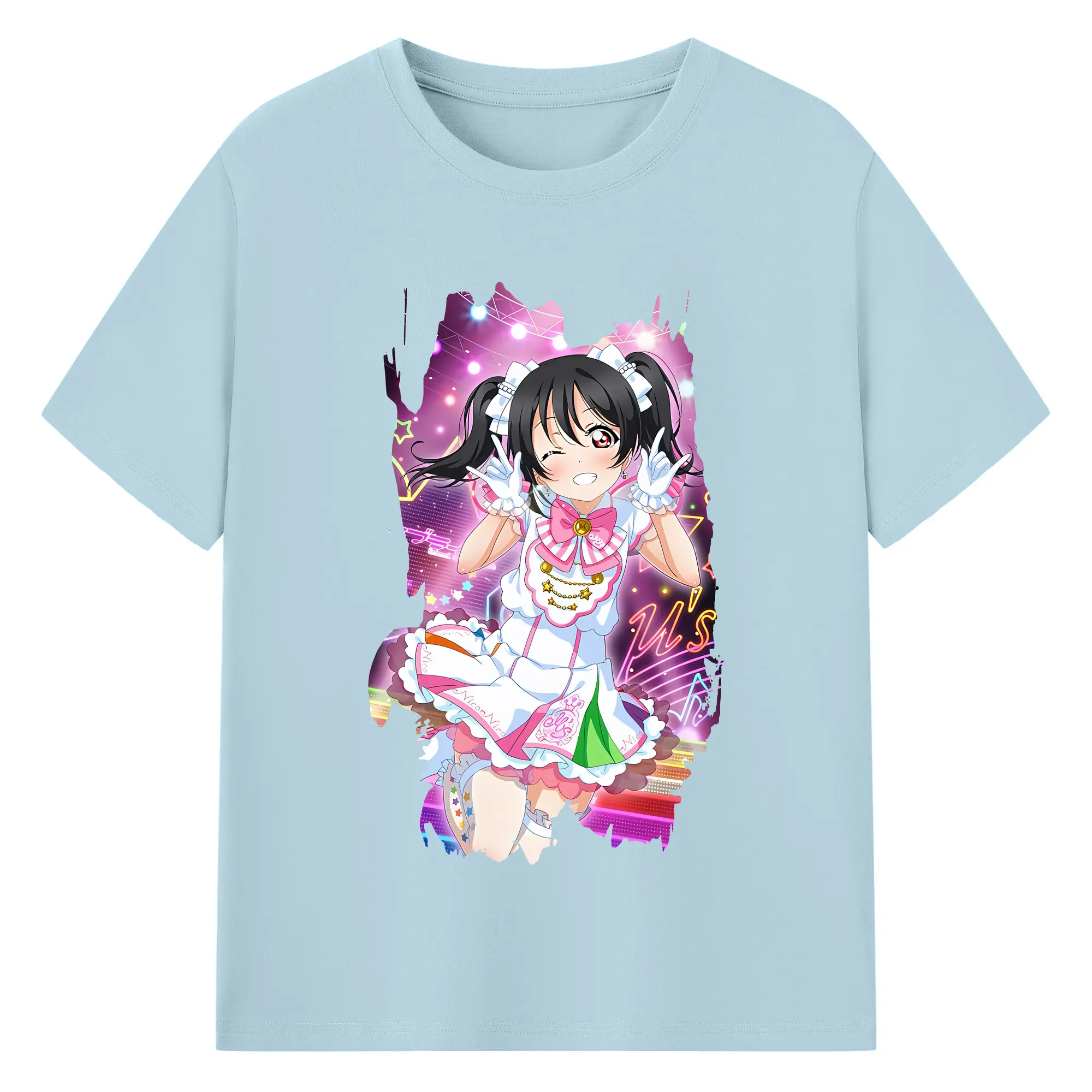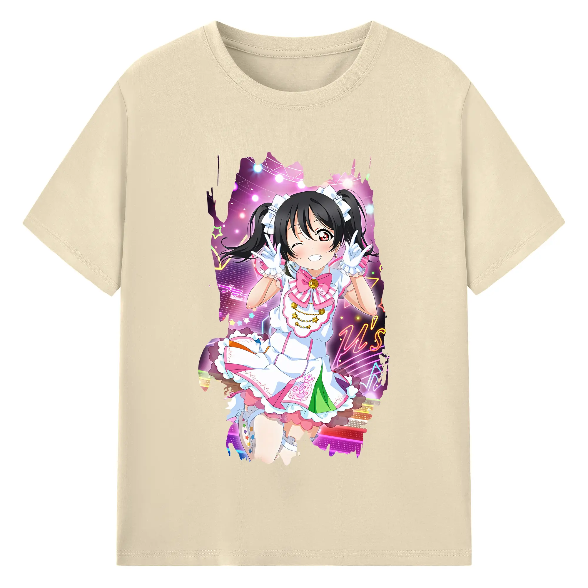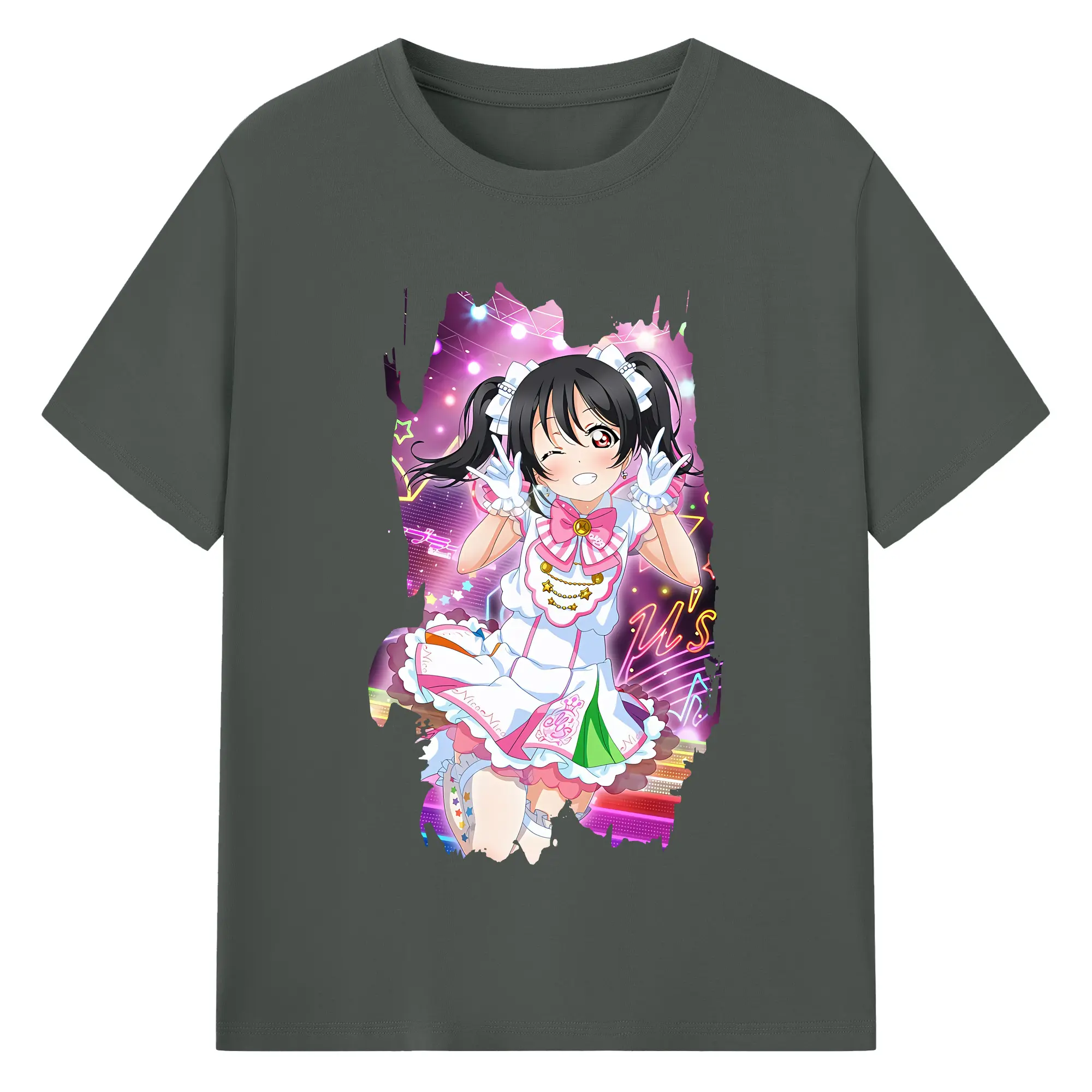 Love Live! グッズ,矢澤にこ - 綿100% ヴィンテージ風 半袖Tシャツ ・ フロントプリント ・ 柔らか肌触り ・ 通気性 快適 ・ スポーツ カジュアル 外出用