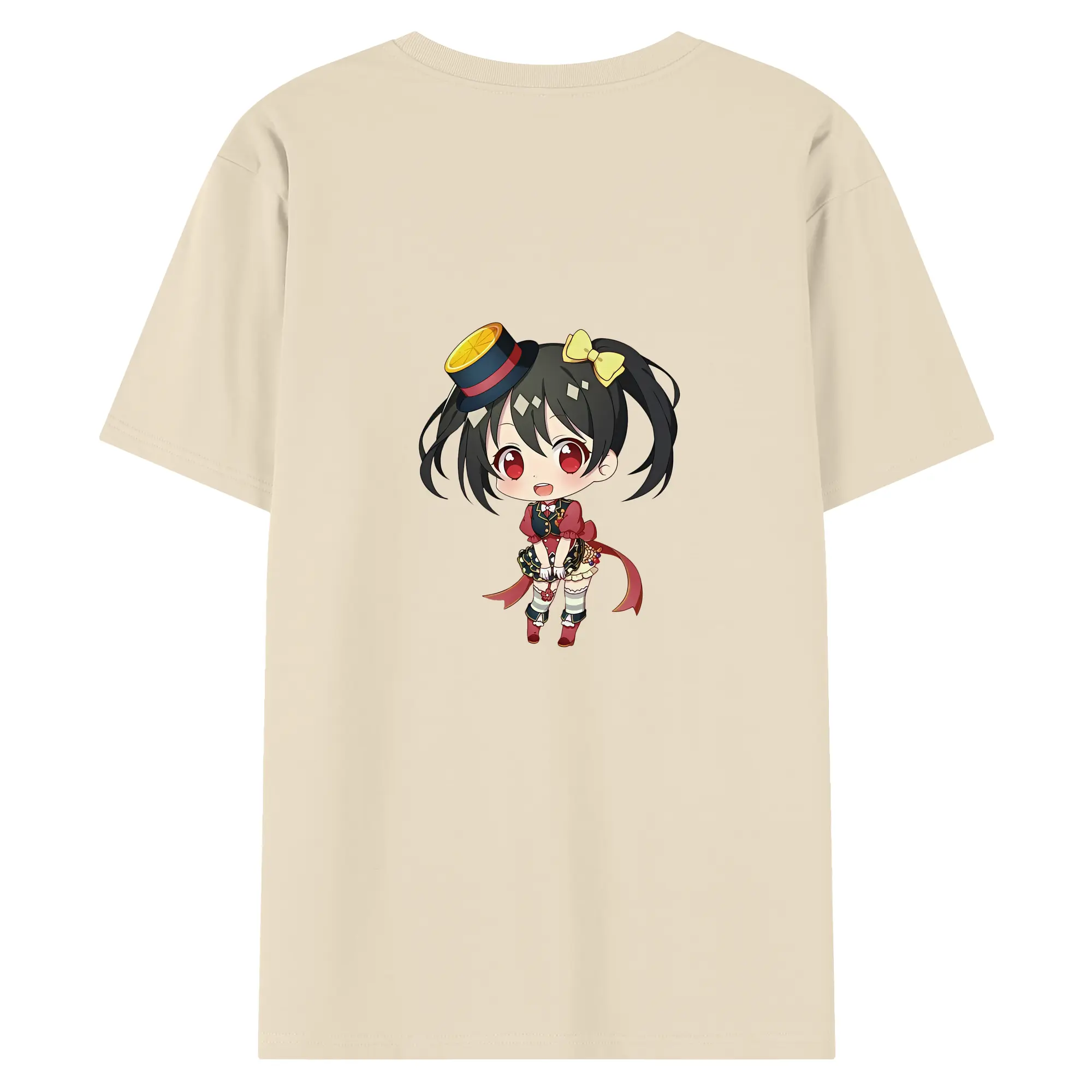 Love Live! グッズ,矢澤にこ - 綿100% ヴィンテージ風 半袖Tシャツ ・ 背面プリント ・ 柔らか肌触り ・ 通気性 快適 ・ スポーツ カジュアル 外出用