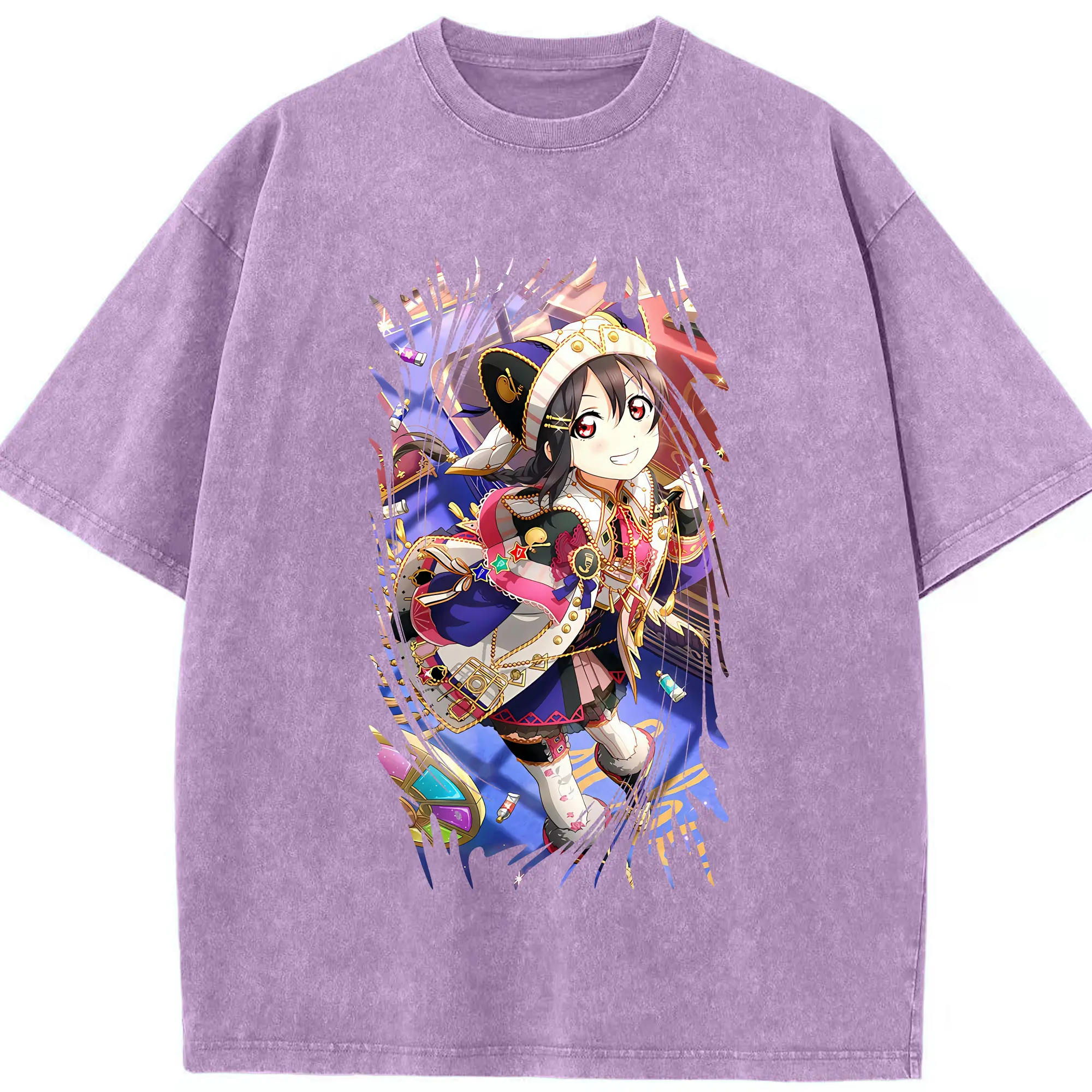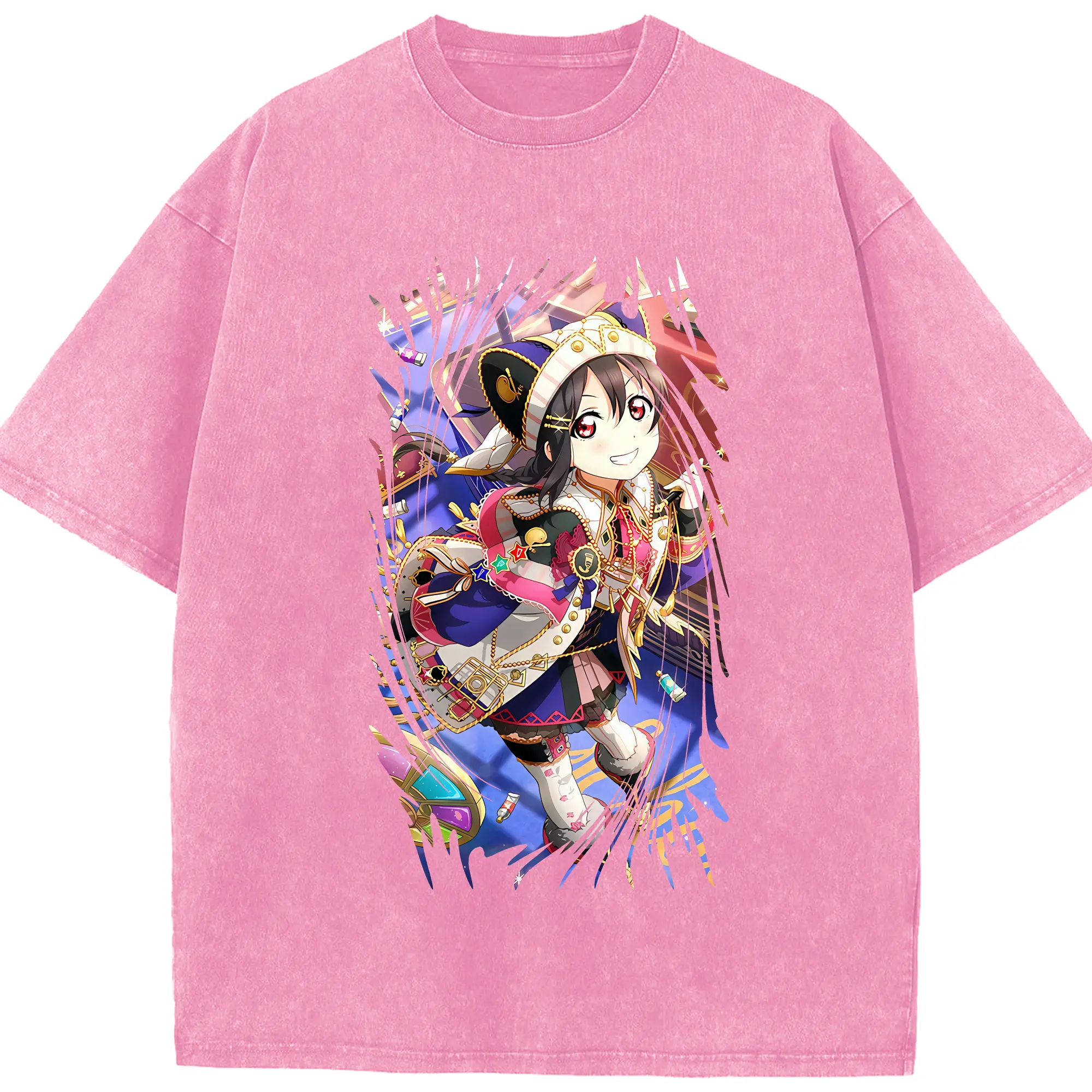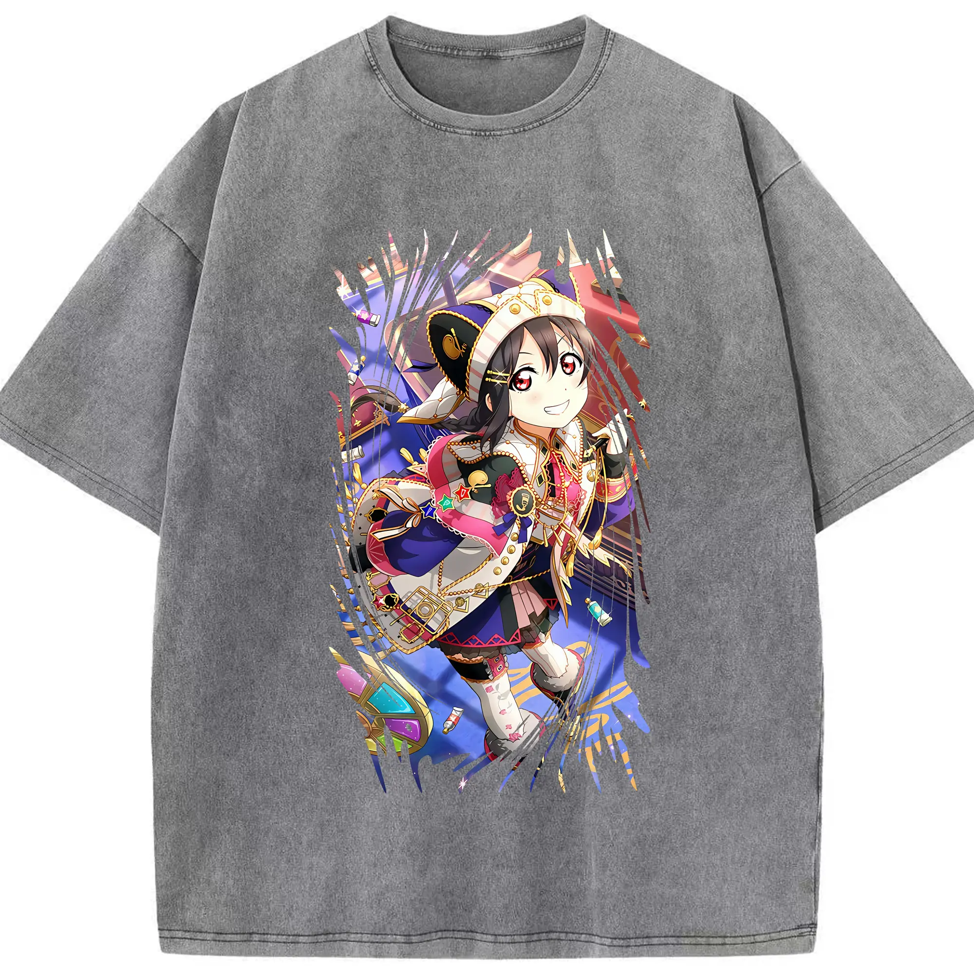 Love Live! グッズ,矢澤にこ - 綿100% ヴィンテージ風 半袖Tシャツ ・ 背面プリント ・ 柔らか肌触り ・ 通気性 快適 ・ スポーツ カジュアル 外出用