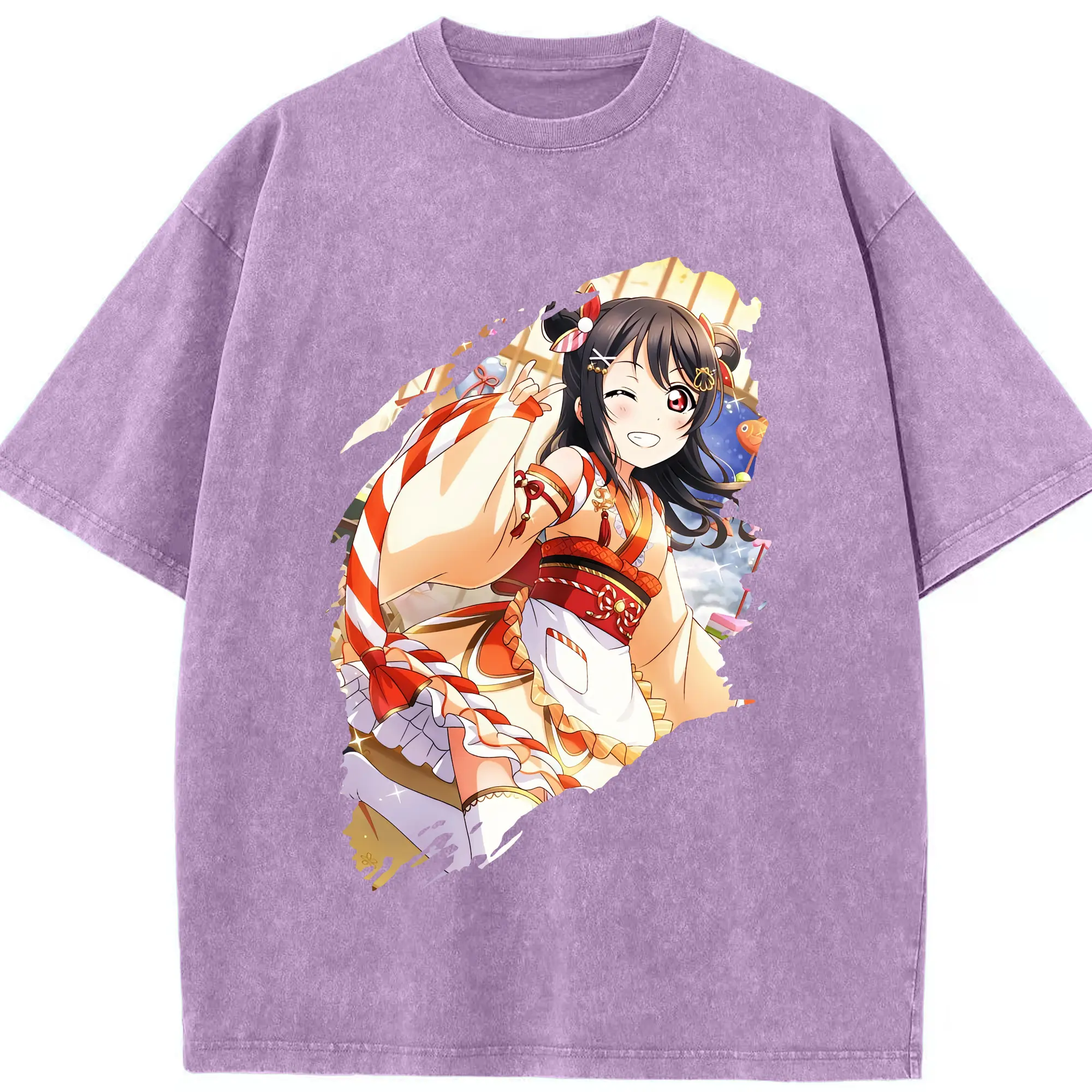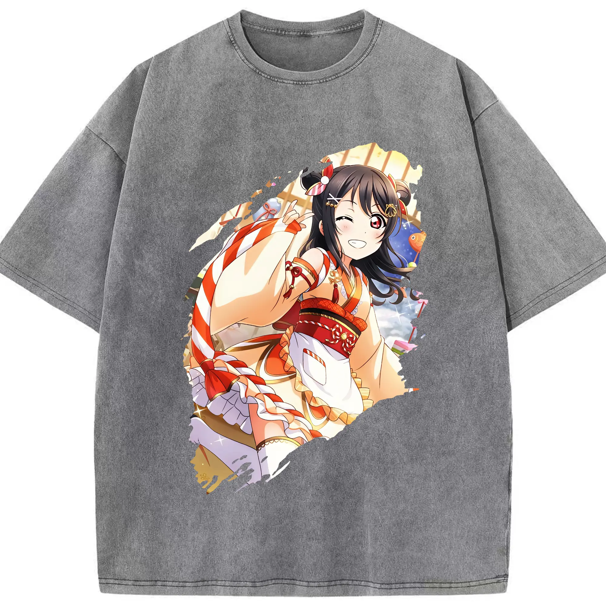 Love Live! グッズ,矢澤にこ - 綿100% ヴィンテージ風 半袖Tシャツ ・ 背面プリント ・ 柔らか肌触り ・ 通気性 快適 ・ スポーツ カジュアル 外出用
