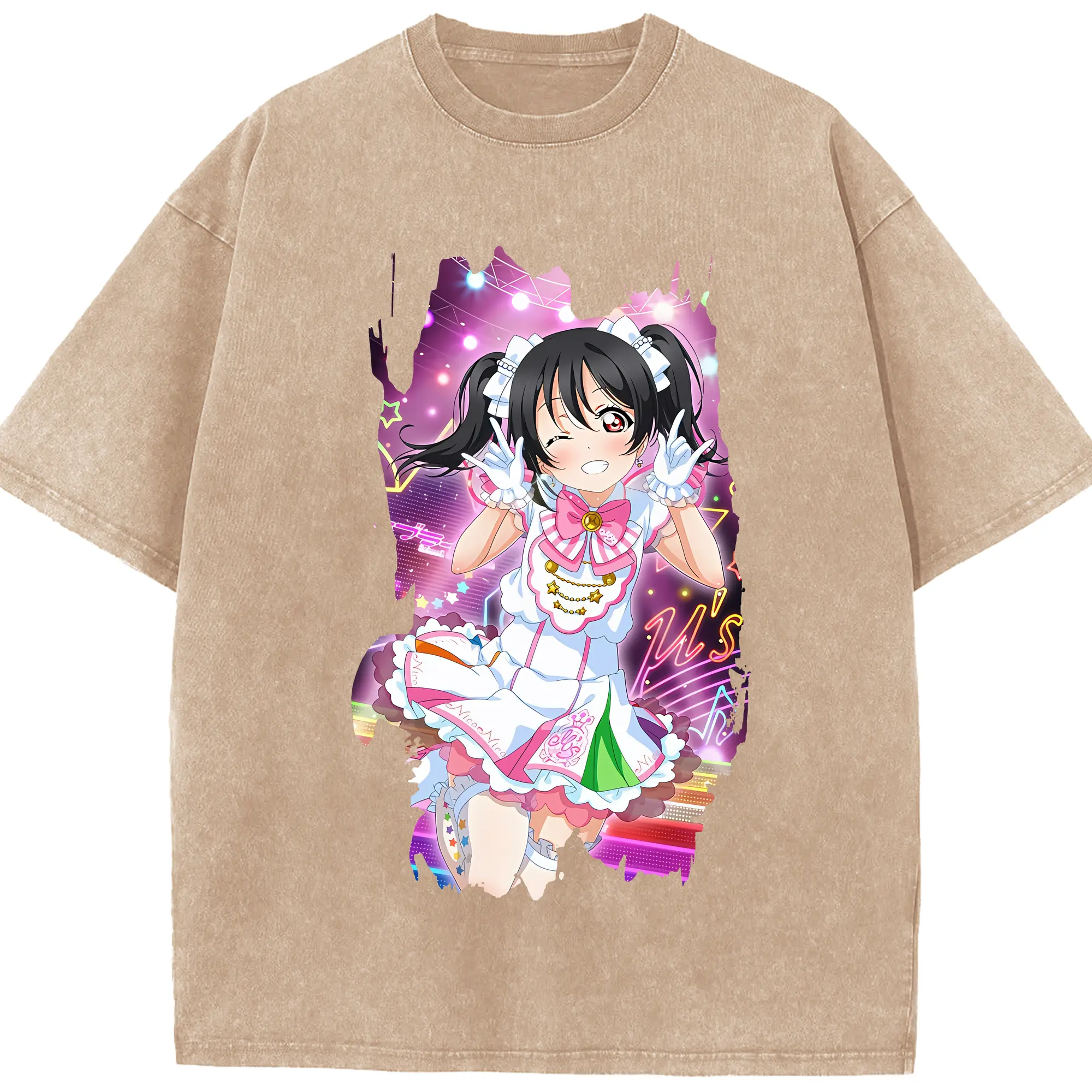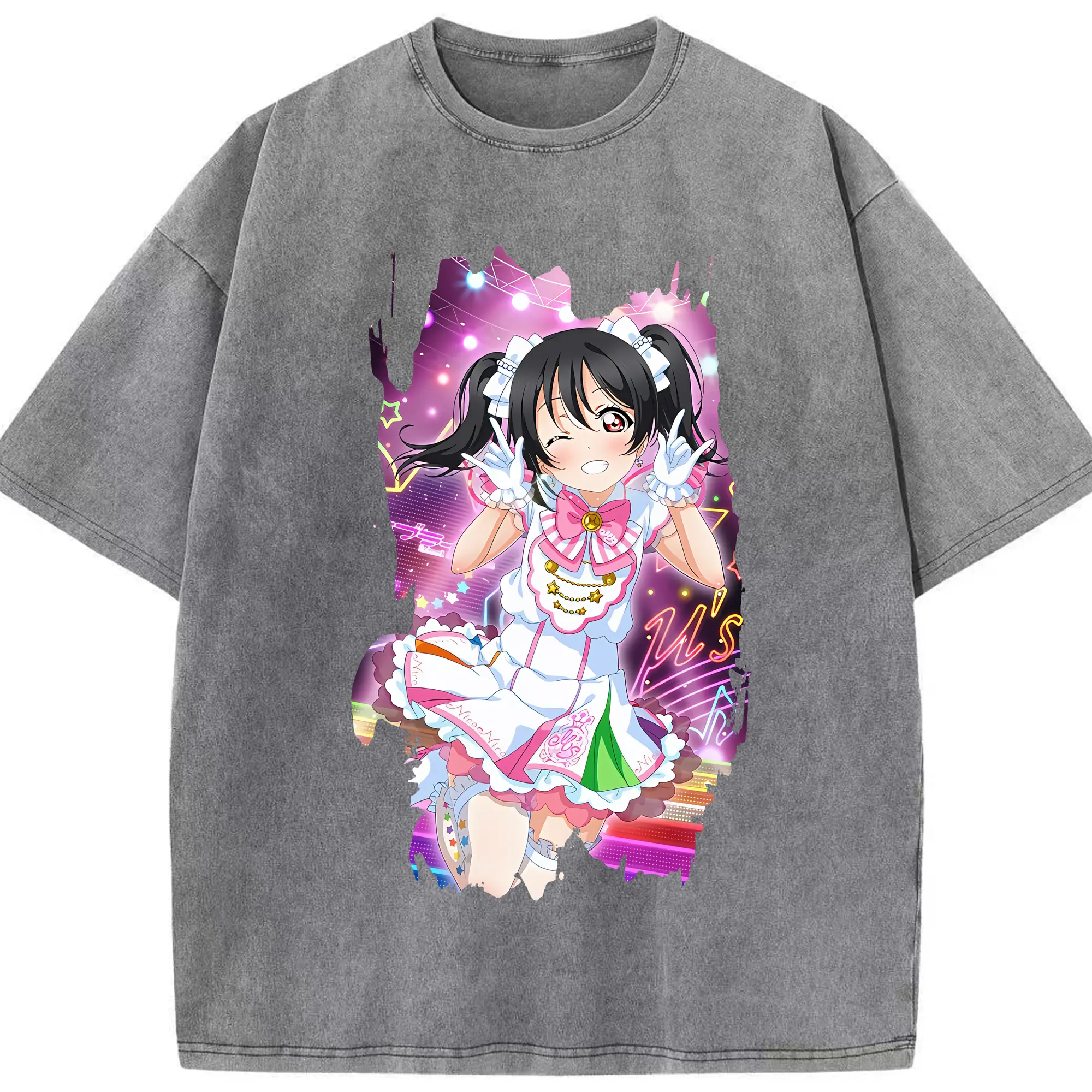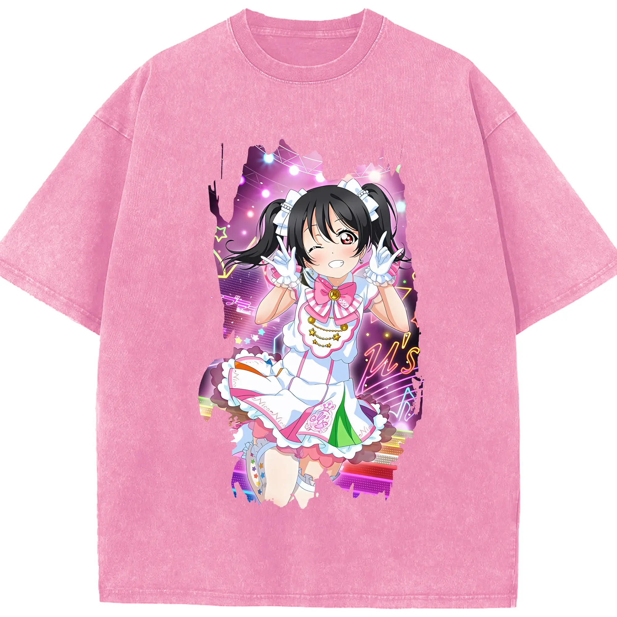 Love Live! グッズ,矢澤にこ - 綿100% ヴィンテージ風 半袖Tシャツ ・ 背面プリント ・ 柔らか肌触り ・ 通気性 快適 ・ スポーツ カジュアル 外出用