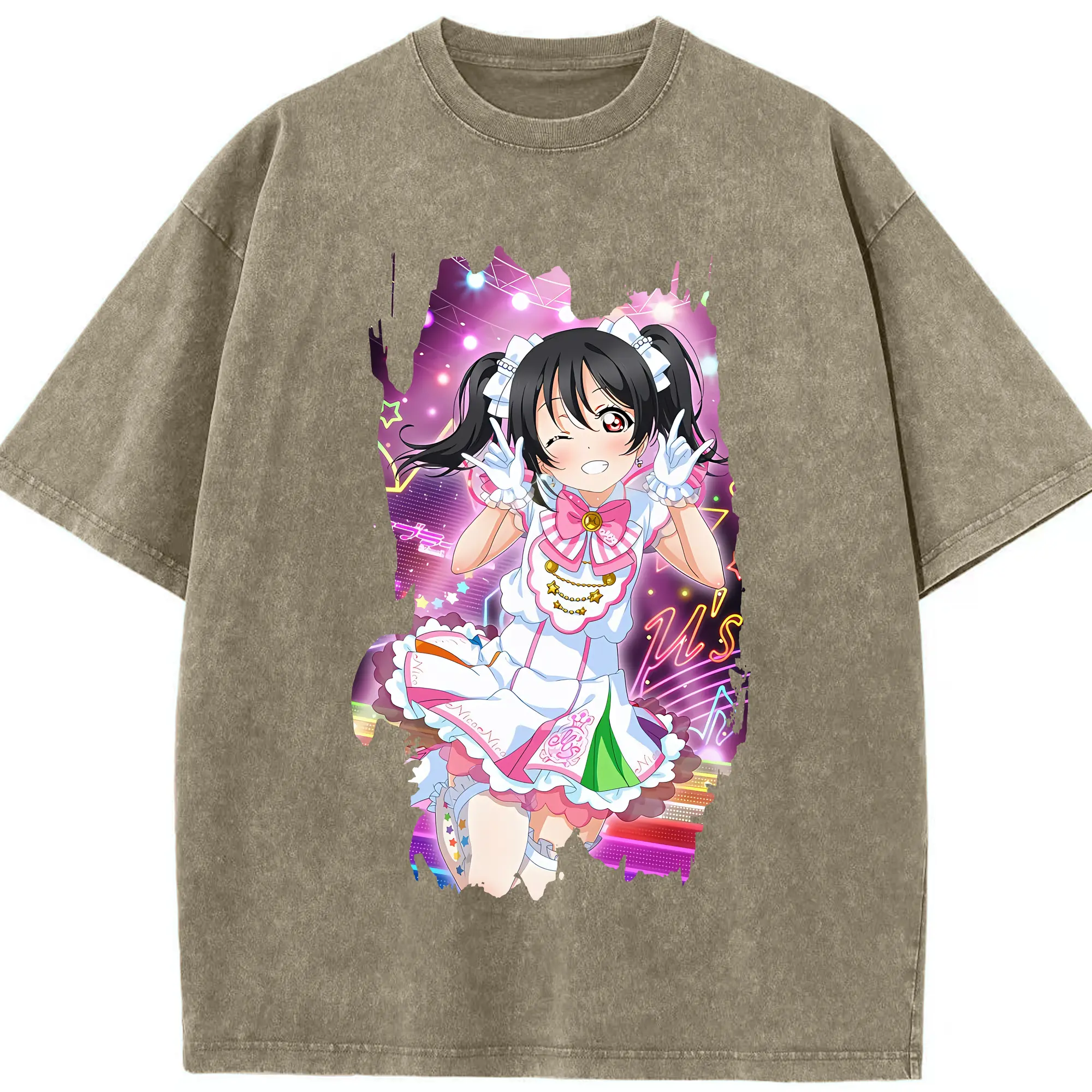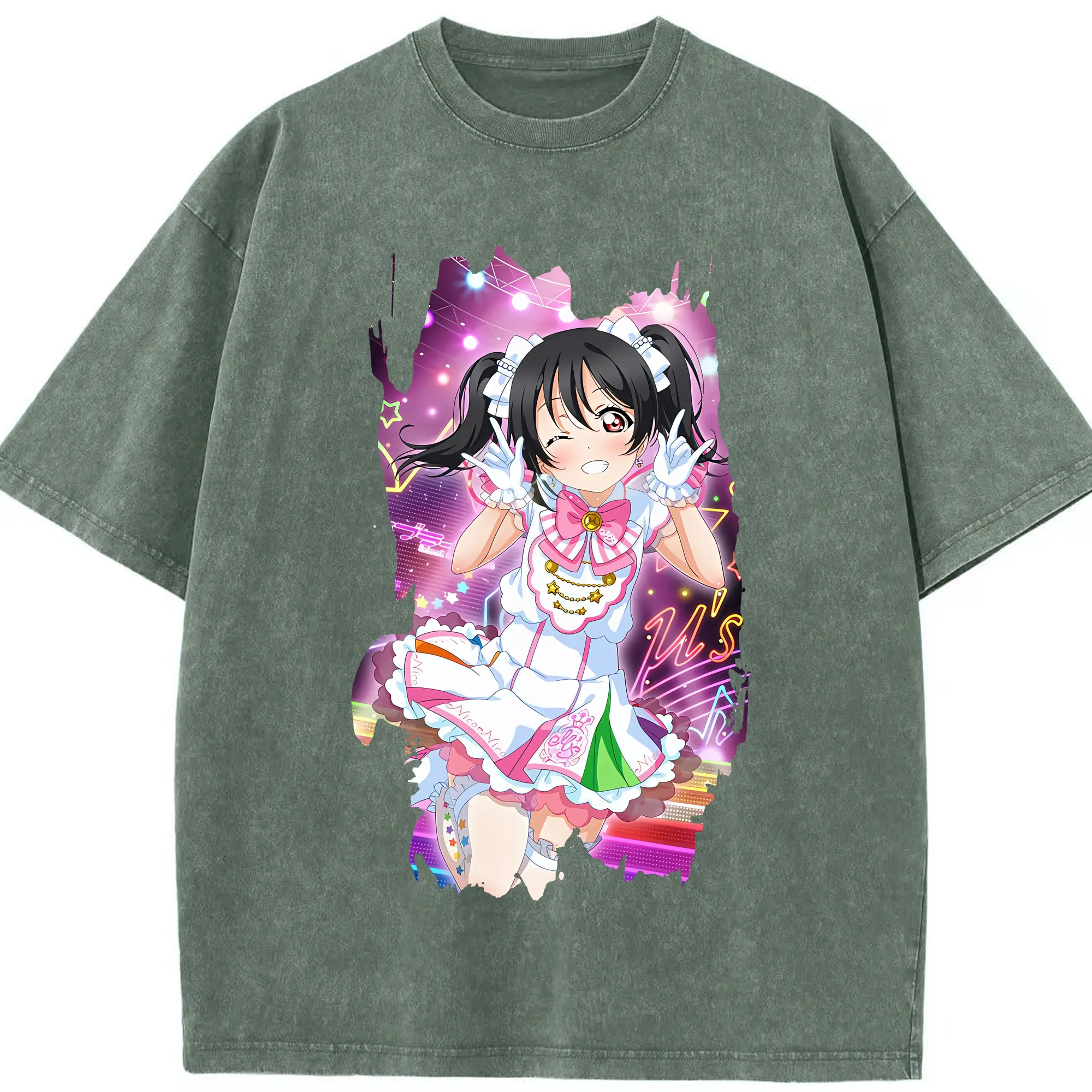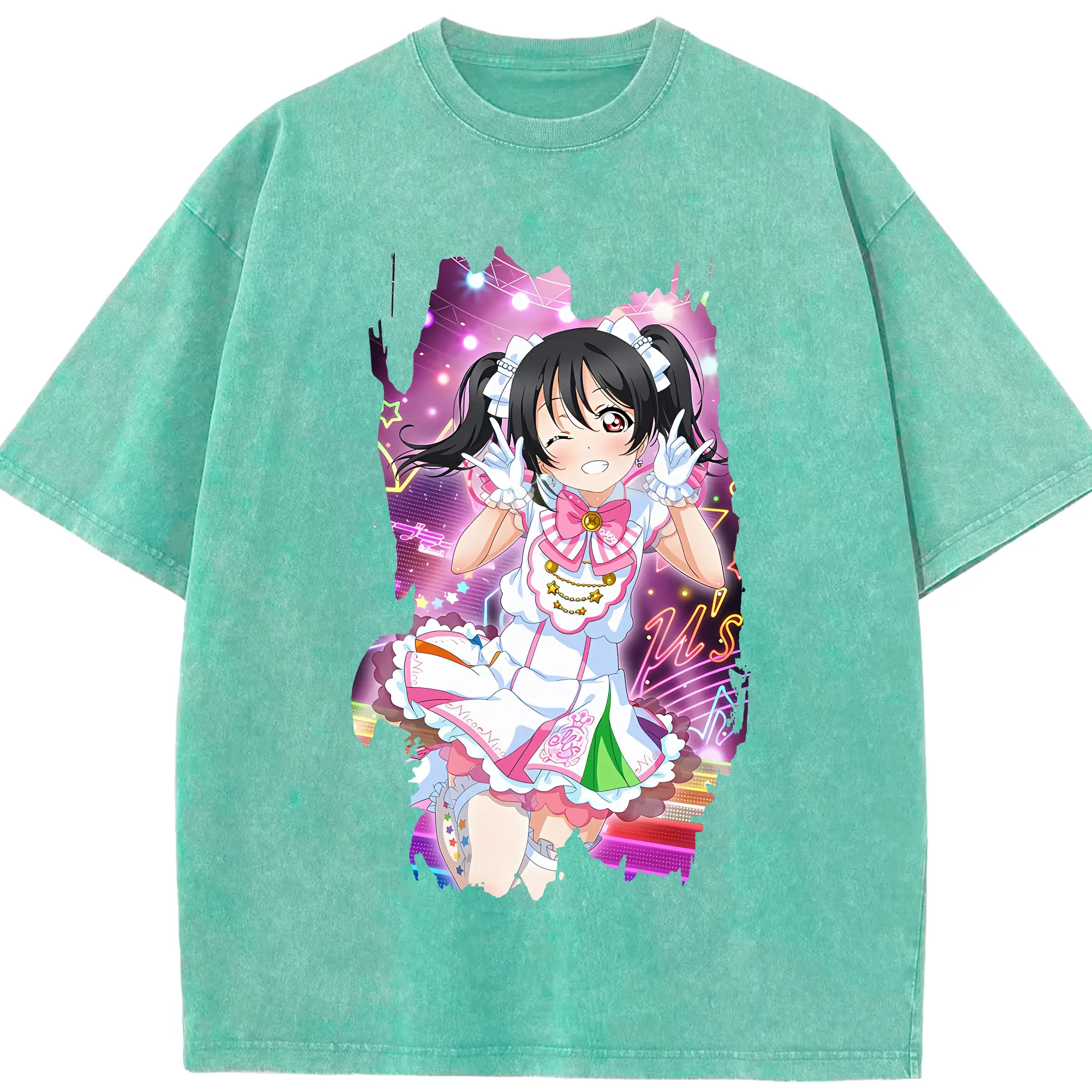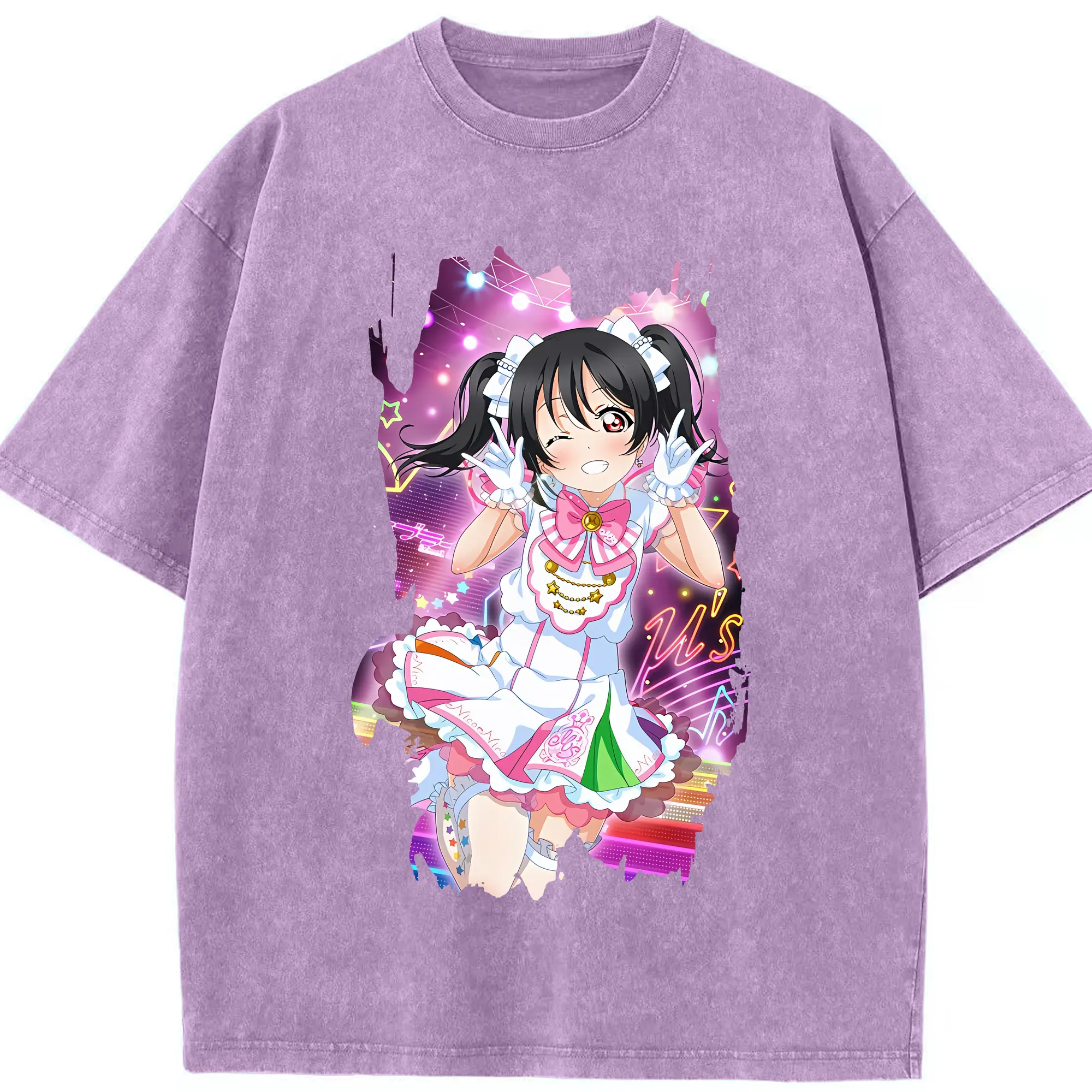 Love Live! グッズ,矢澤にこ - 綿100% ヴィンテージ風 半袖Tシャツ ・ 背面プリント ・ 柔らか肌触り ・ 通気性 快適 ・ スポーツ カジュアル 外出用