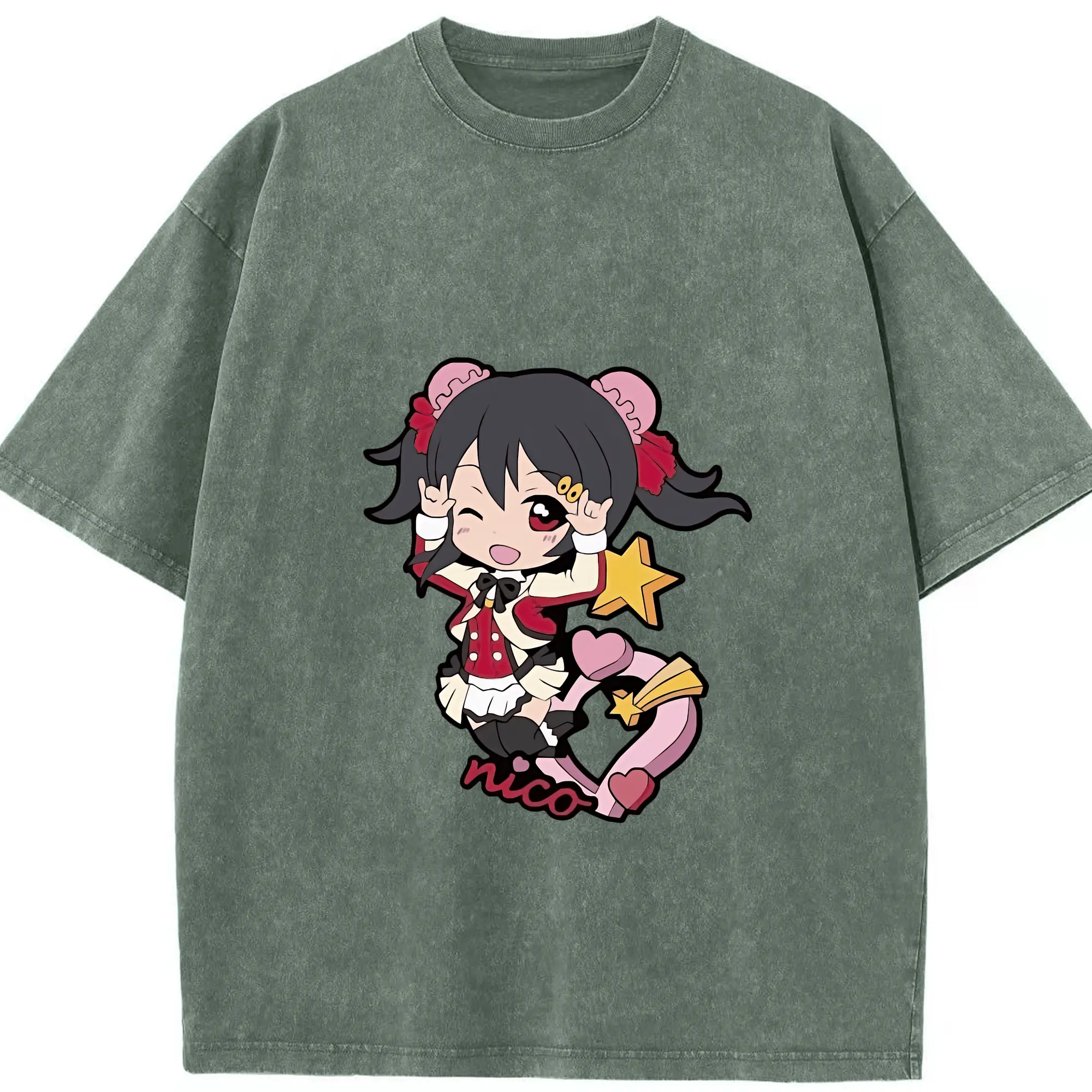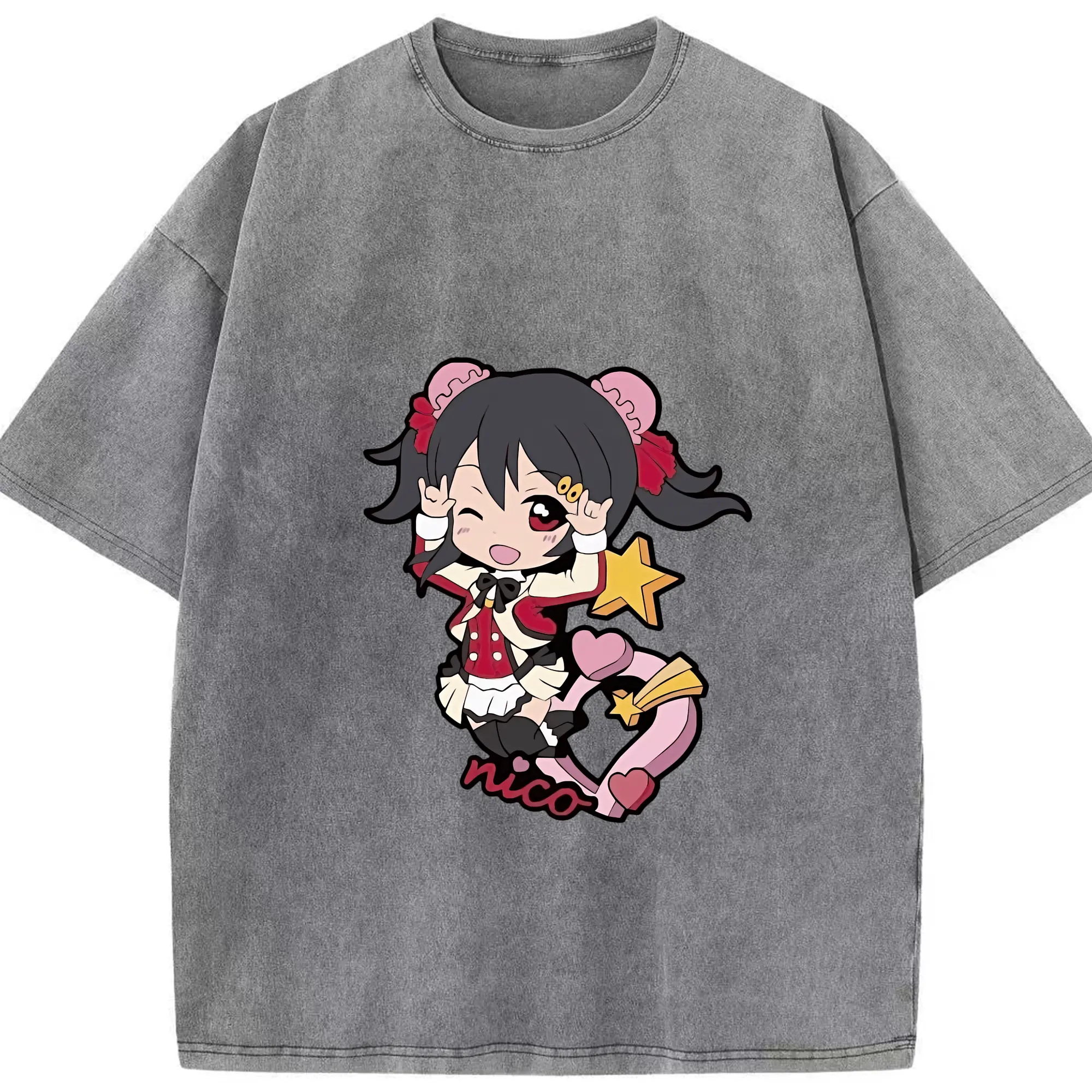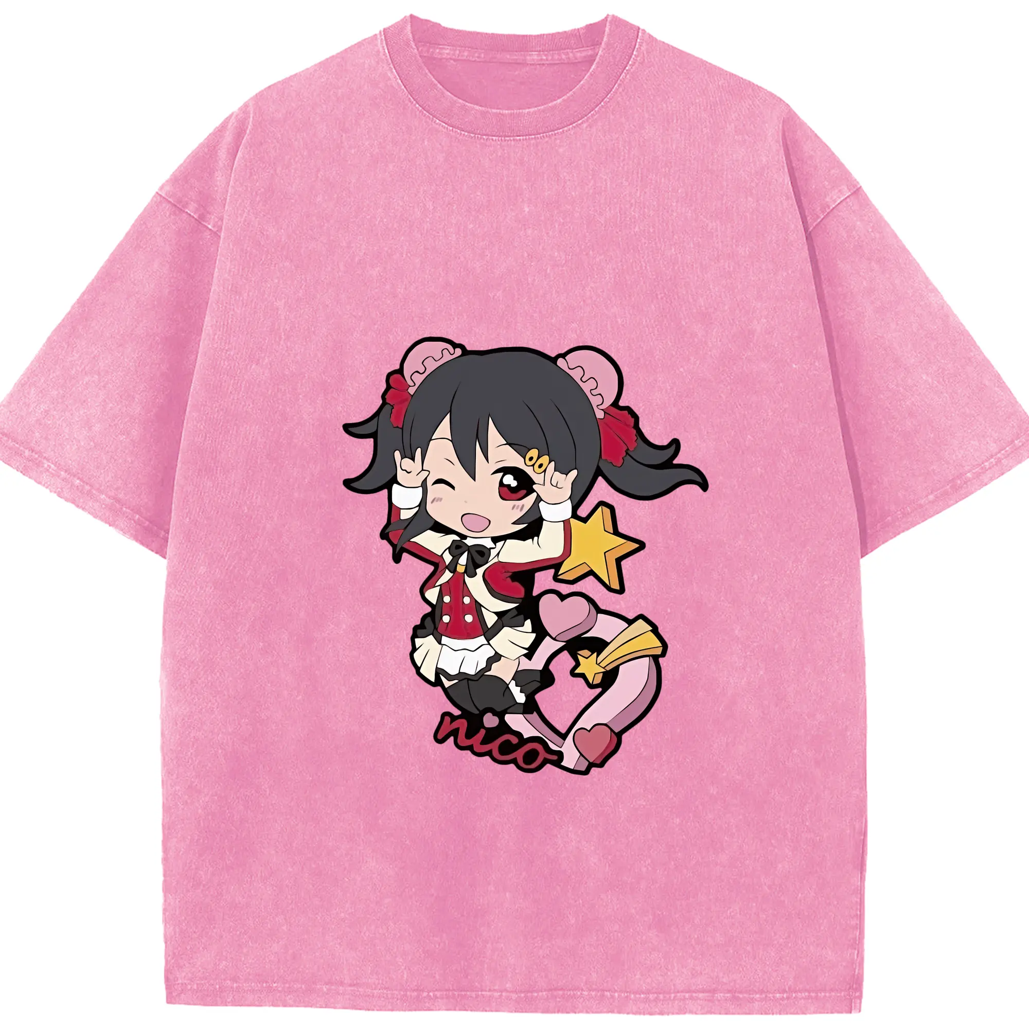 Love Live! グッズ,矢澤にこ - 綿100% ヴィンテージ風 半袖Tシャツ ・ 背面プリント ・ 柔らか肌触り ・ 通気性 快適 ・ スポーツ カジュアル 外出用