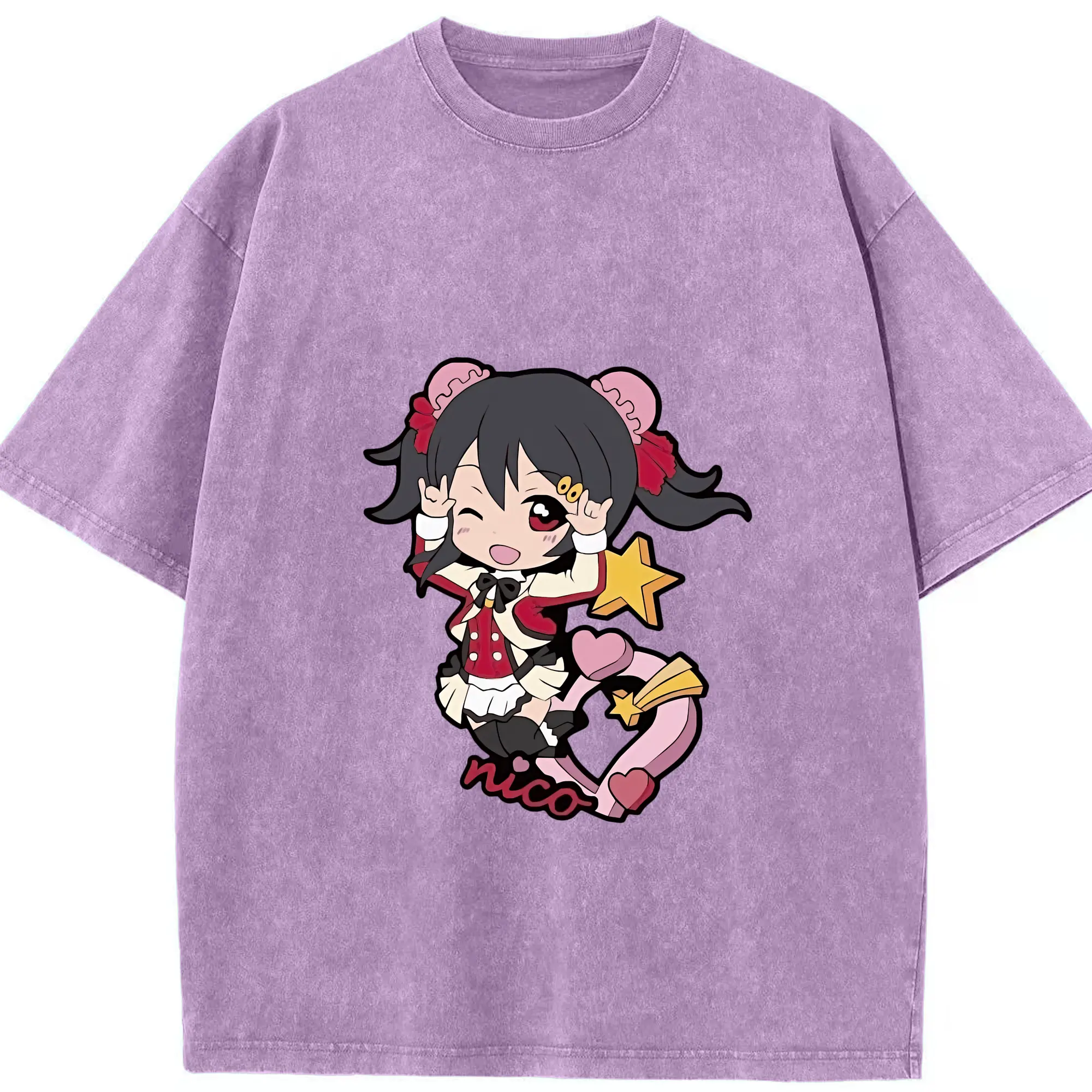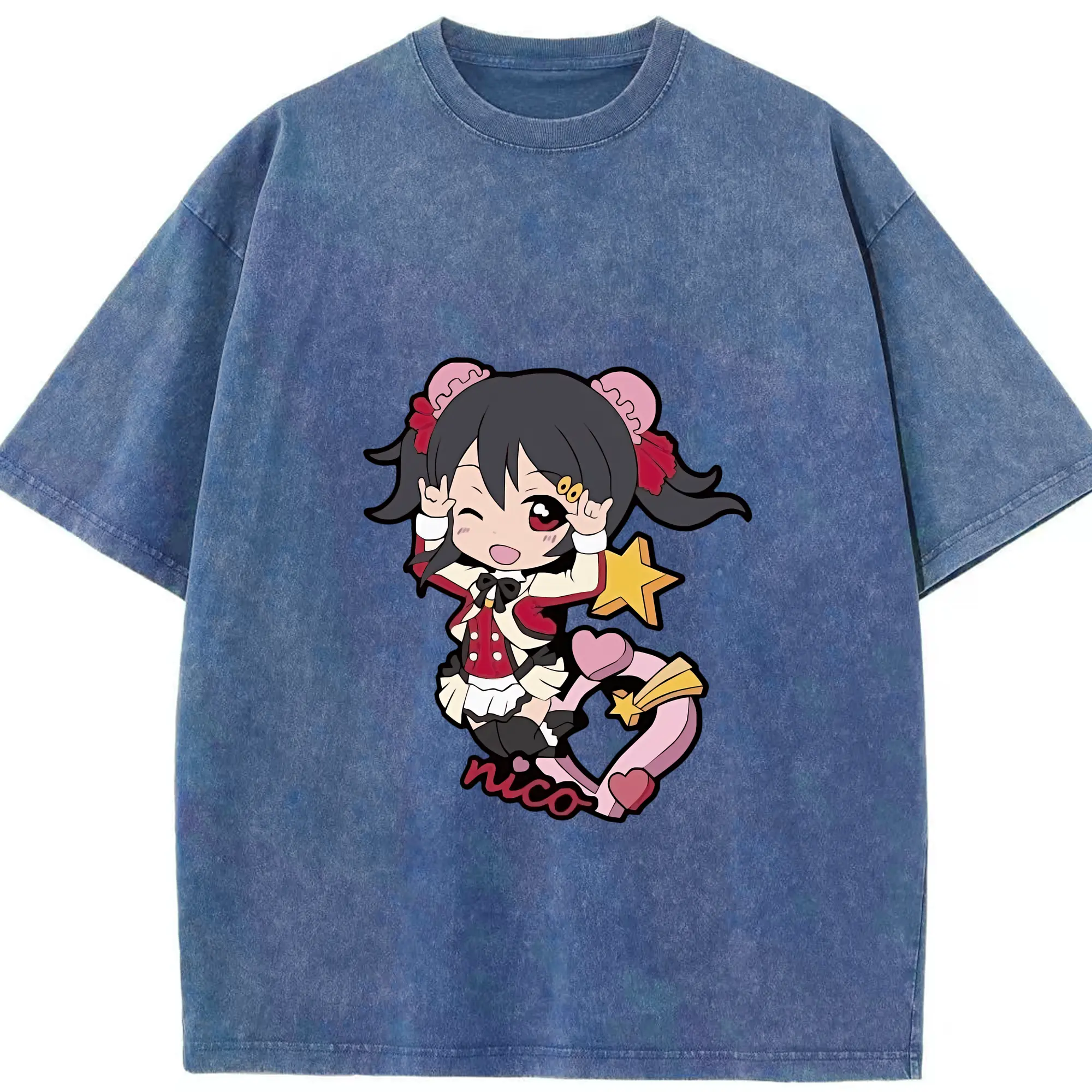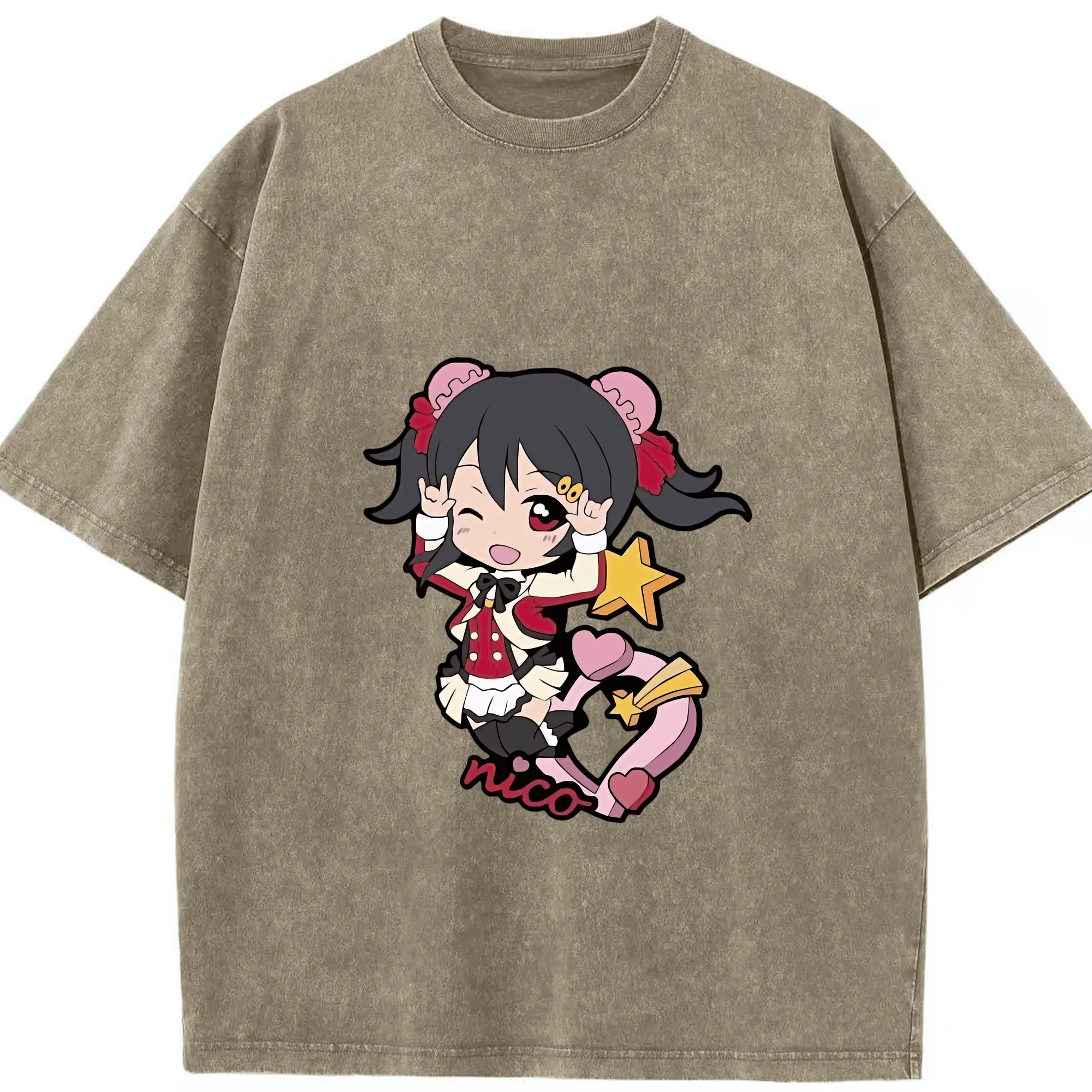Love Live! グッズ,矢澤にこ - 綿100% ヴィンテージ風 半袖Tシャツ ・ 背面プリント ・ 柔らか肌触り ・ 通気性 快適 ・ スポーツ カジュアル 外出用