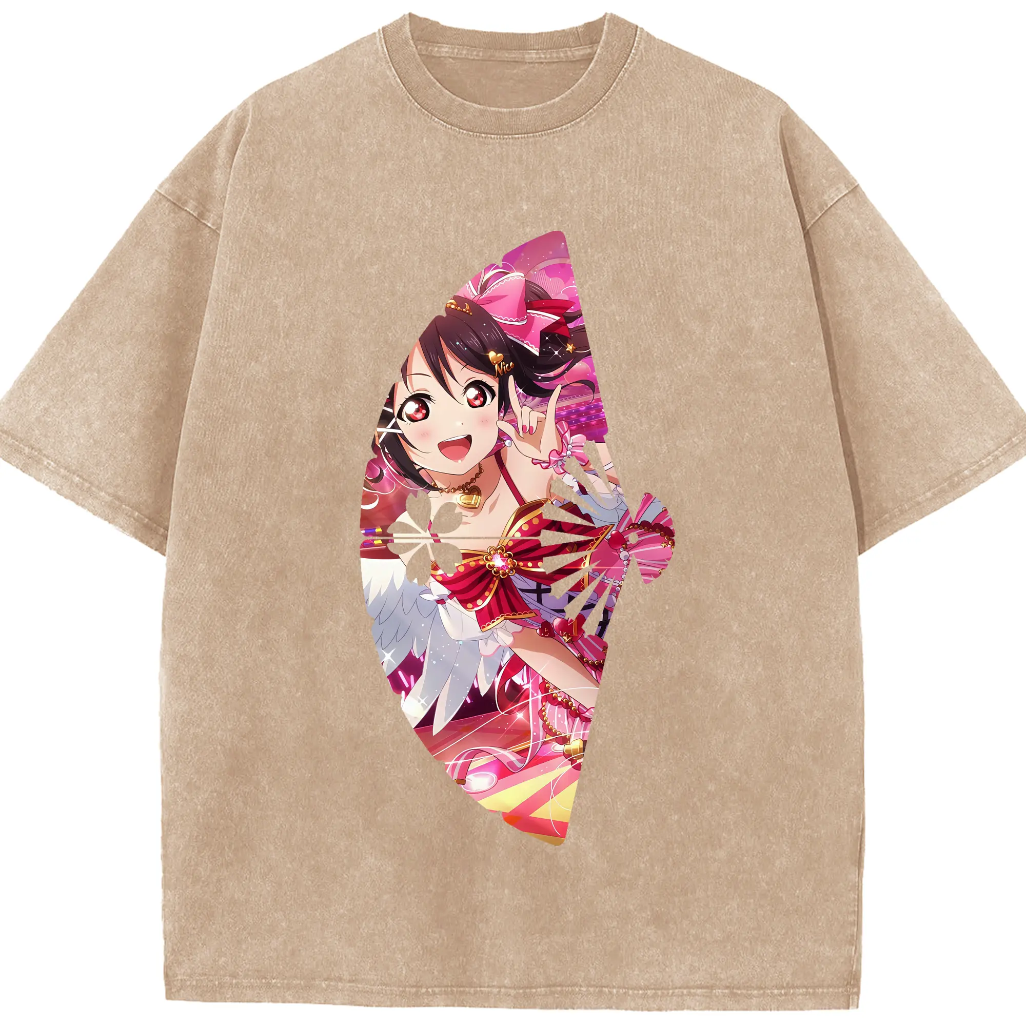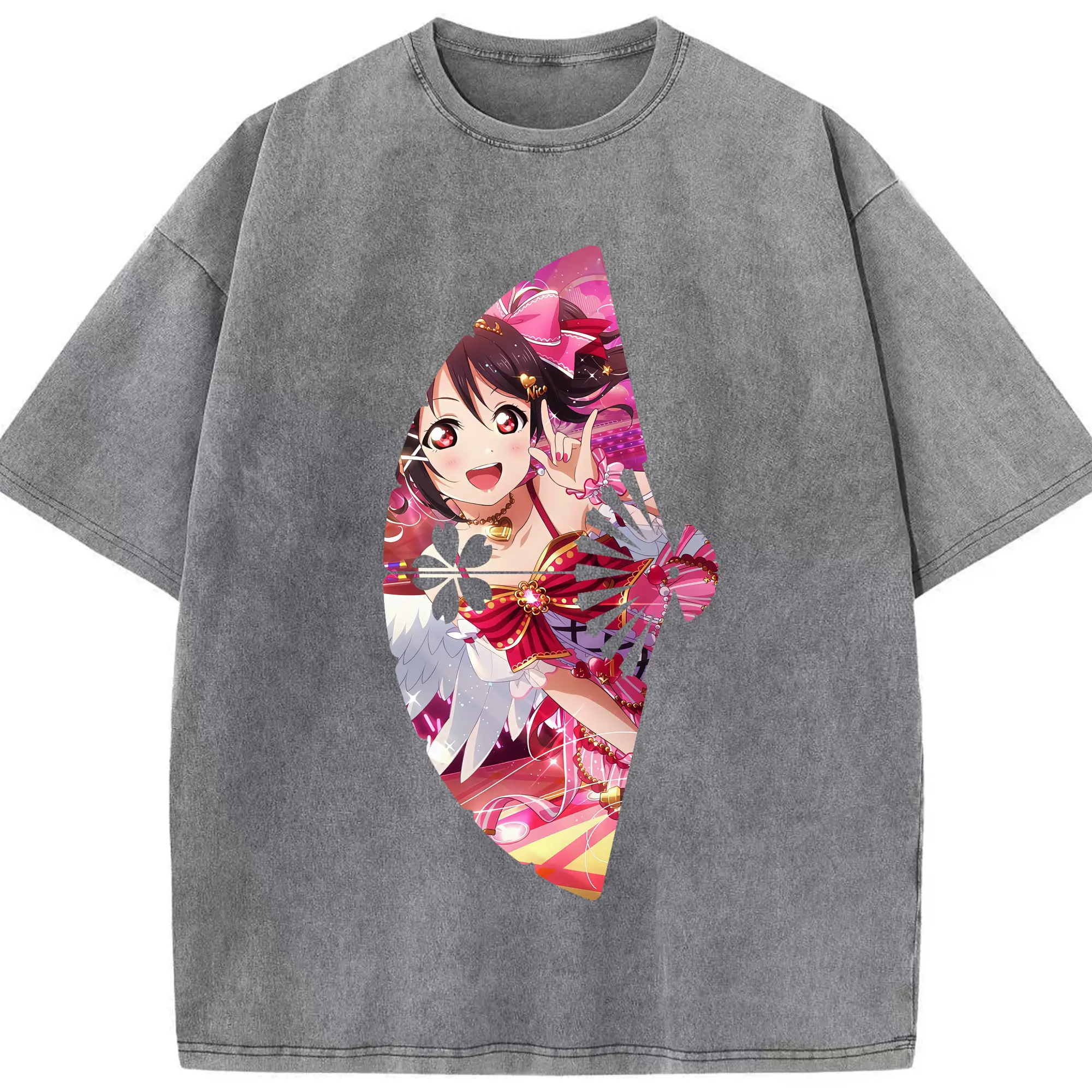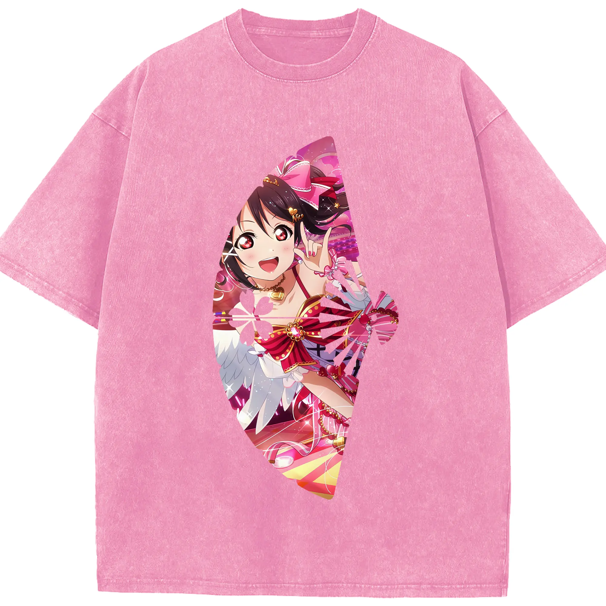Love Live! グッズ,矢澤にこ - 綿100% ヴィンテージ風 半袖Tシャツ ・ 背面プリント ・ 柔らか肌触り ・ 通気性 快適 ・ スポーツ カジュアル 外出用
