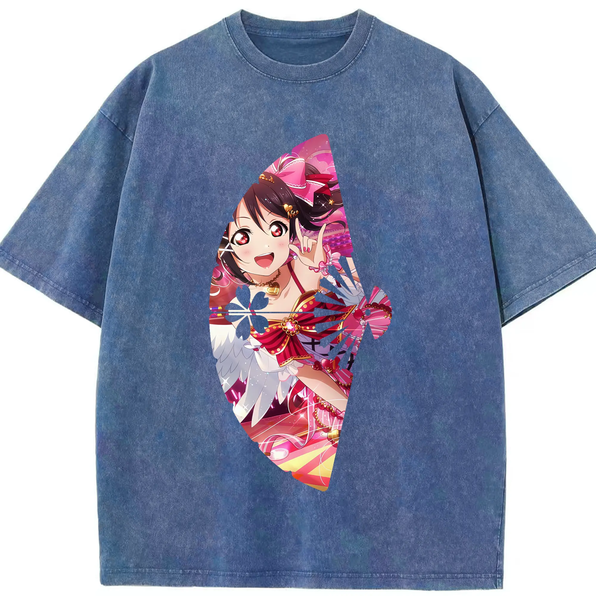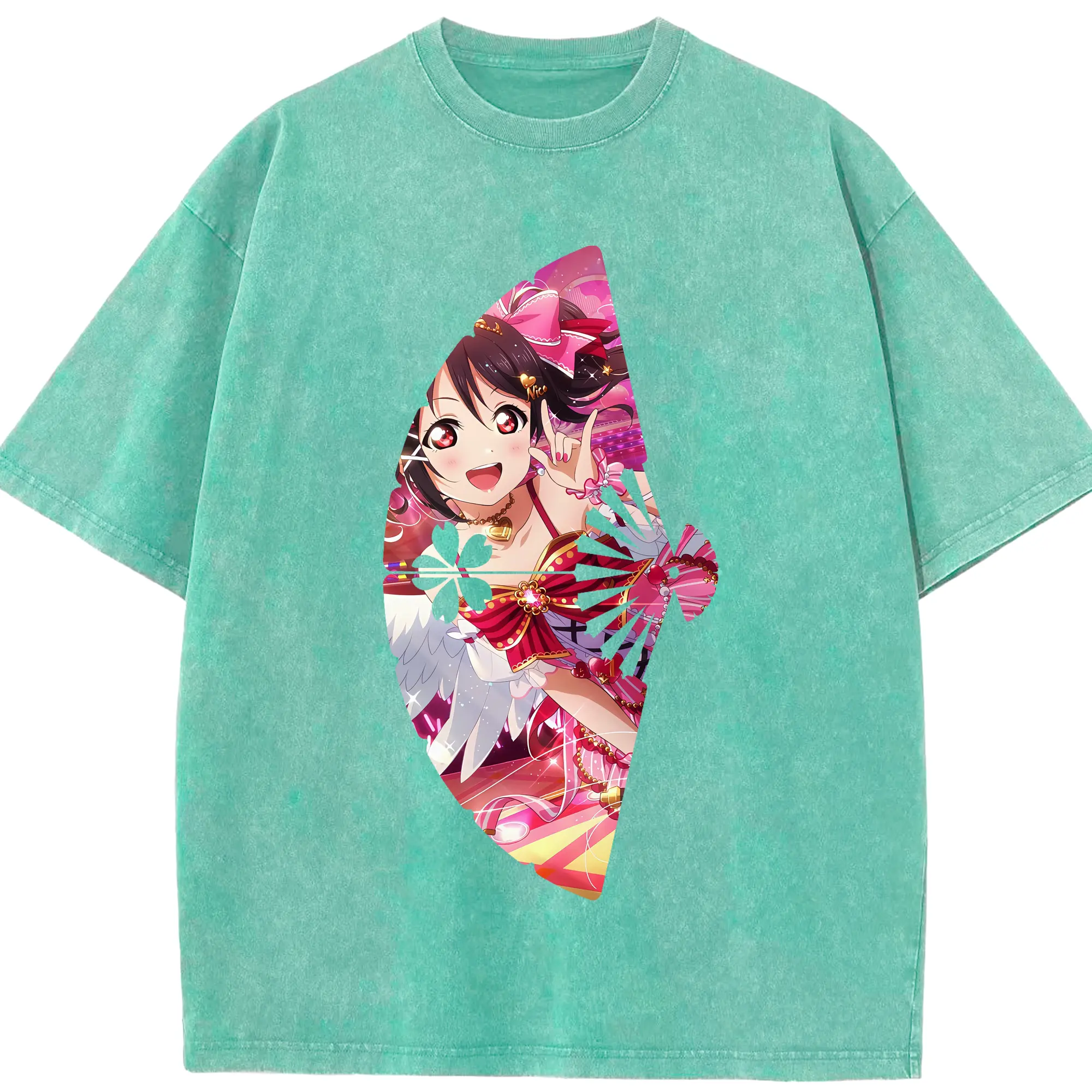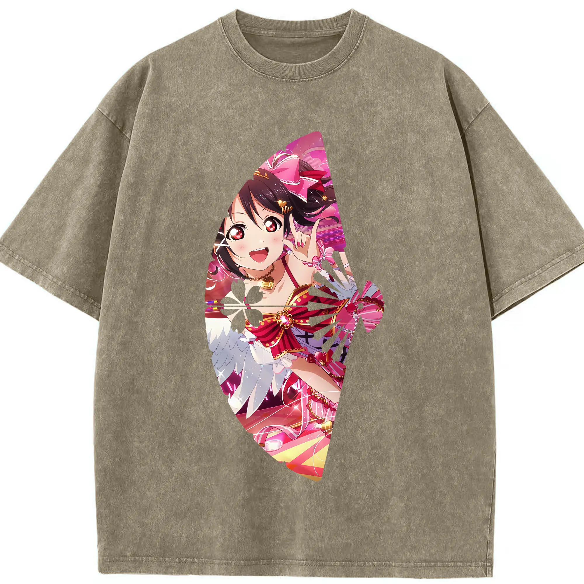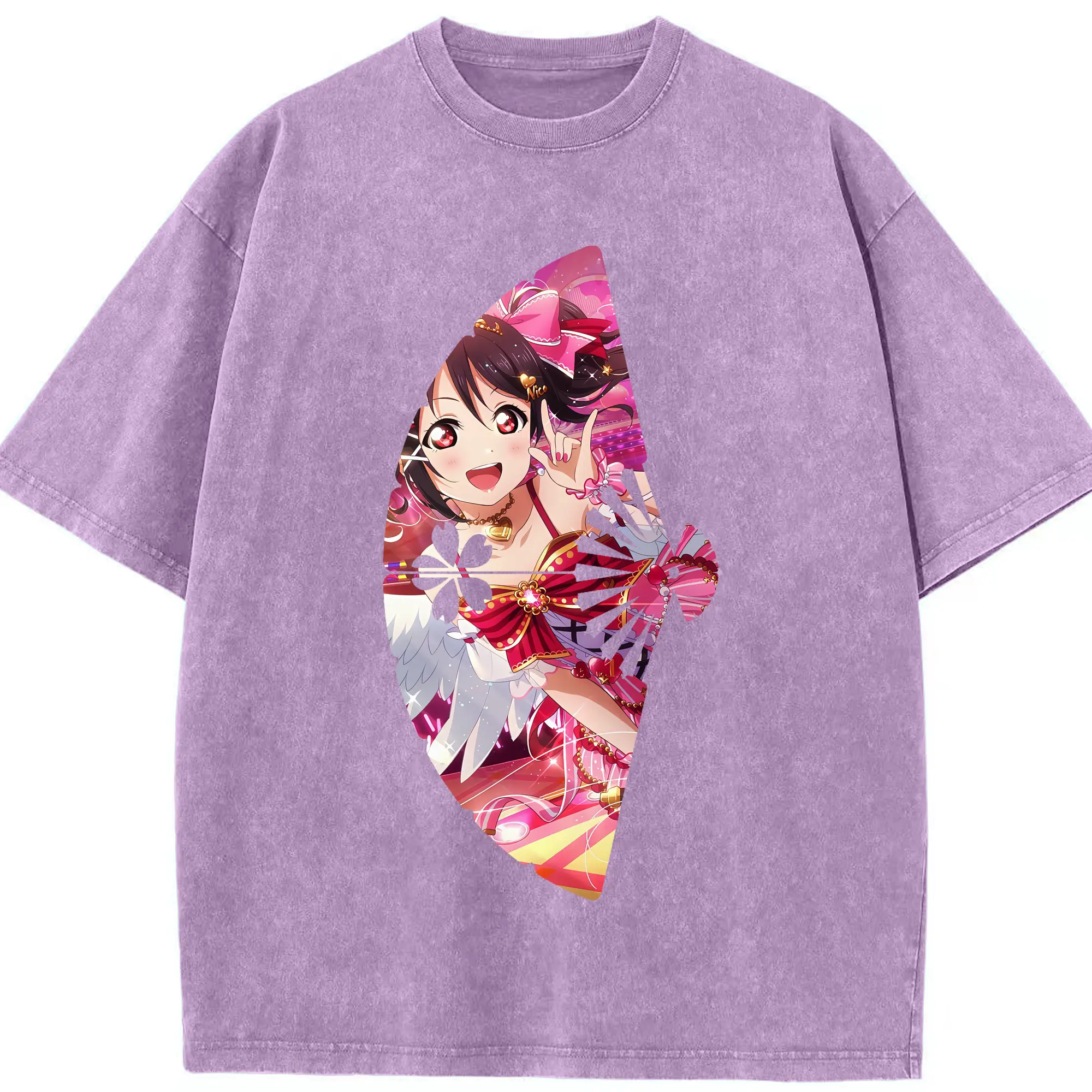 Love Live! グッズ,矢澤にこ - 綿100% ヴィンテージ風 半袖Tシャツ ・ 背面プリント ・ 柔らか肌触り ・ 通気性 快適 ・ スポーツ カジュアル 外出用