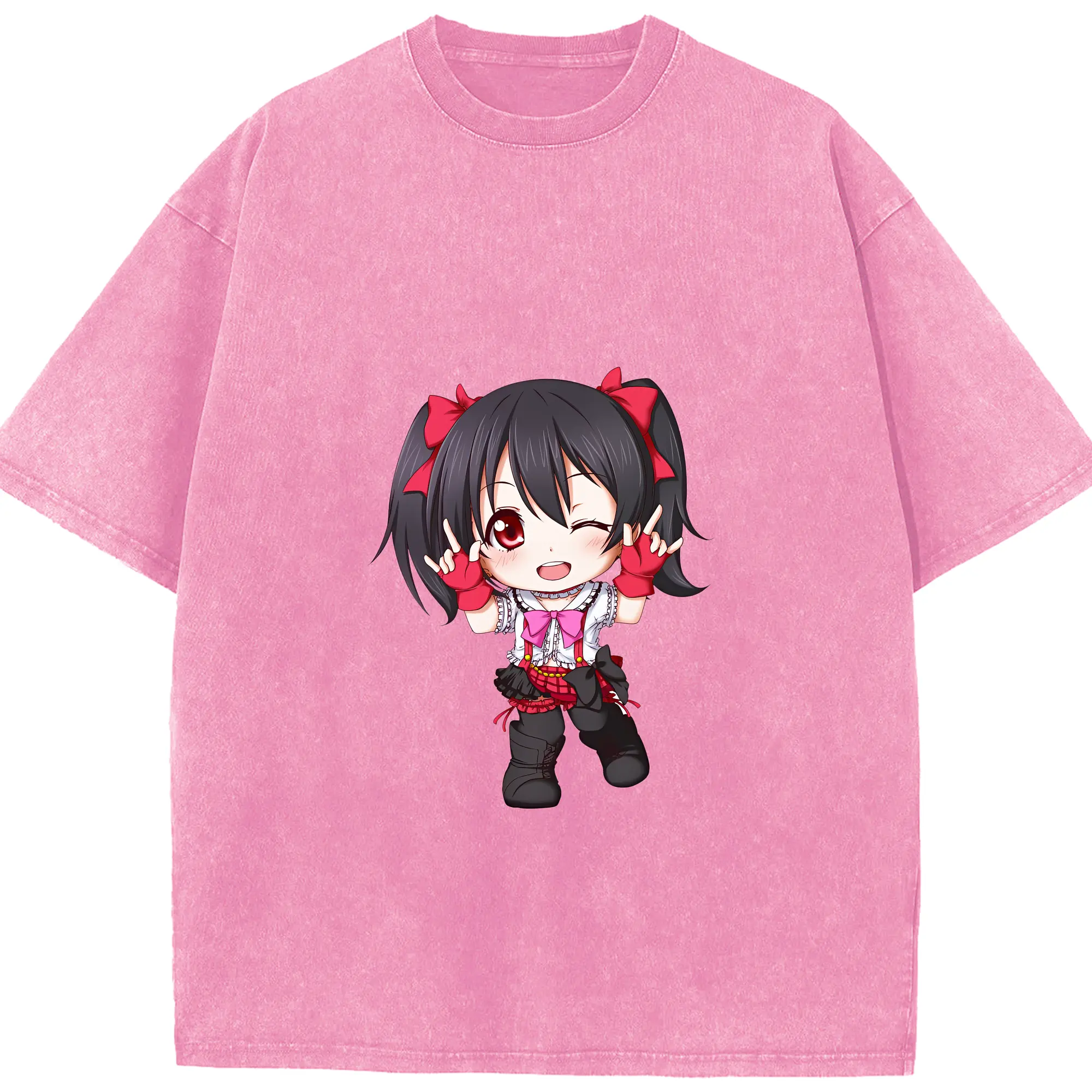 Love Live! グッズ,矢澤にこ - 綿100% ヴィンテージ風 半袖Tシャツ ・ 背面プリント ・ 柔らか肌触り ・ 通気性 快適 ・ スポーツ カジュアル 外出用