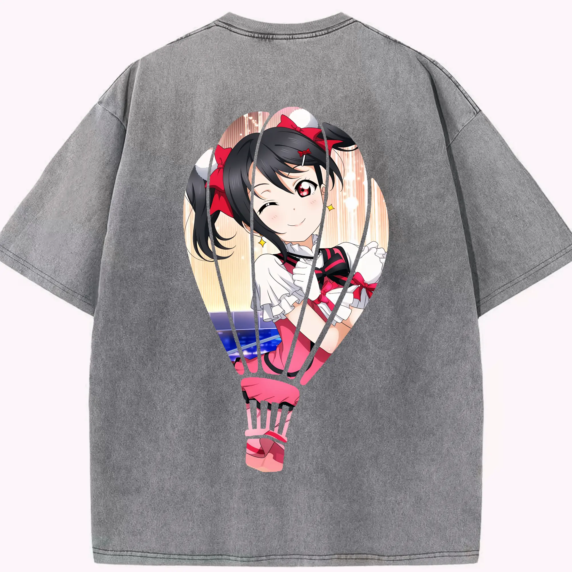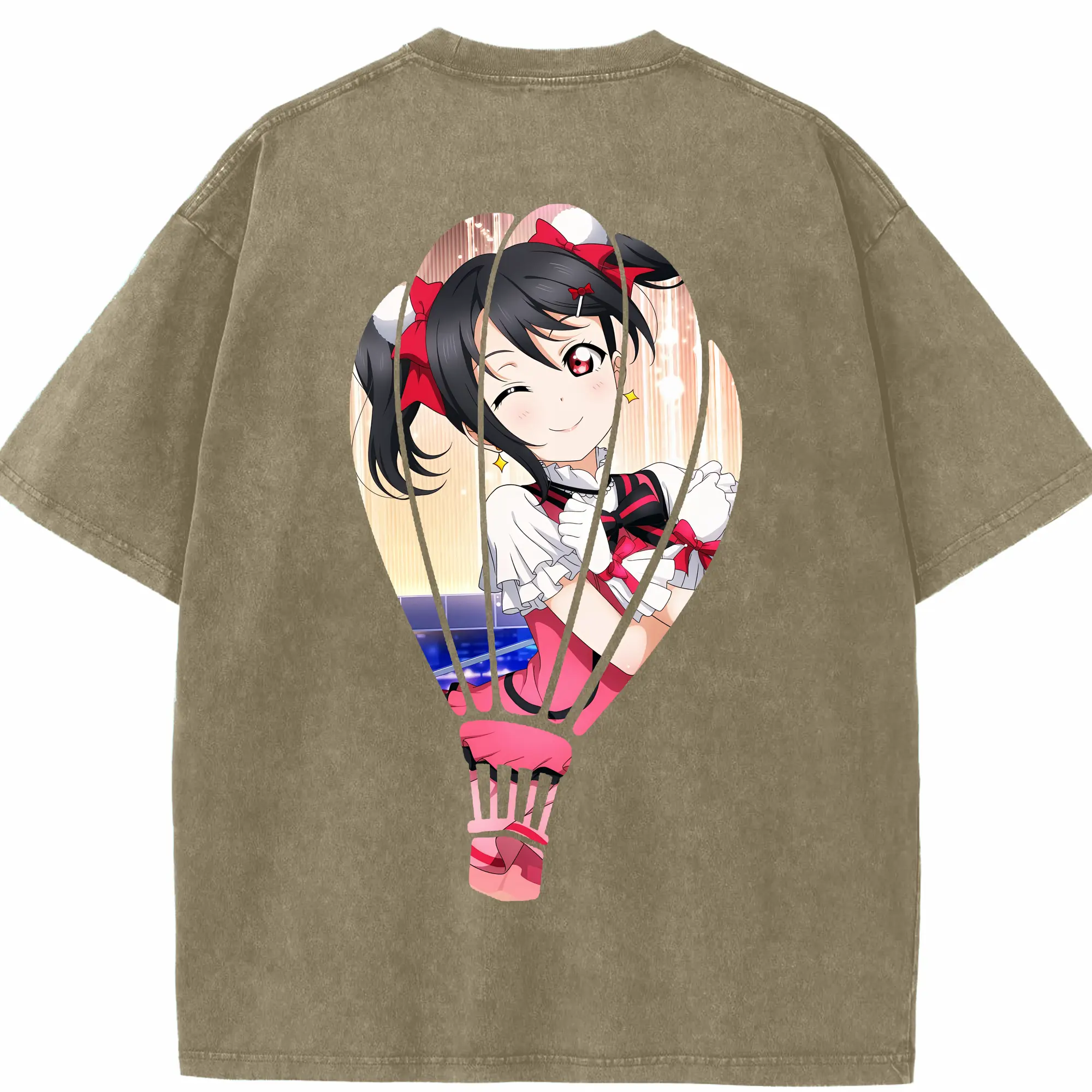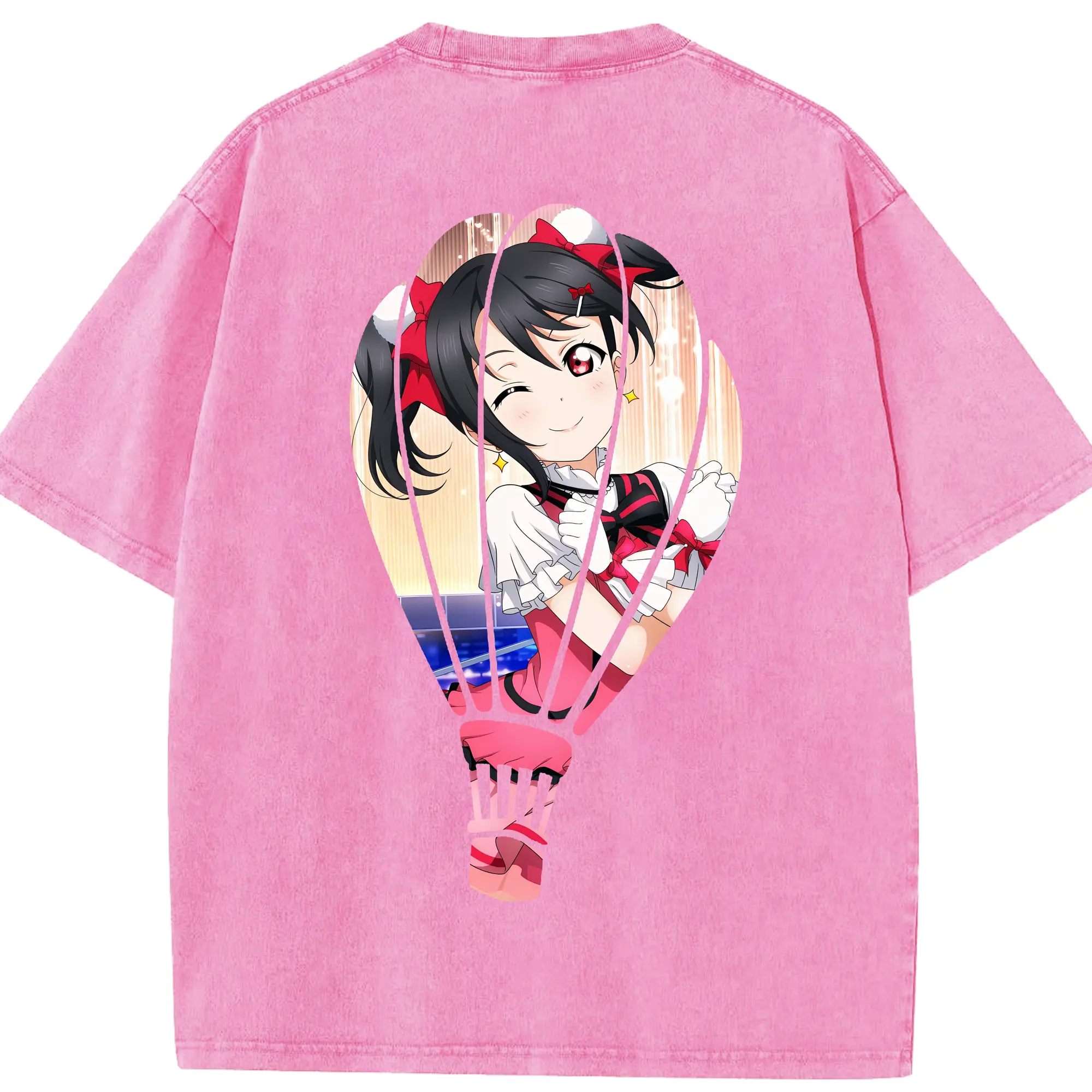 Love Live! グッズ,矢澤にこ - 綿100% ヴィンテージ風 半袖Tシャツ ・ フロントプリント ・ 柔らか肌触り ・ 通気性 快適 ・ スポーツ カジュアル 外出用