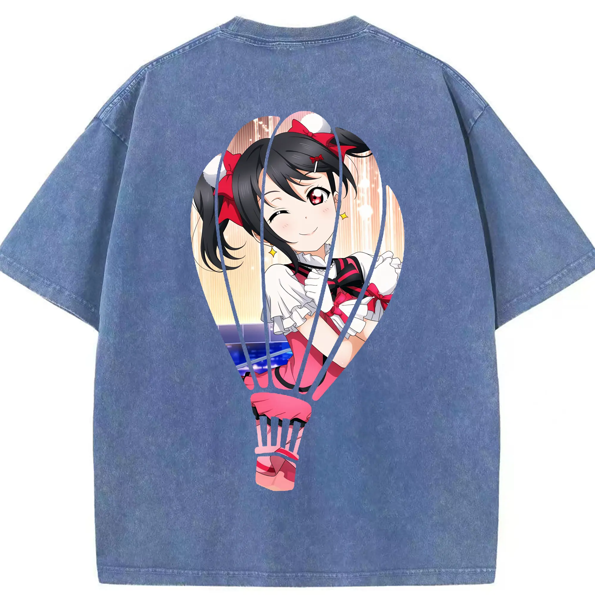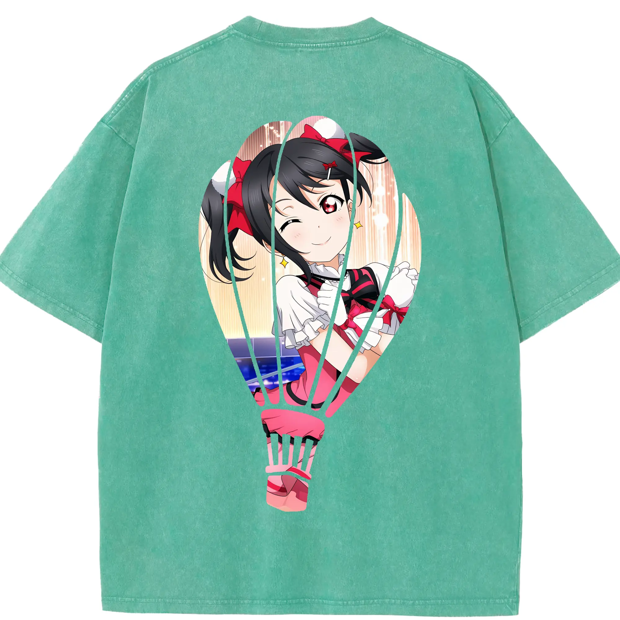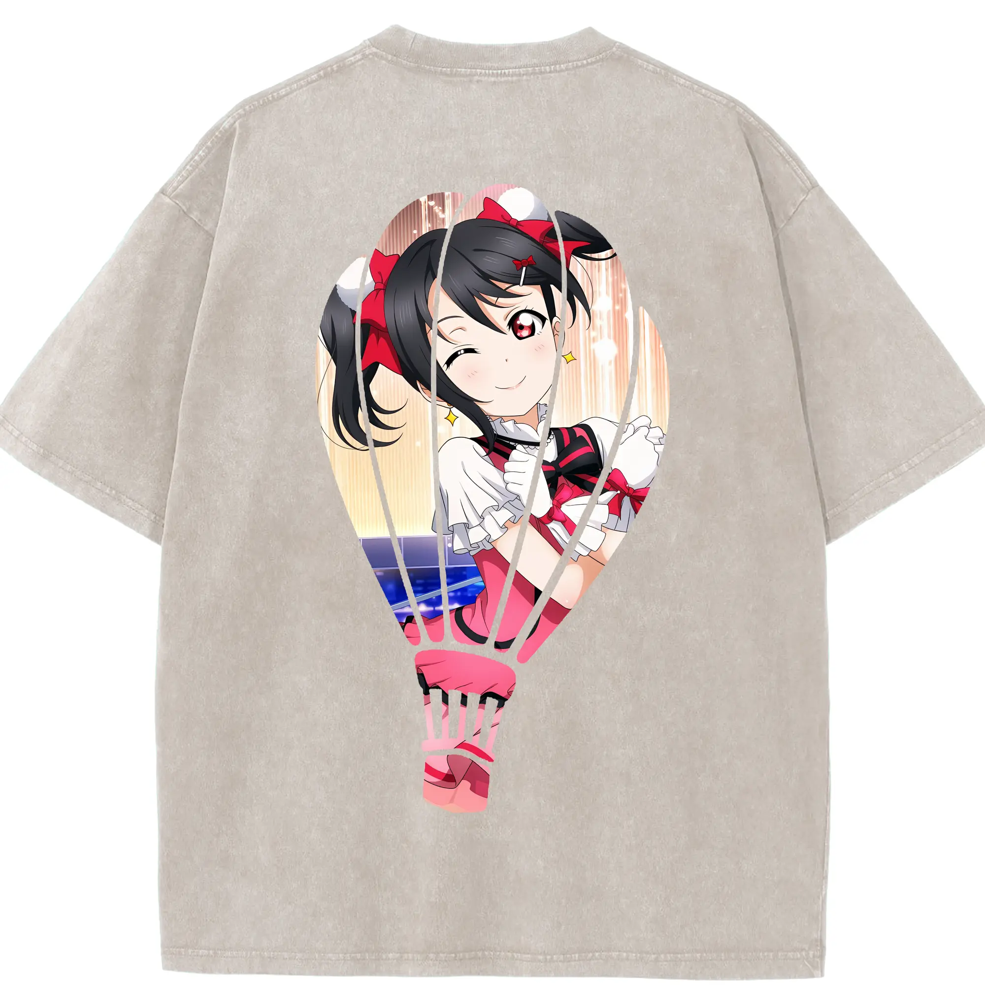 Love Live! グッズ,矢澤にこ - 綿100% ヴィンテージ風 半袖Tシャツ ・ フロントプリント ・ 柔らか肌触り ・ 通気性 快適 ・ スポーツ カジュアル 外出用