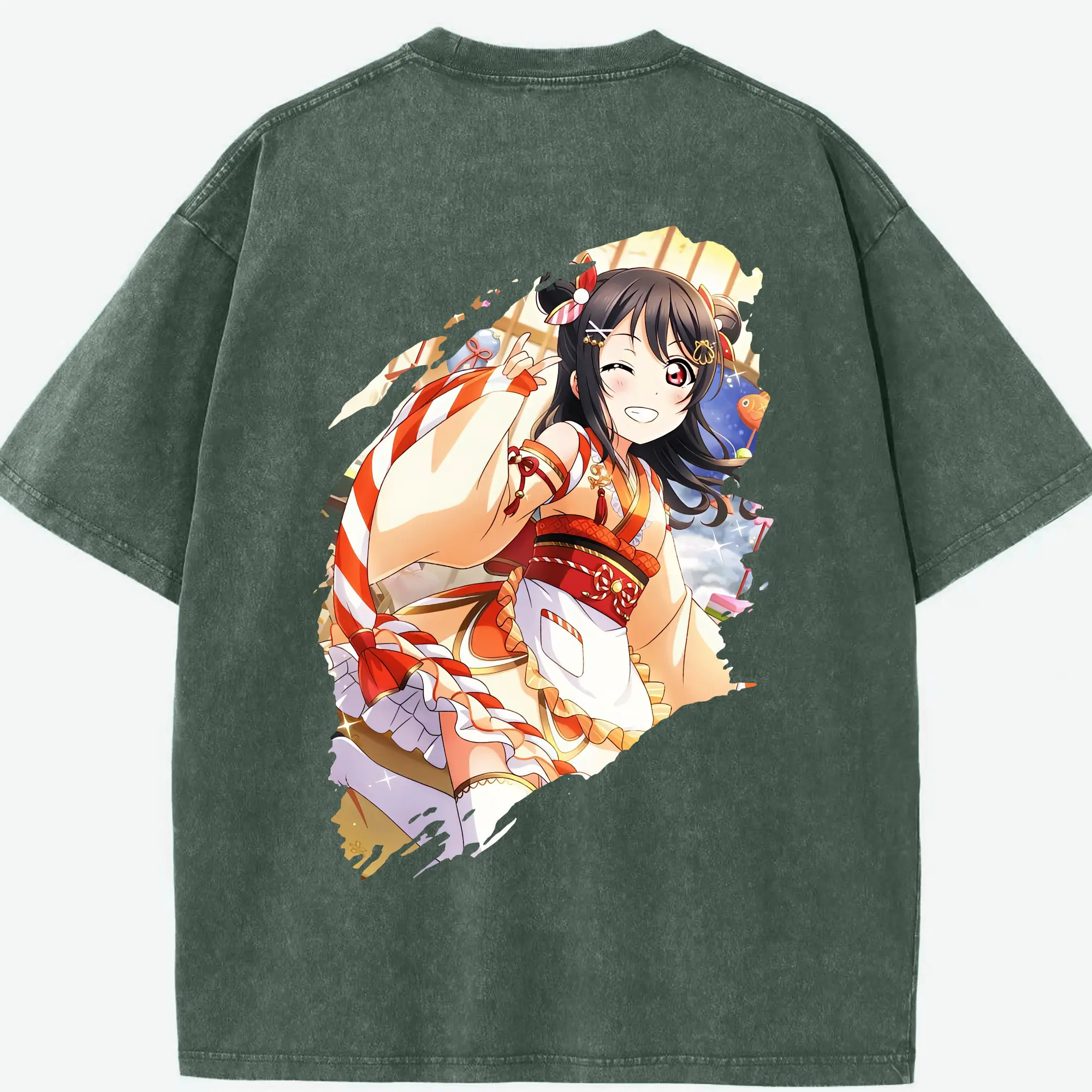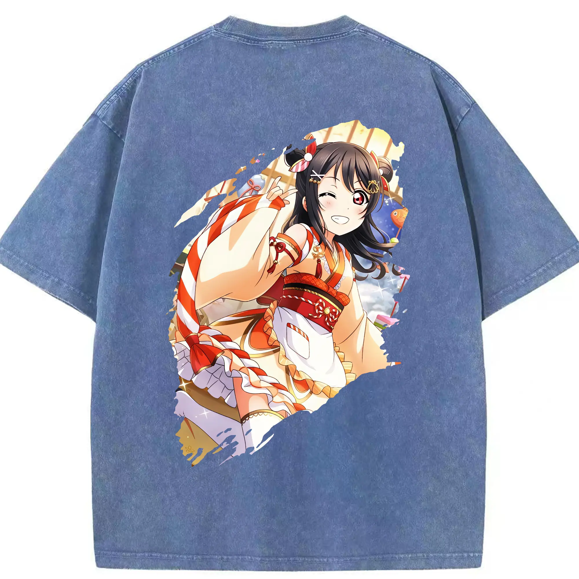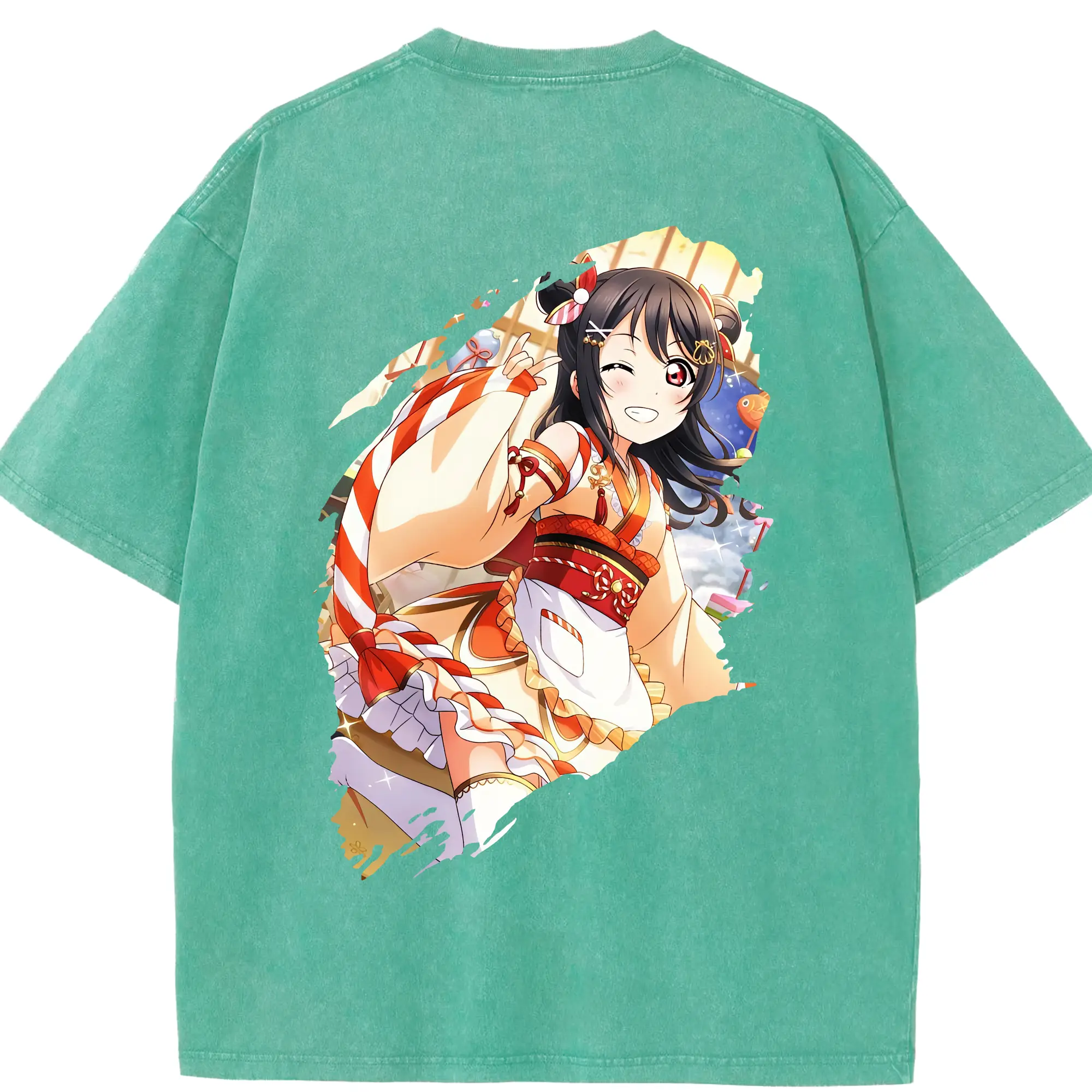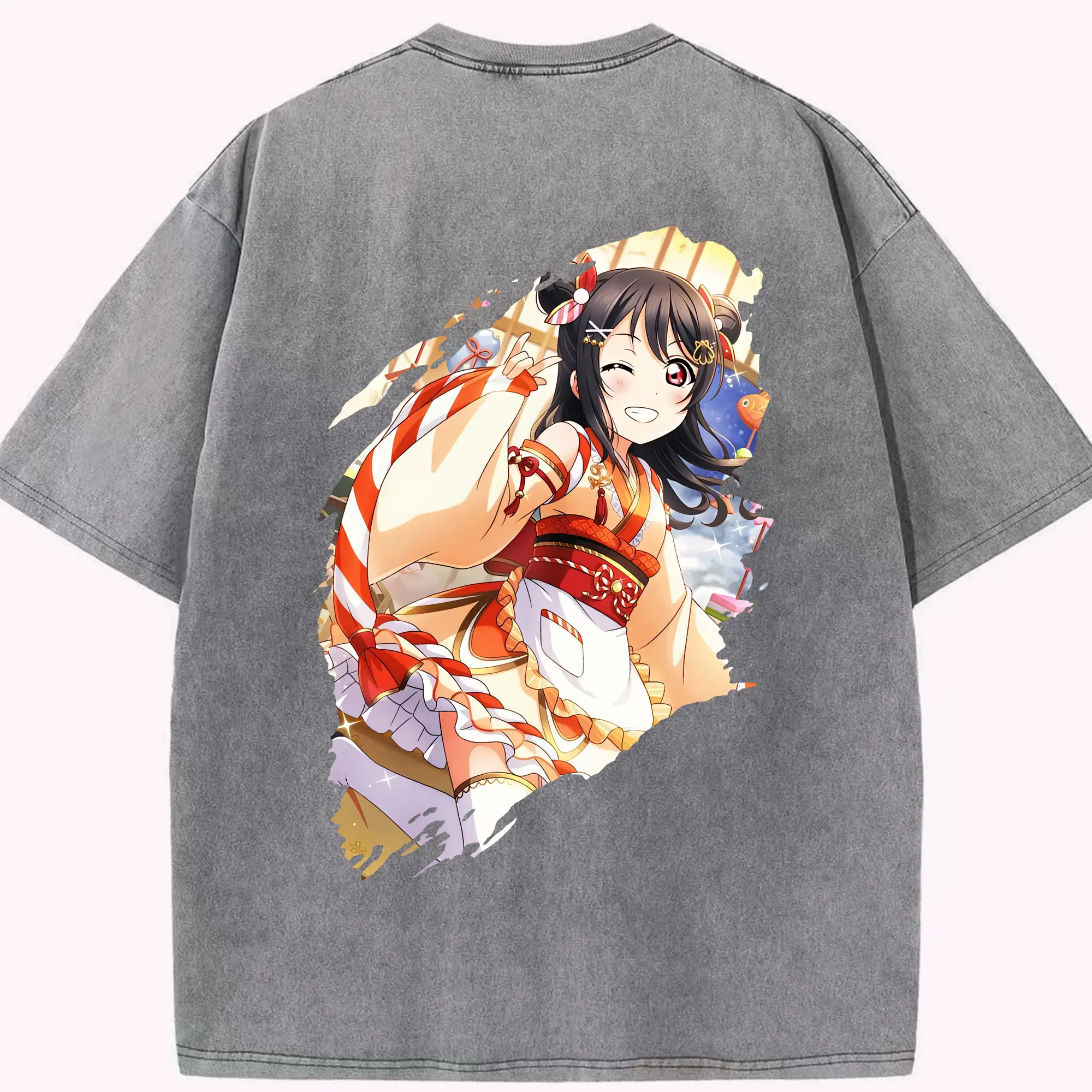Love Live! グッズ,矢澤にこ - 綿100% ヴィンテージ風 半袖Tシャツ ・ フロントプリント ・ 柔らか肌触り ・ 通気性 快適 ・ スポーツ カジュアル 外出用