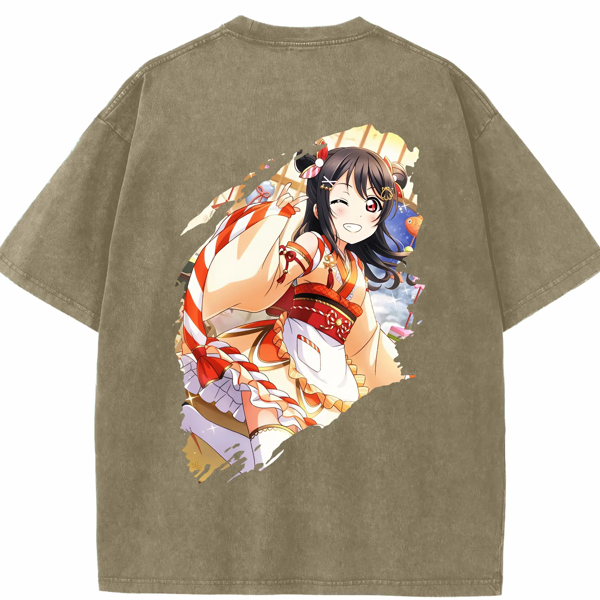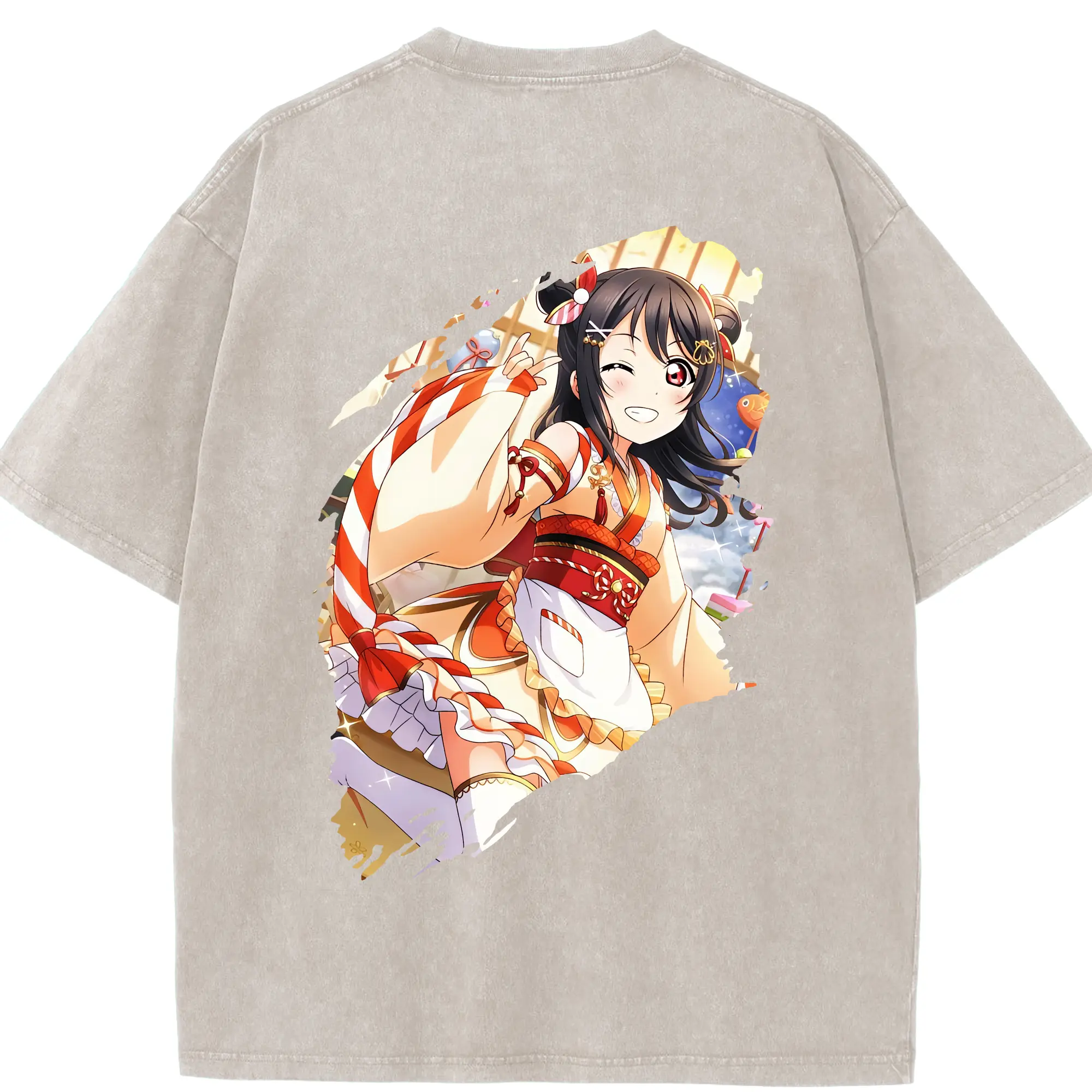 アイカツ グッズ 一ノ瀬 かえで - 綿100% ヴィンテージ風 半袖Tシャツ ・ 背面プリント ・ 柔らか肌触り ・ 通気性 快適 ・ スポーツ カジュアル 外出用