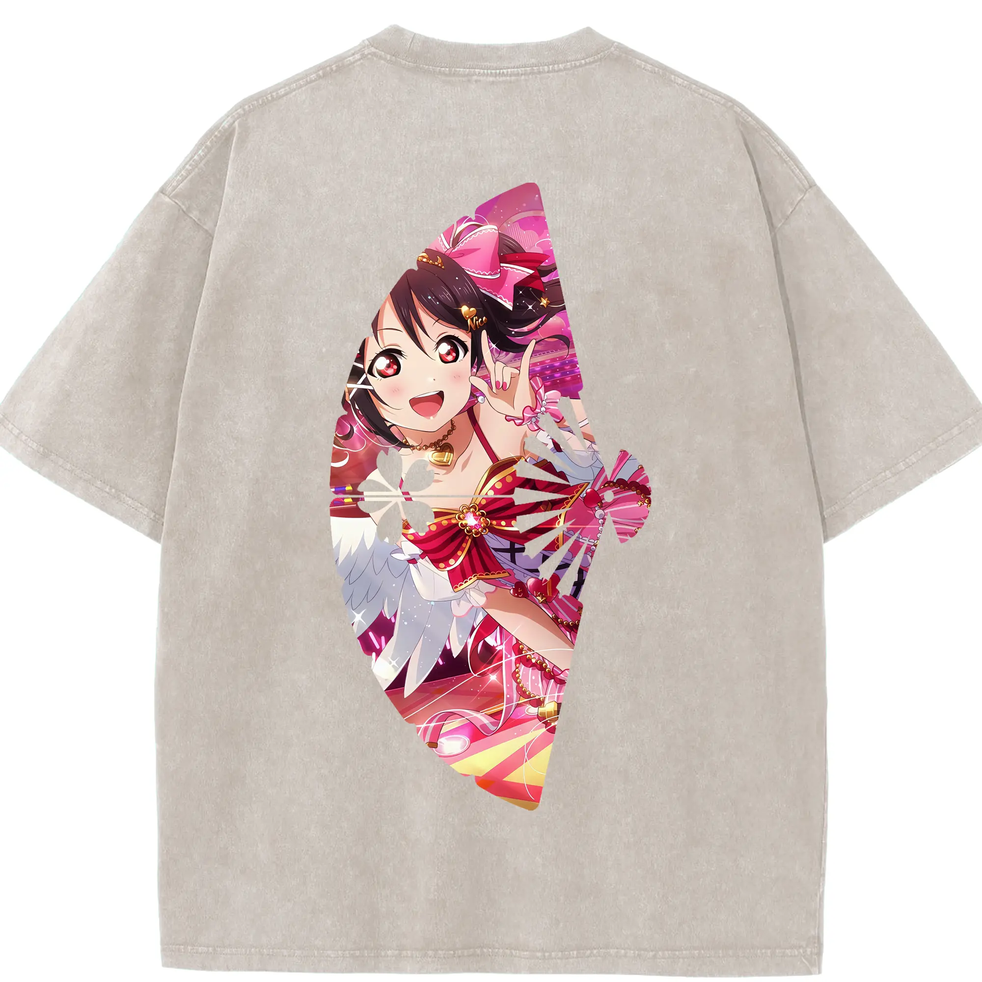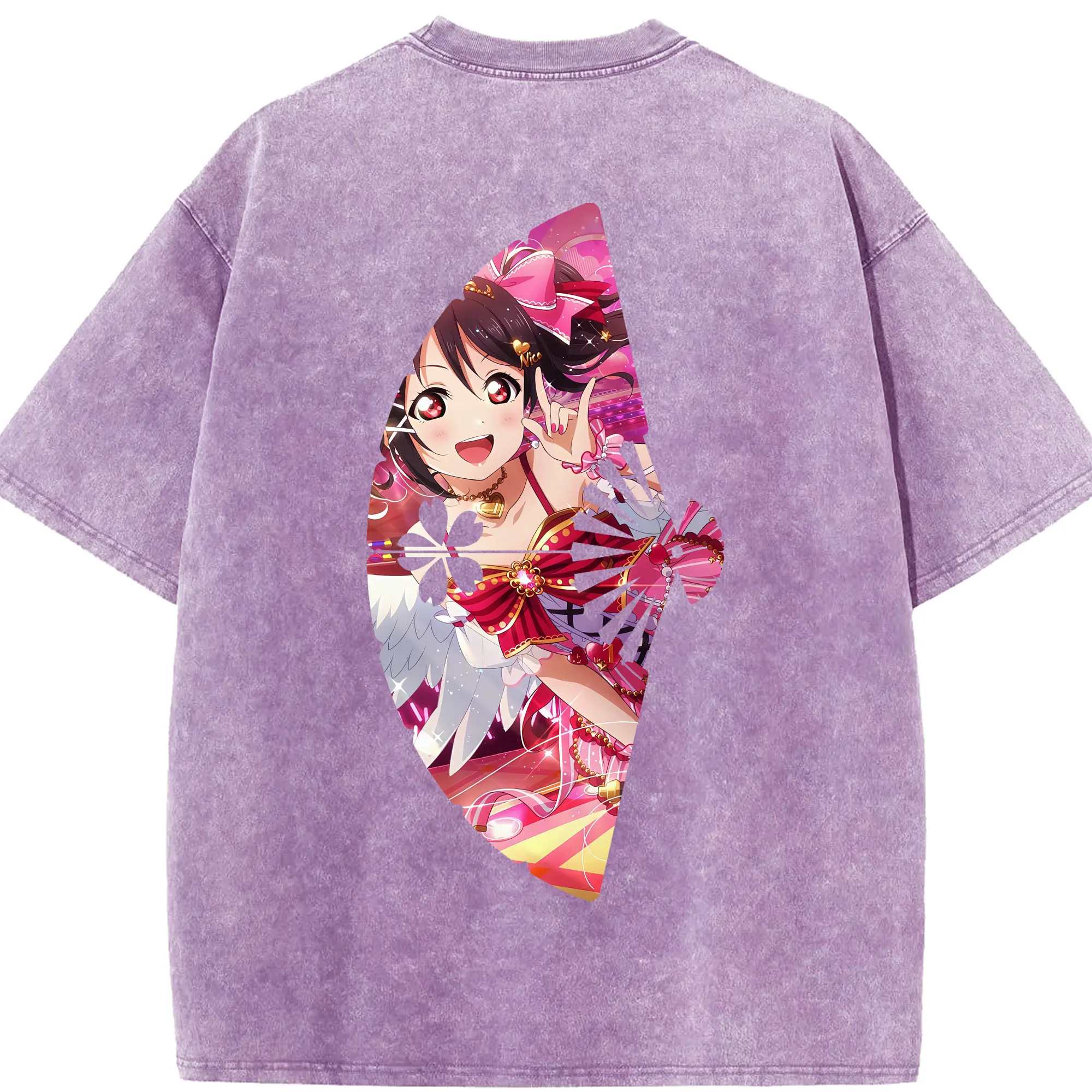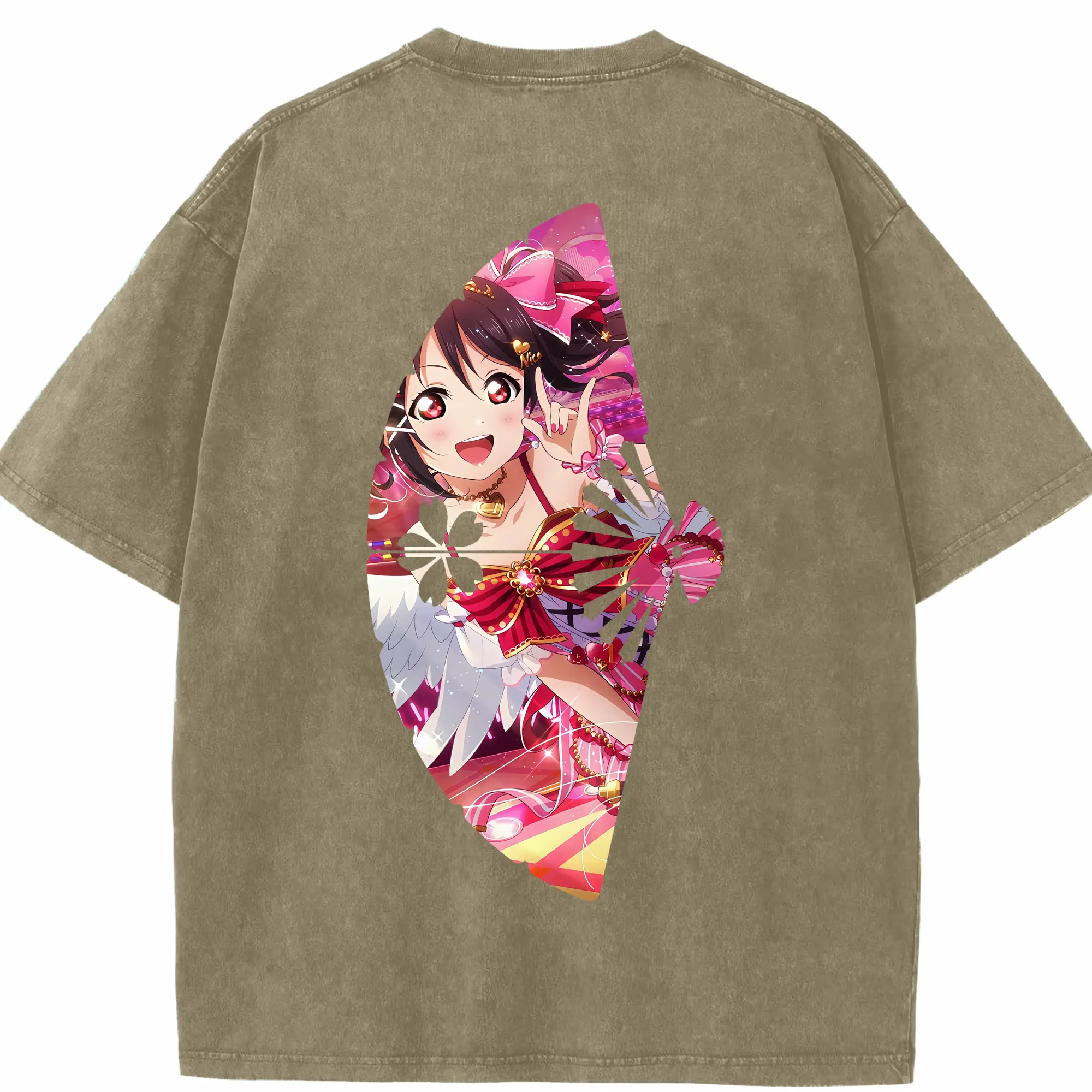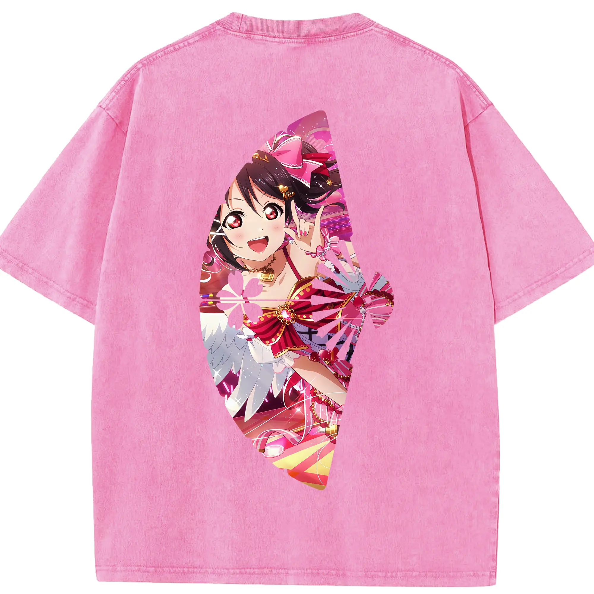 Love Live! グッズ,矢澤にこ - 綿100% ヴィンテージ風 半袖Tシャツ ・ フロントプリント ・ 柔らか肌触り ・ 通気性 快適 ・ スポーツ カジュアル 外出用