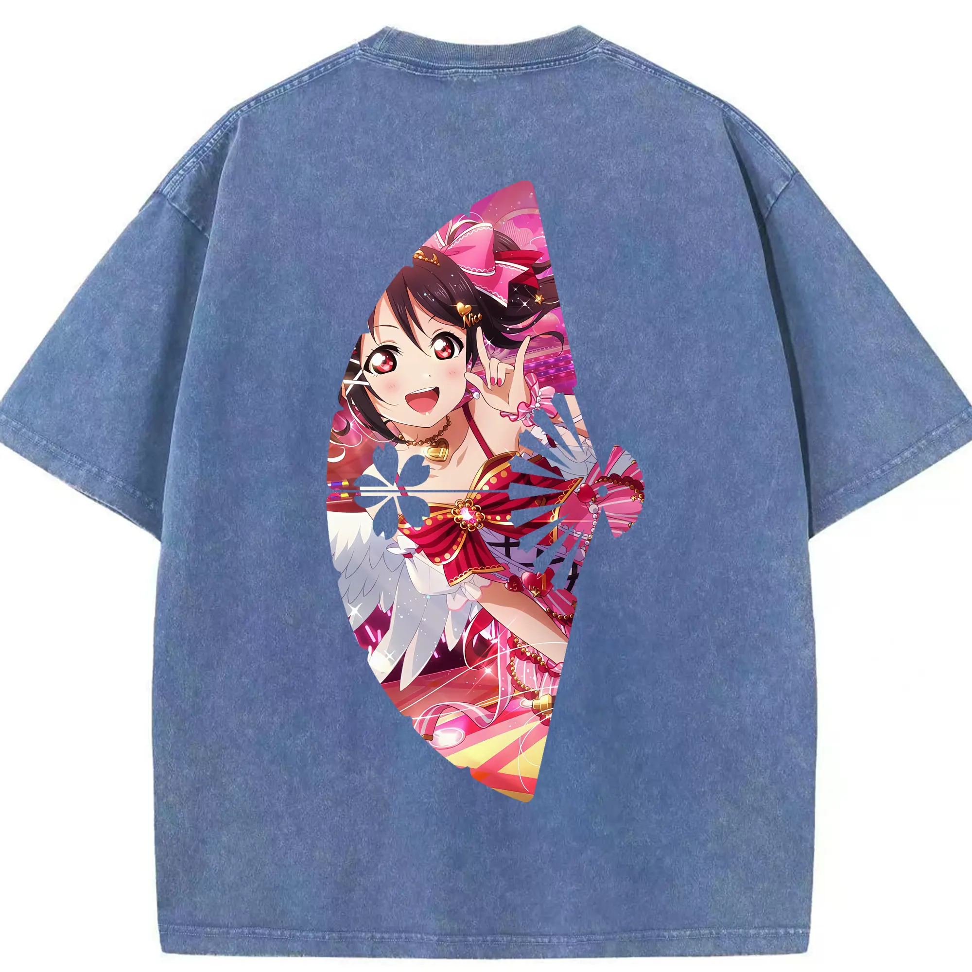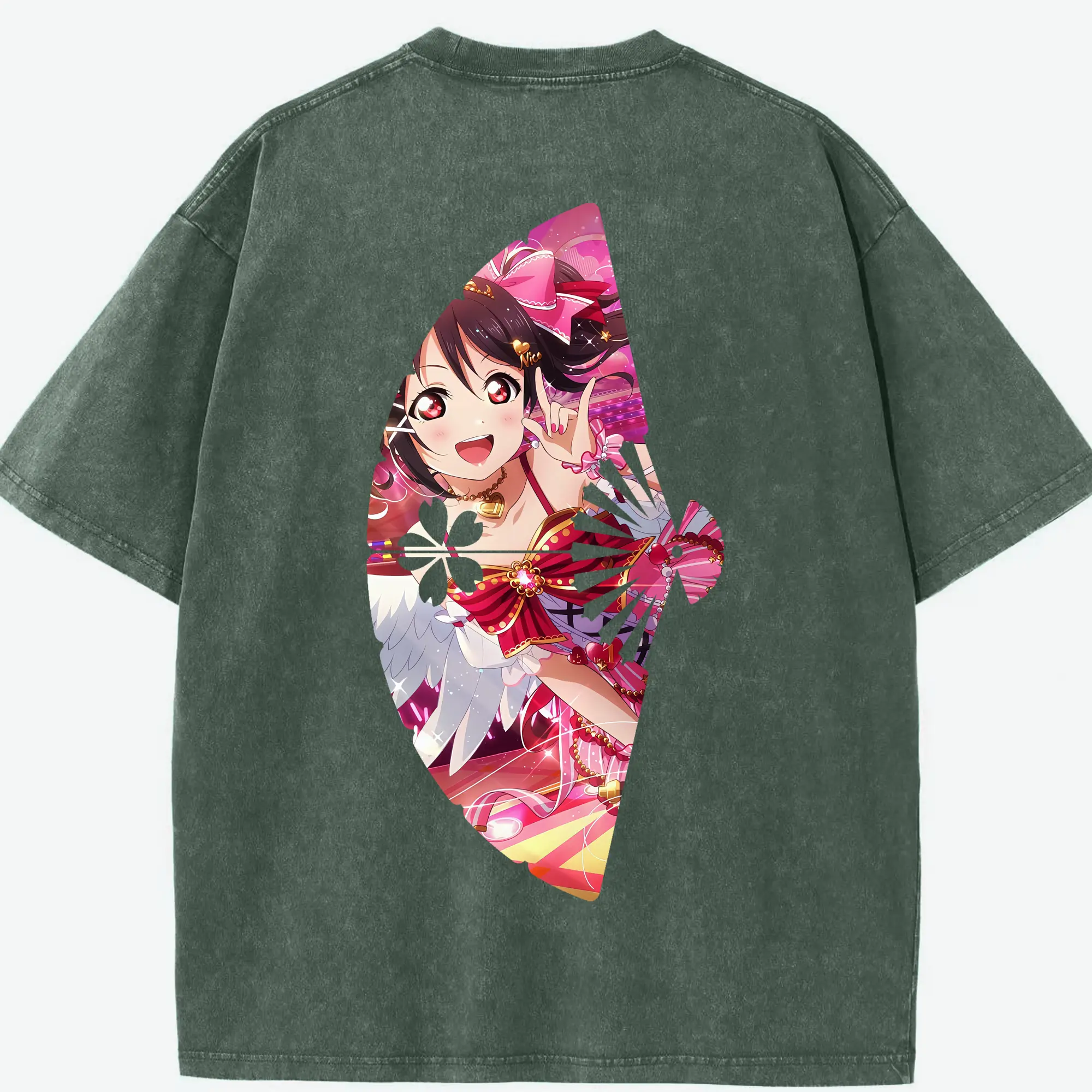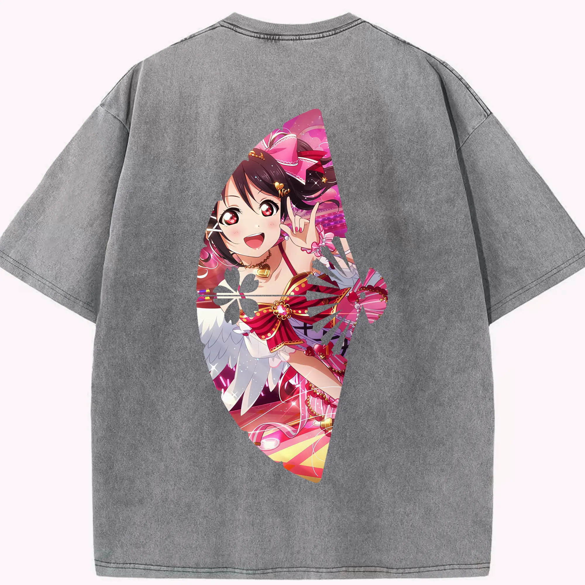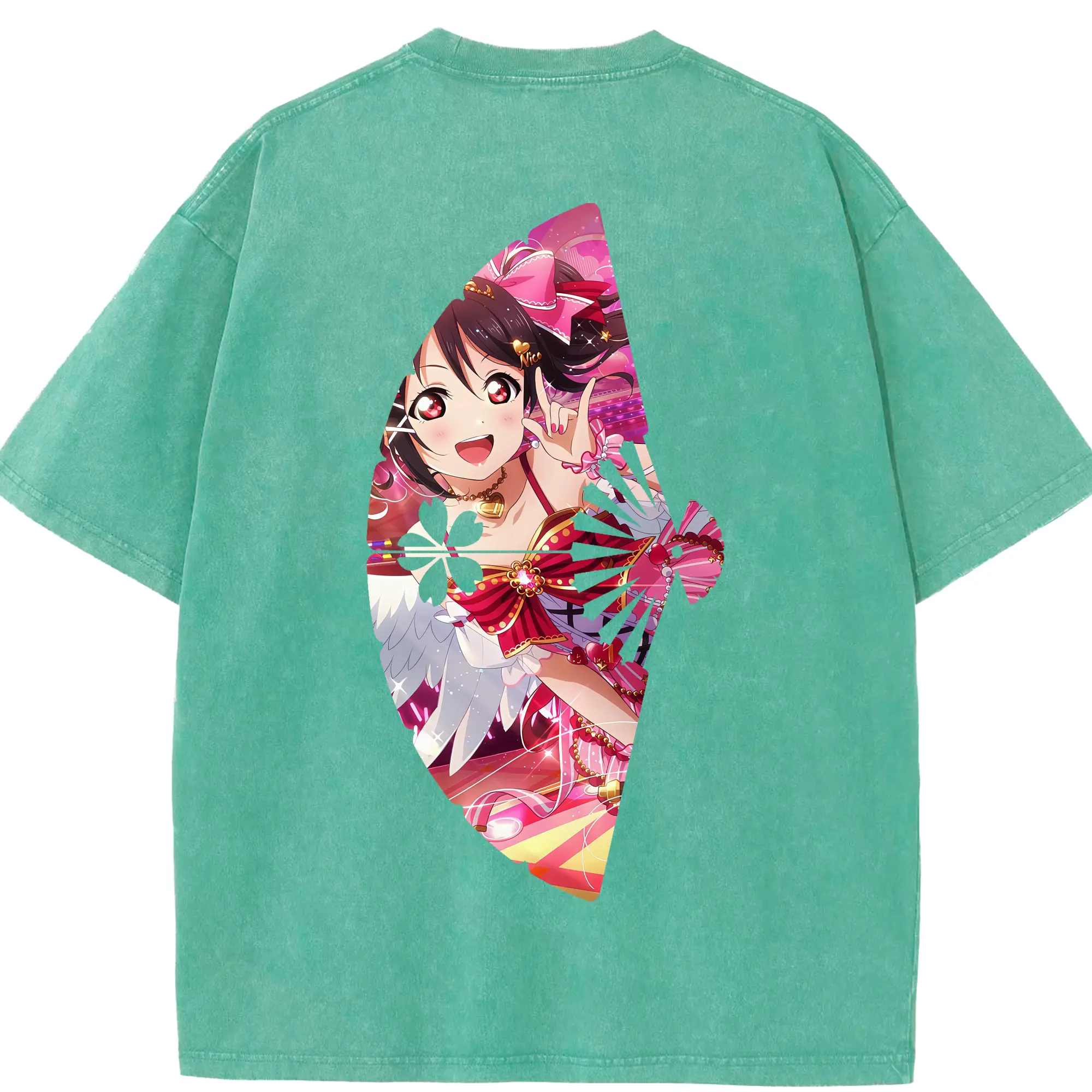 Love Live! グッズ,矢澤にこ - 綿100% ヴィンテージ風 半袖Tシャツ ・ フロントプリント ・ 柔らか肌触り ・ 通気性 快適 ・ スポーツ カジュアル 外出用