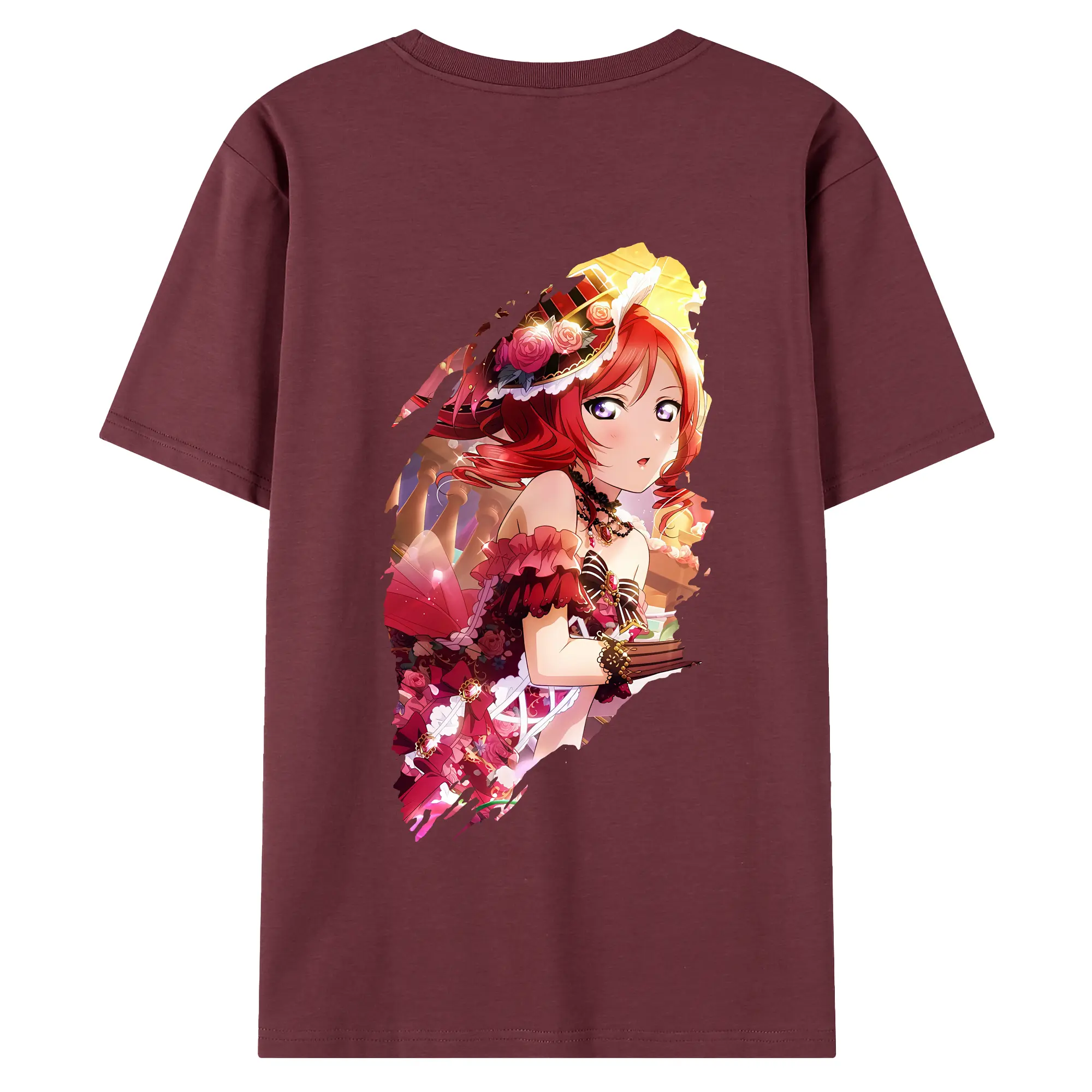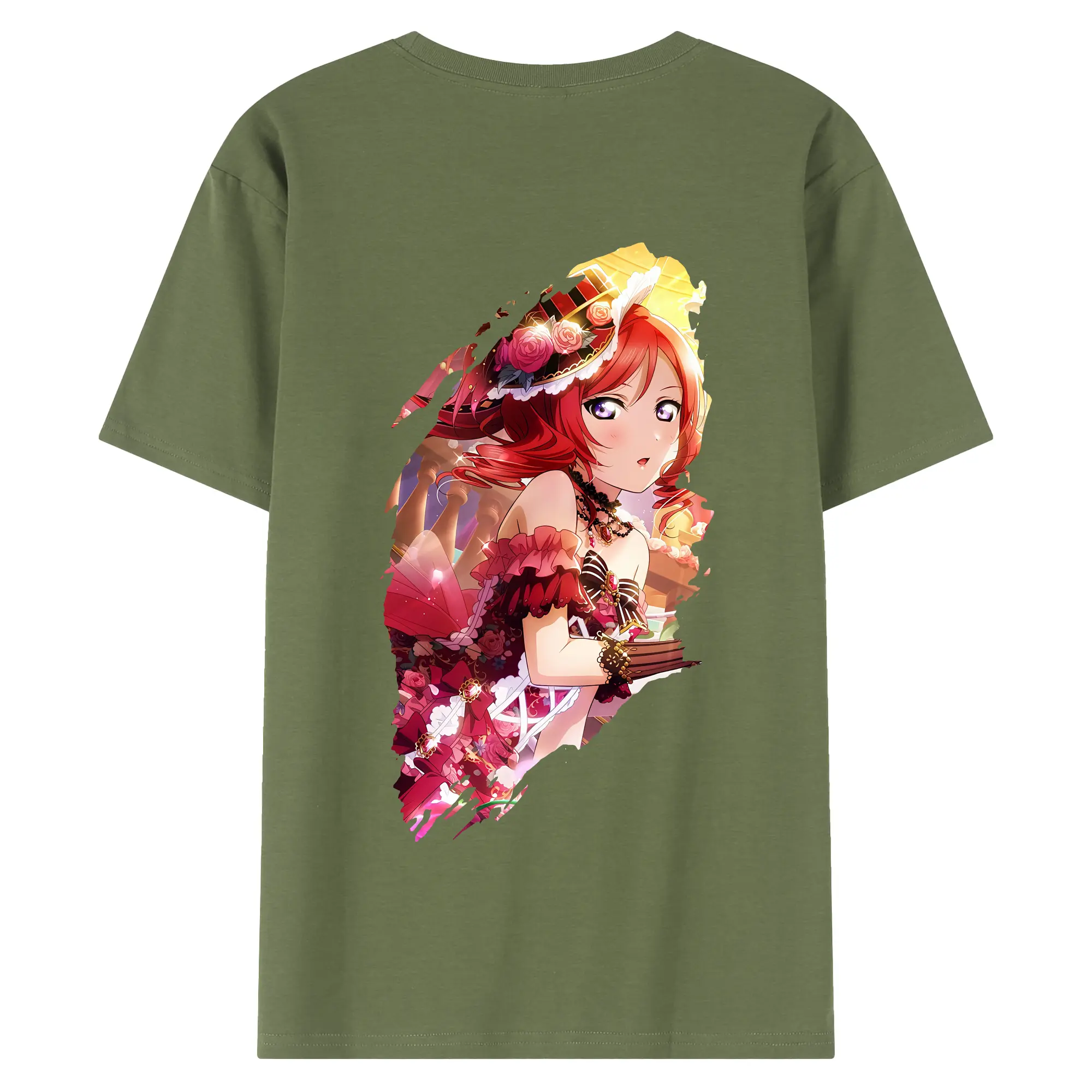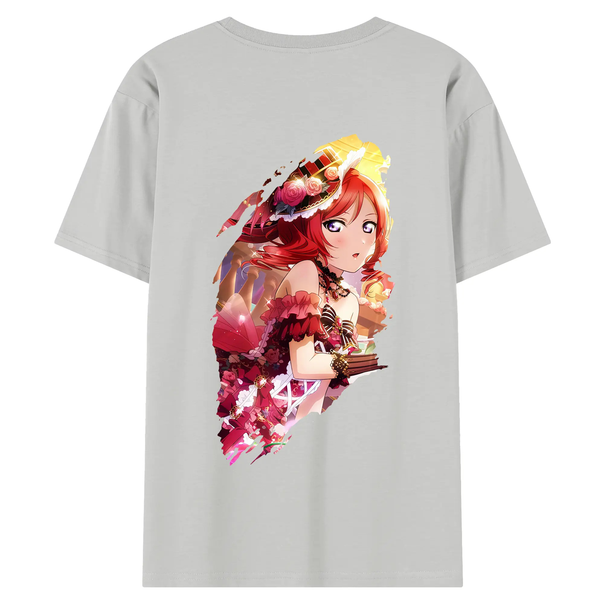 Love Live! グッズ,西木野真姫 - 綿100% ヴィンテージ風 半袖Tシャツ ・ 背面プリント ・ 柔らか肌触り ・ 通気性 快適 ・ スポーツ カジュアル 外出用