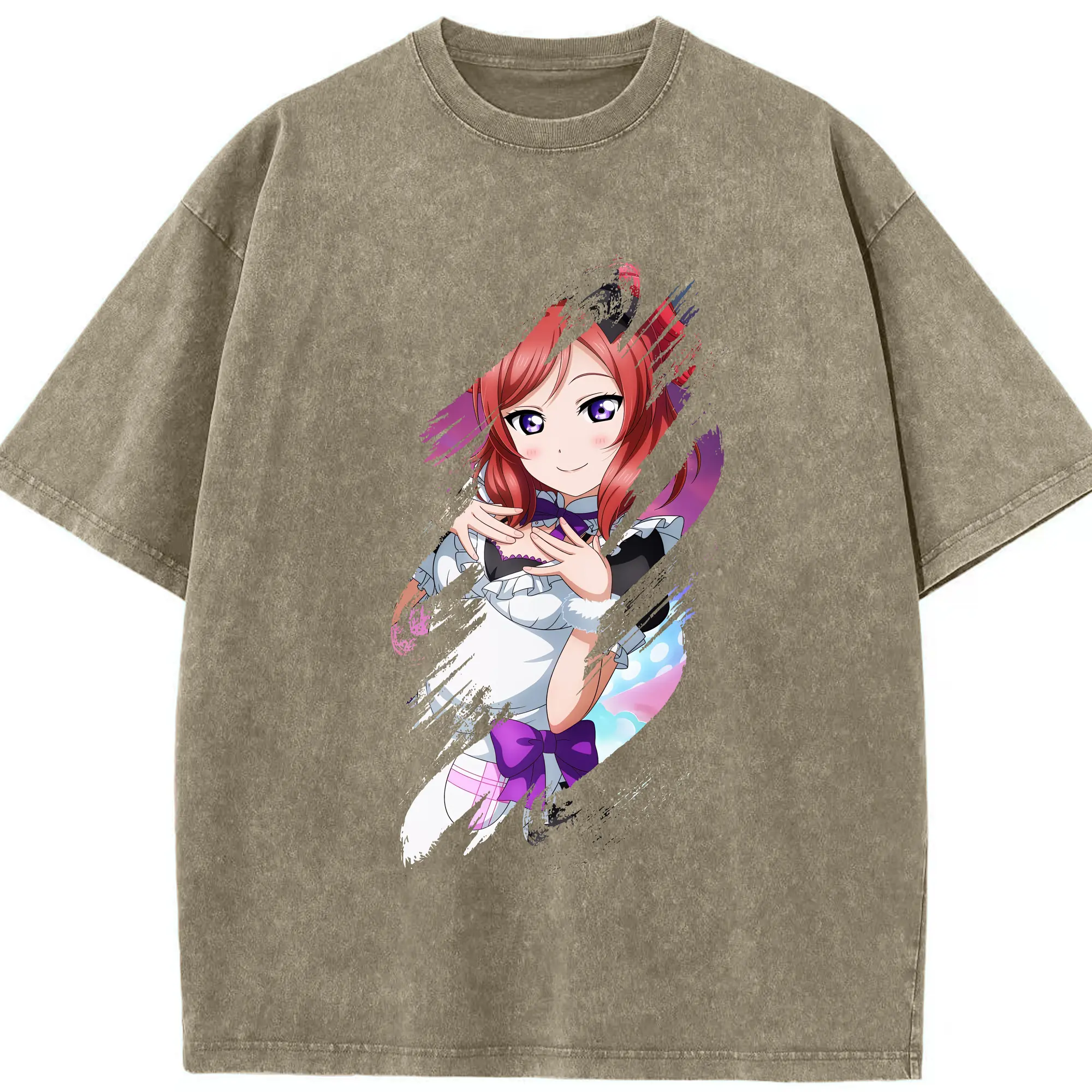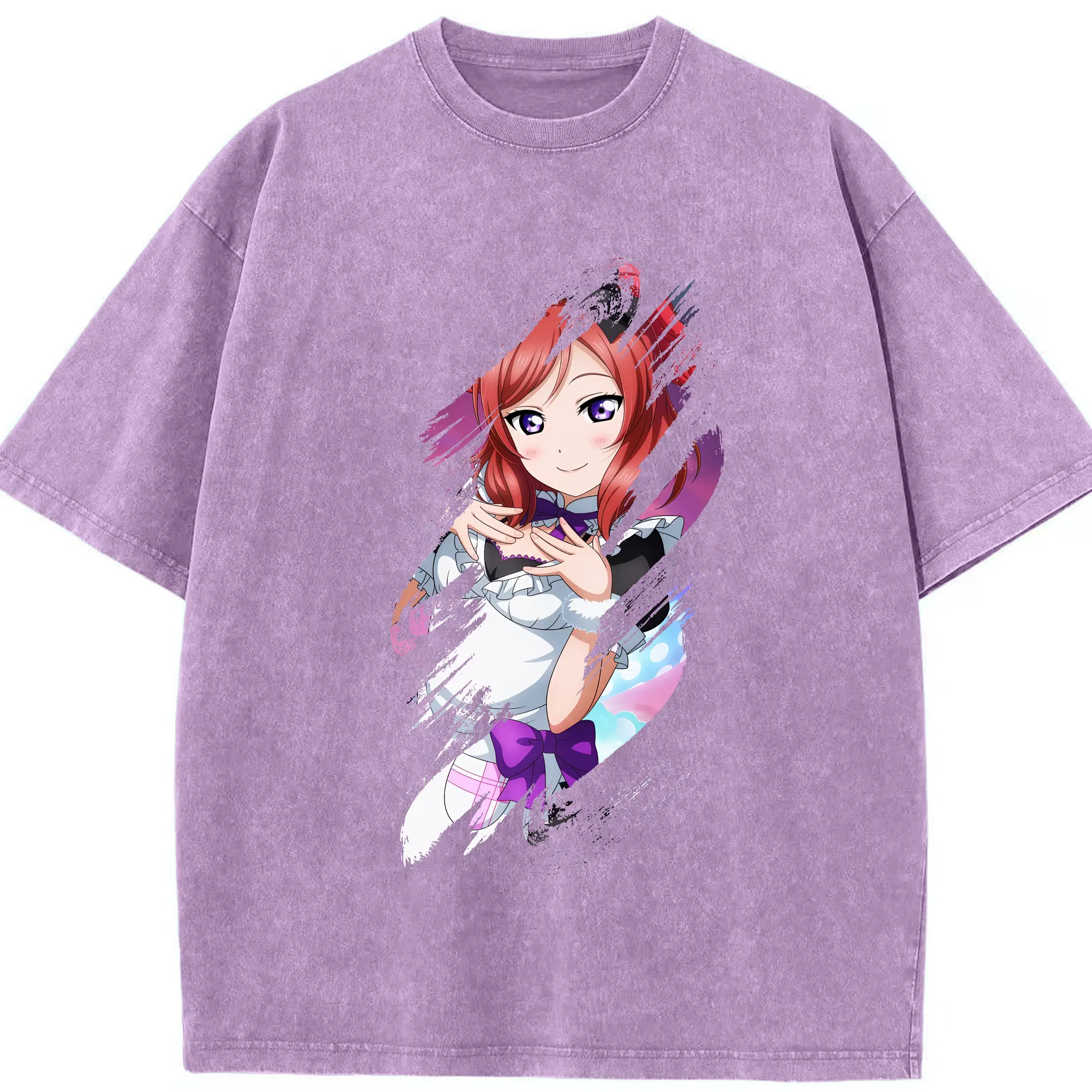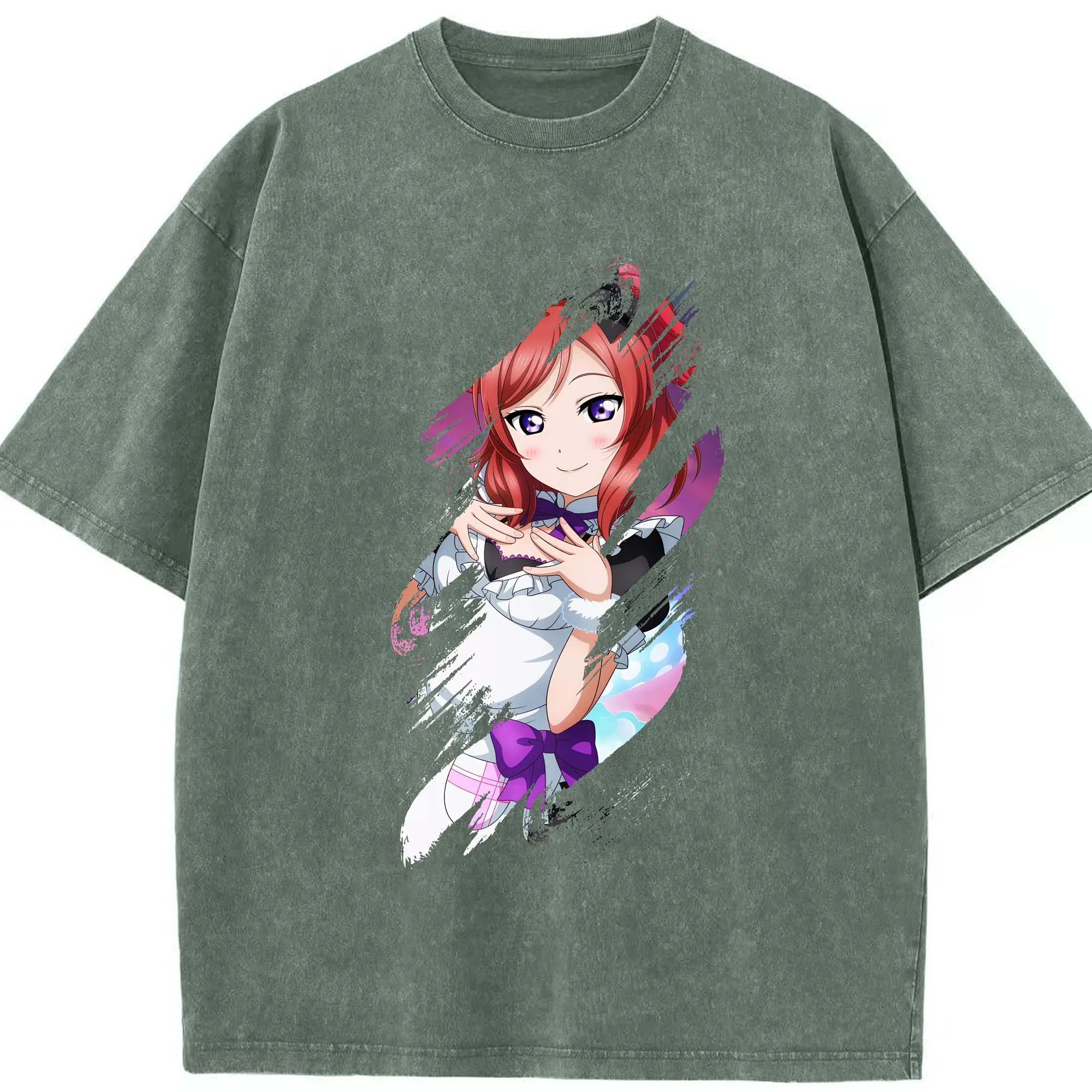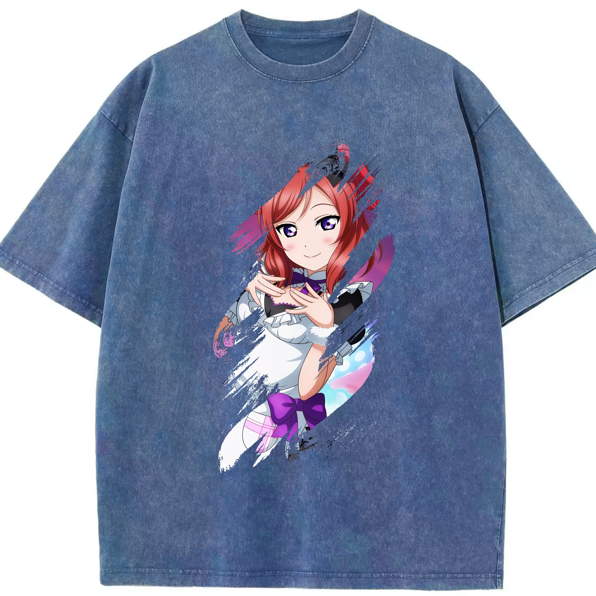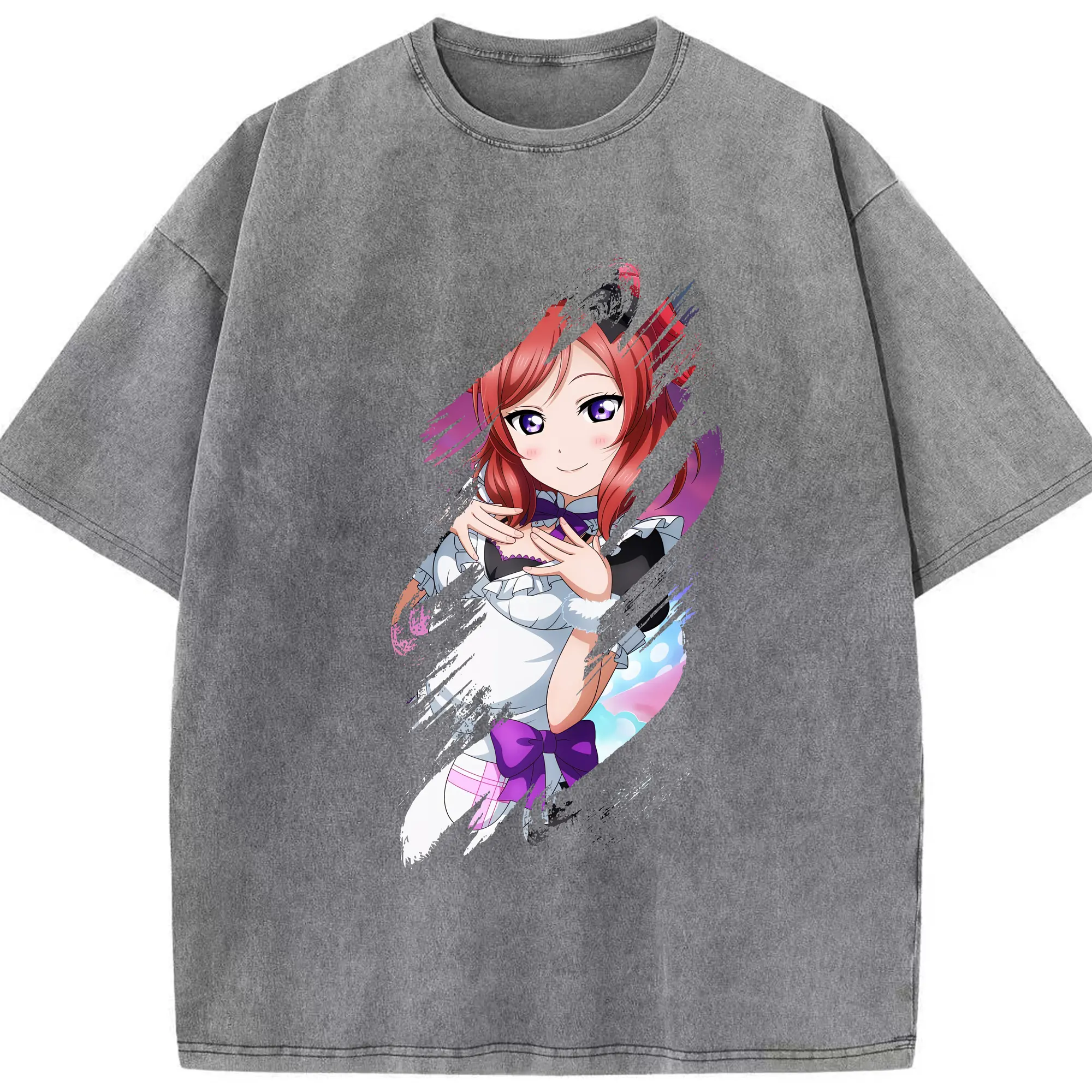 Love Live! グッズ,西木野真姫 - 綿100% ヴィンテージ風 半袖Tシャツ ・ 背面プリント ・ 柔らか肌触り ・ 通気性 快適 ・ スポーツ カジュアル 外出用