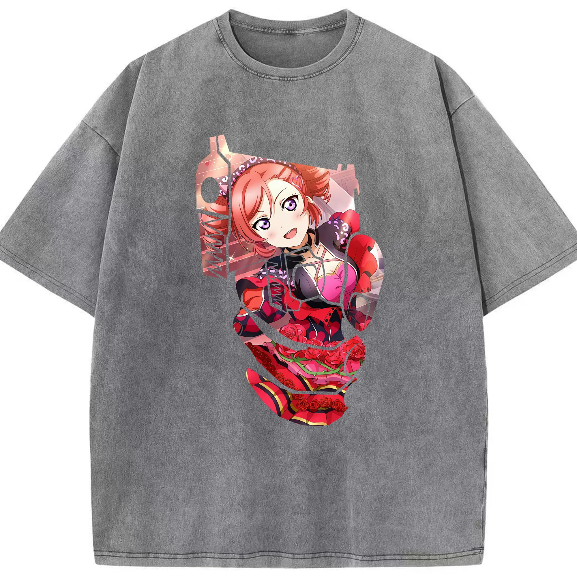 Love Live! グッズ,西木野真姫 - 綿100% ヴィンテージ風 半袖Tシャツ ・ 背面プリント ・ 柔らか肌触り ・ 通気性 快適 ・ スポーツ カジュアル 外出用