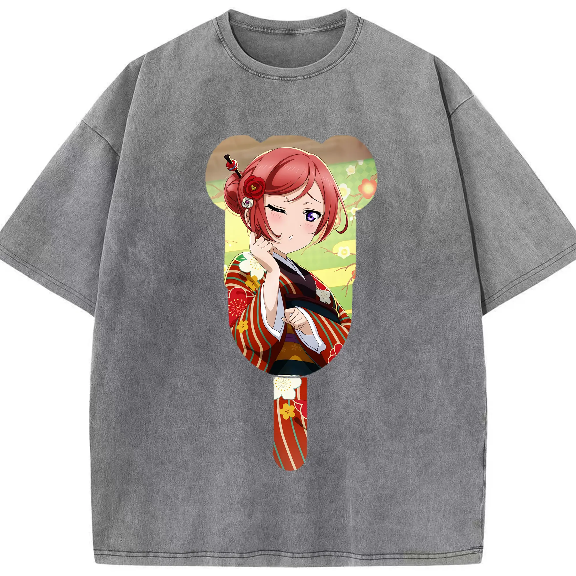 Love Live! グッズ,西木野真姫 - 綿100% ヴィンテージ風 半袖Tシャツ ・ 背面プリント ・ 柔らか肌触り ・ 通気性 快適 ・ スポーツ カジュアル 外出用