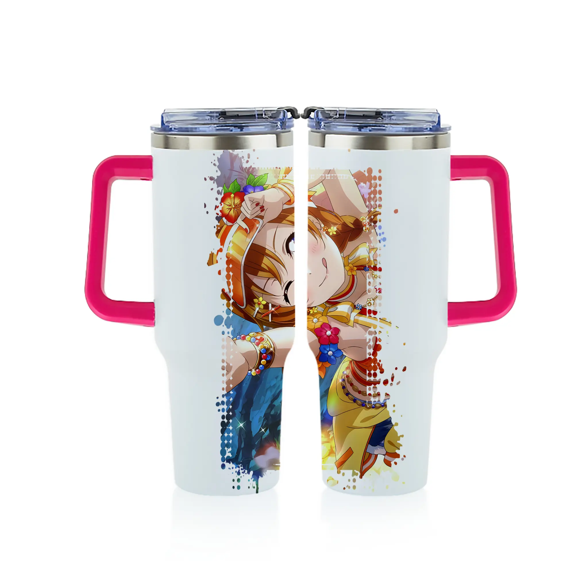 Love Live! グッズ,高坂穂乃果 - 1200mL フルプリント車用タンブラー ・ 304ステンレス 内側 ・ 201ステンレス 外側 ・ 保温 保冷 ・ 通勤 ドライブ アウトドア用