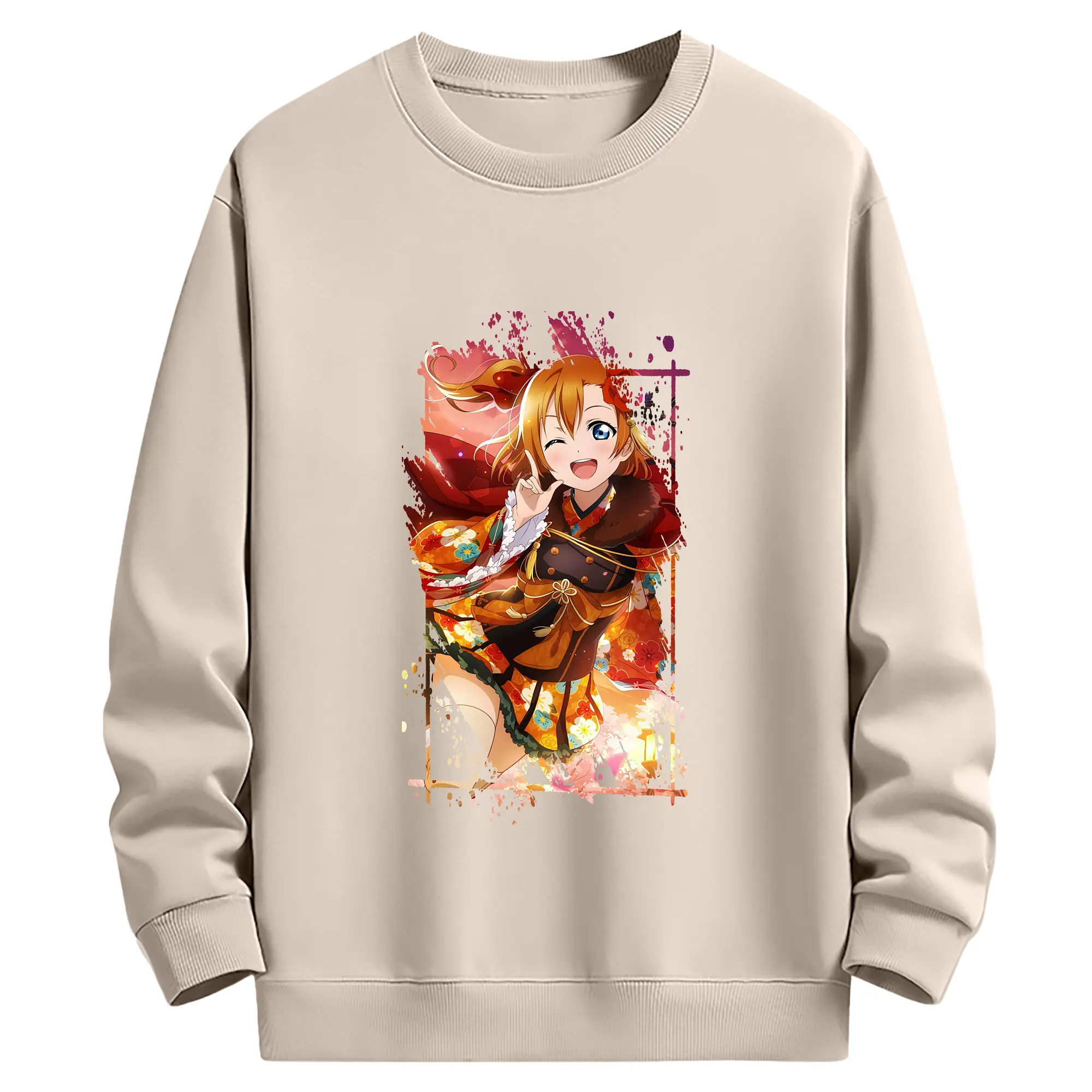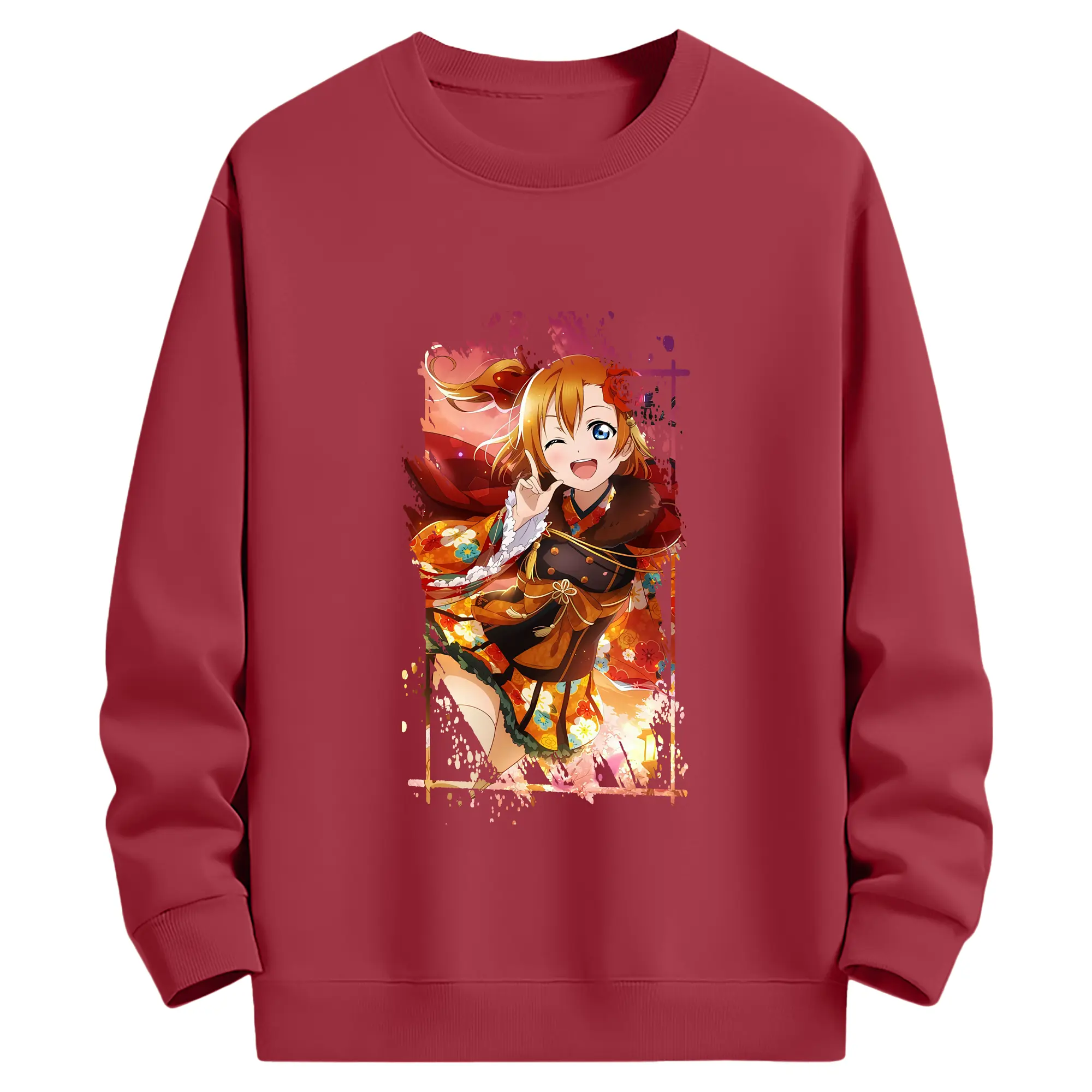Love Live! グッズ,高坂穂乃果 - 薄手 クルーネック スウェット 裏毛260g · ポリエステル 春秋向け カジュアル 男女兼用 · トレーナー デイリー スポーツ 散歩に最適