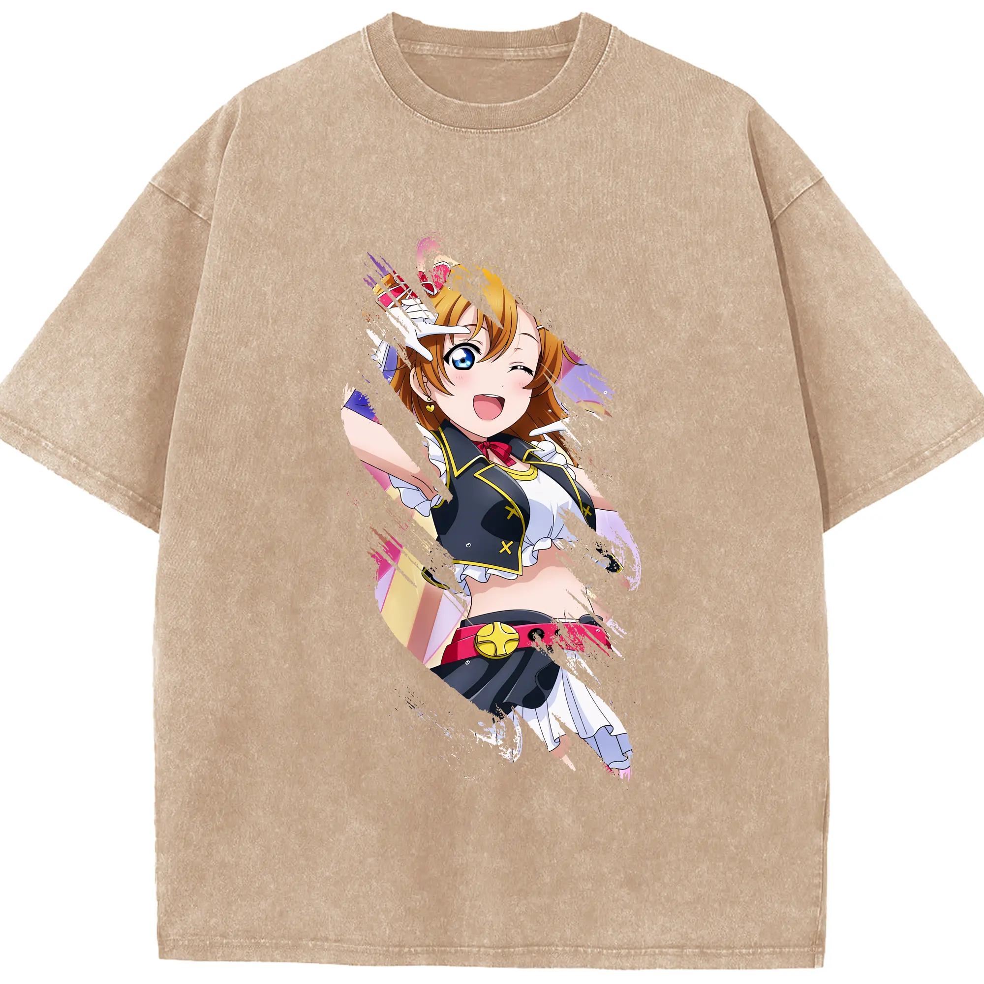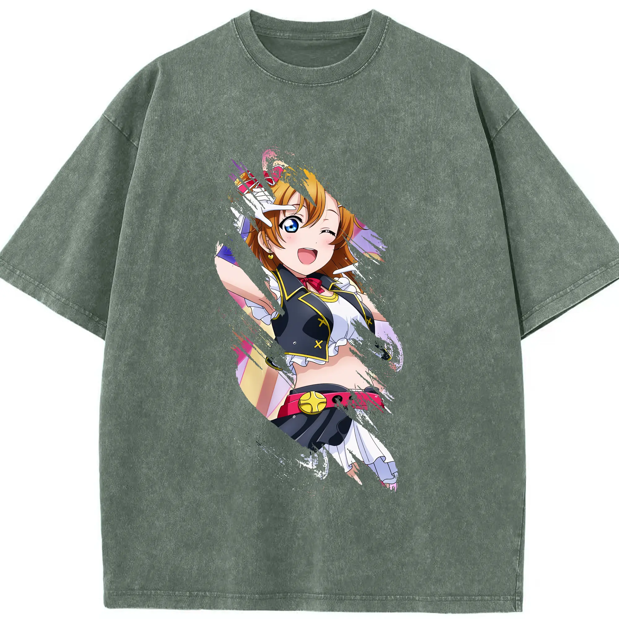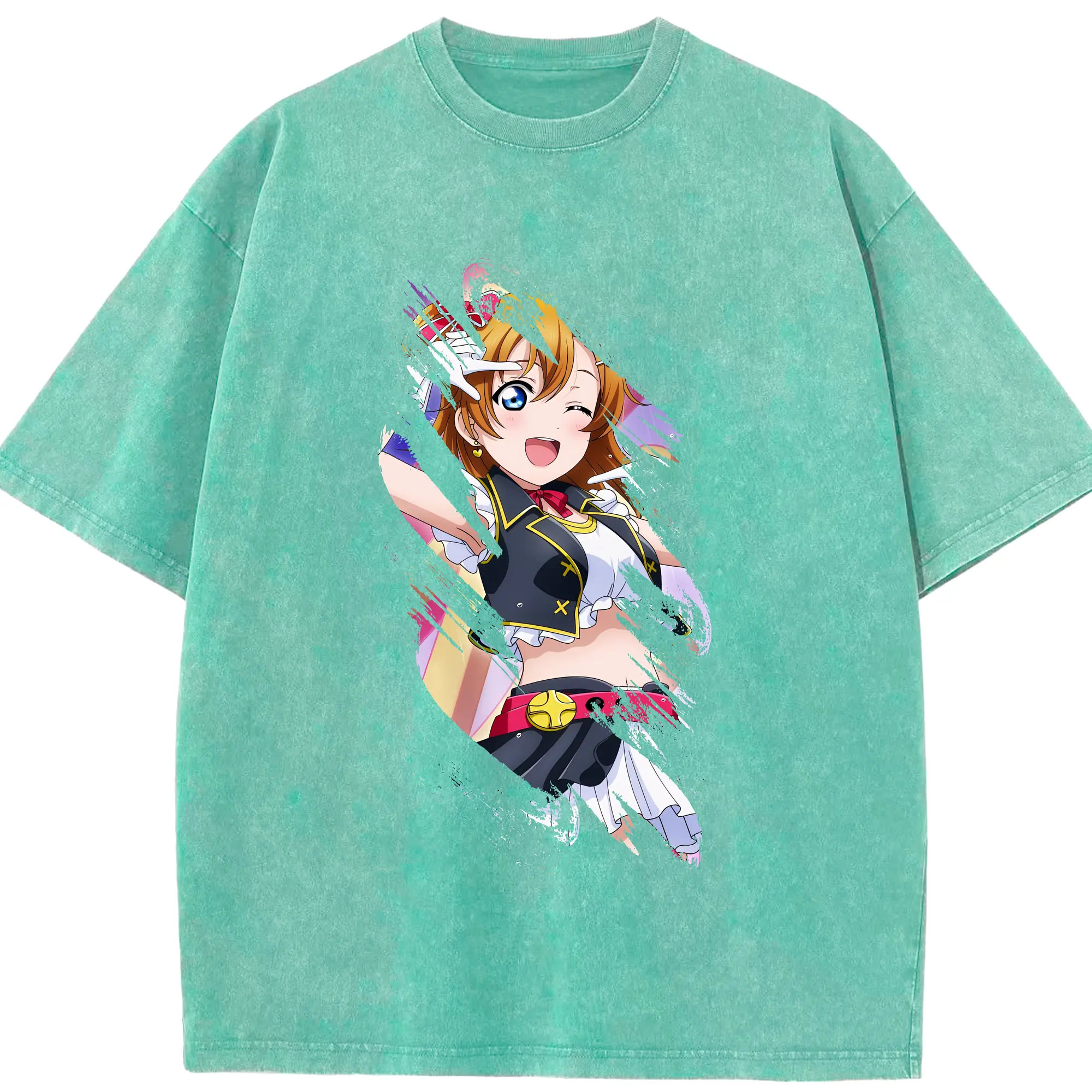 Love Live! グッズ,高坂穂乃果 - 綿100% ヴィンテージ風 半袖Tシャツ ・ 背面プリント ・ 柔らか肌触り ・ 通気性 快適 ・ スポーツ カジュアル 外出用
