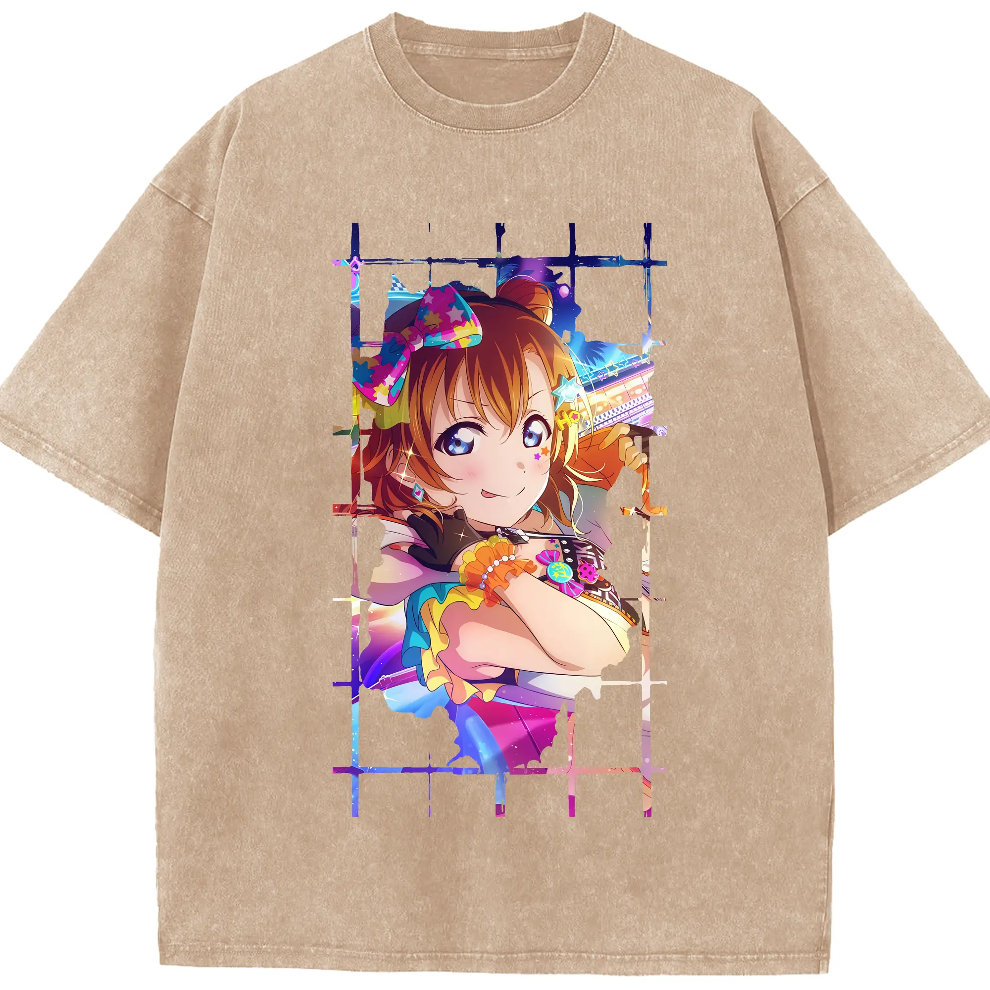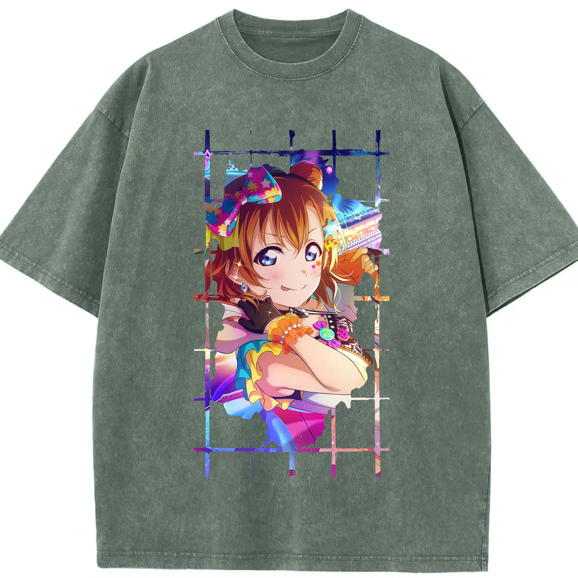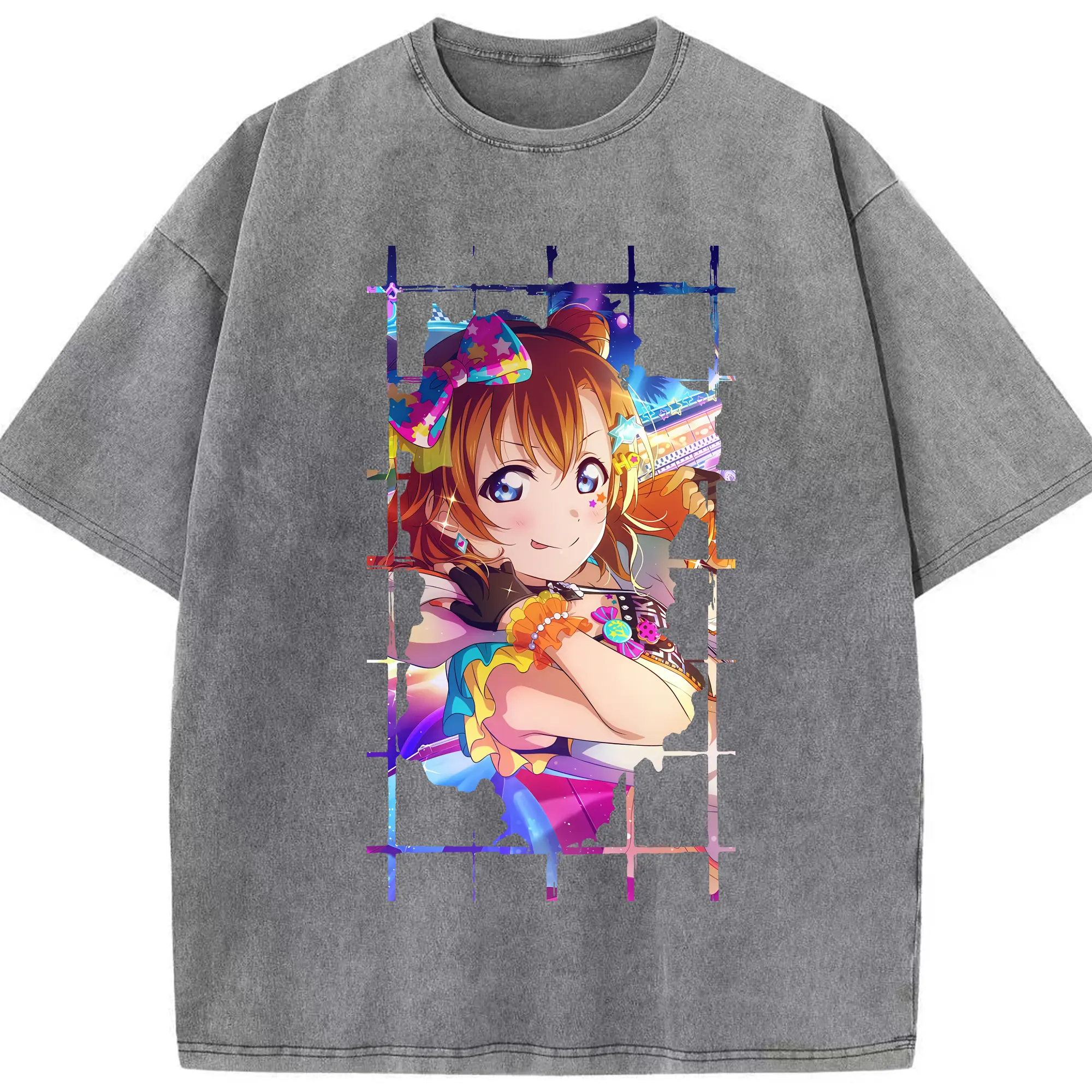 Love Live! グッズ,高坂穂乃果 - 綿100% ヴィンテージ風 半袖Tシャツ ・ 背面プリント ・ 柔らか肌触り ・ 通気性 快適 ・ スポーツ カジュアル 外出用