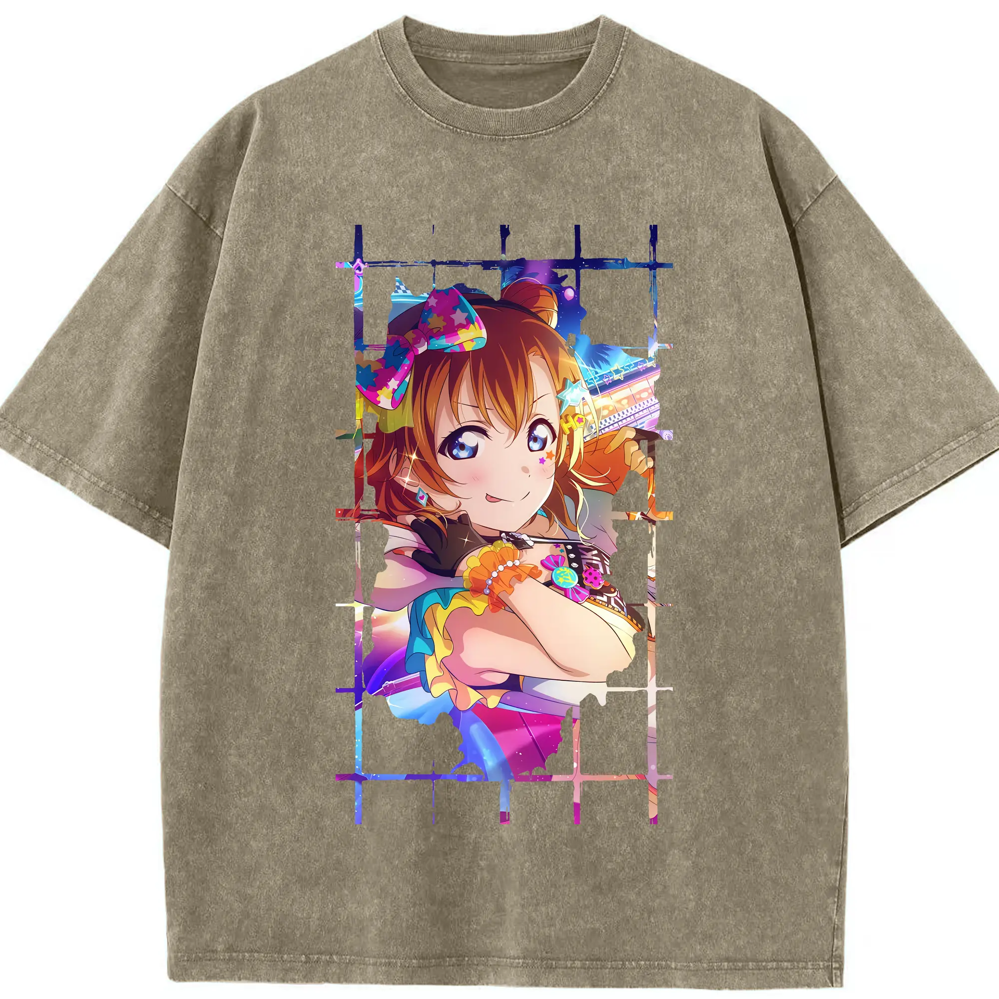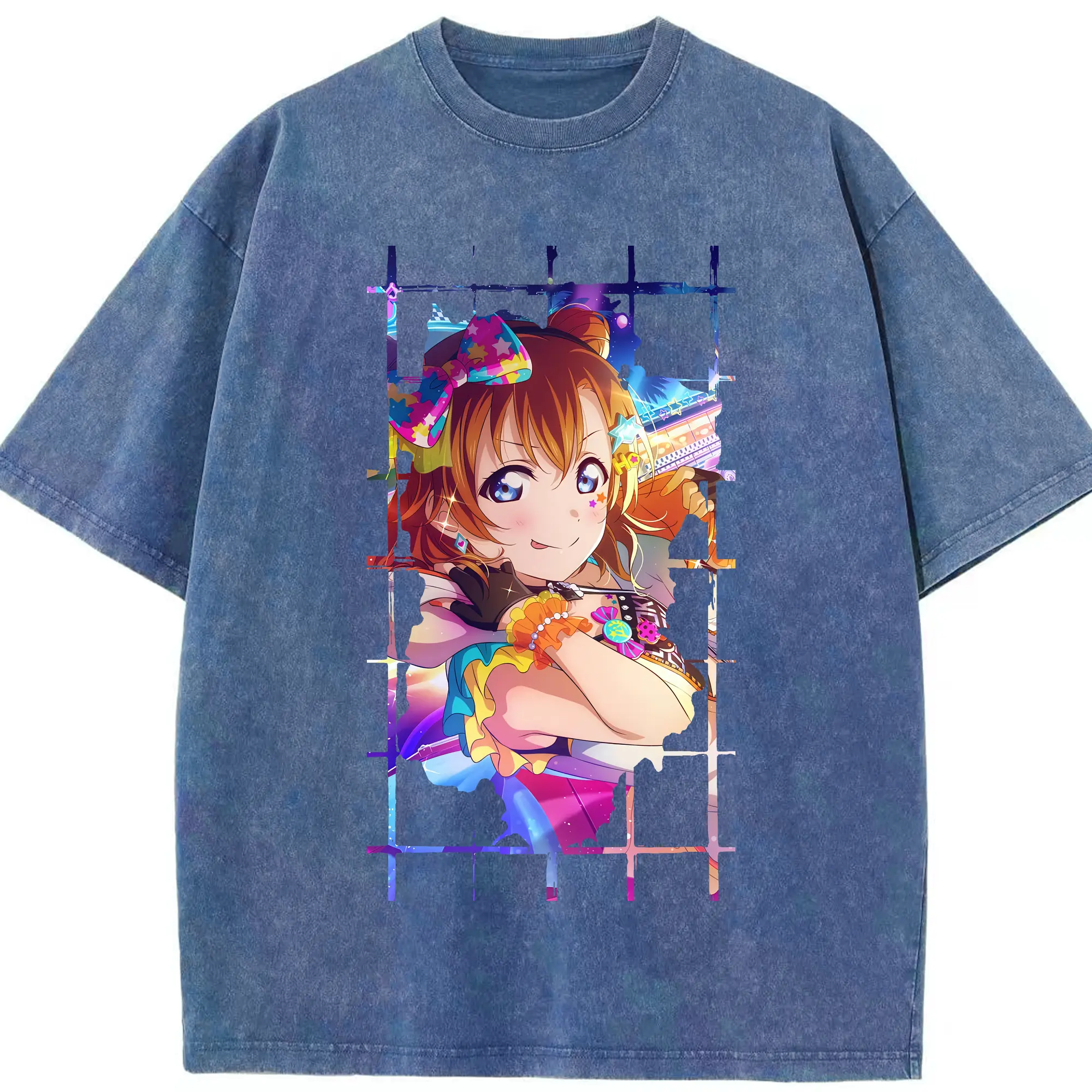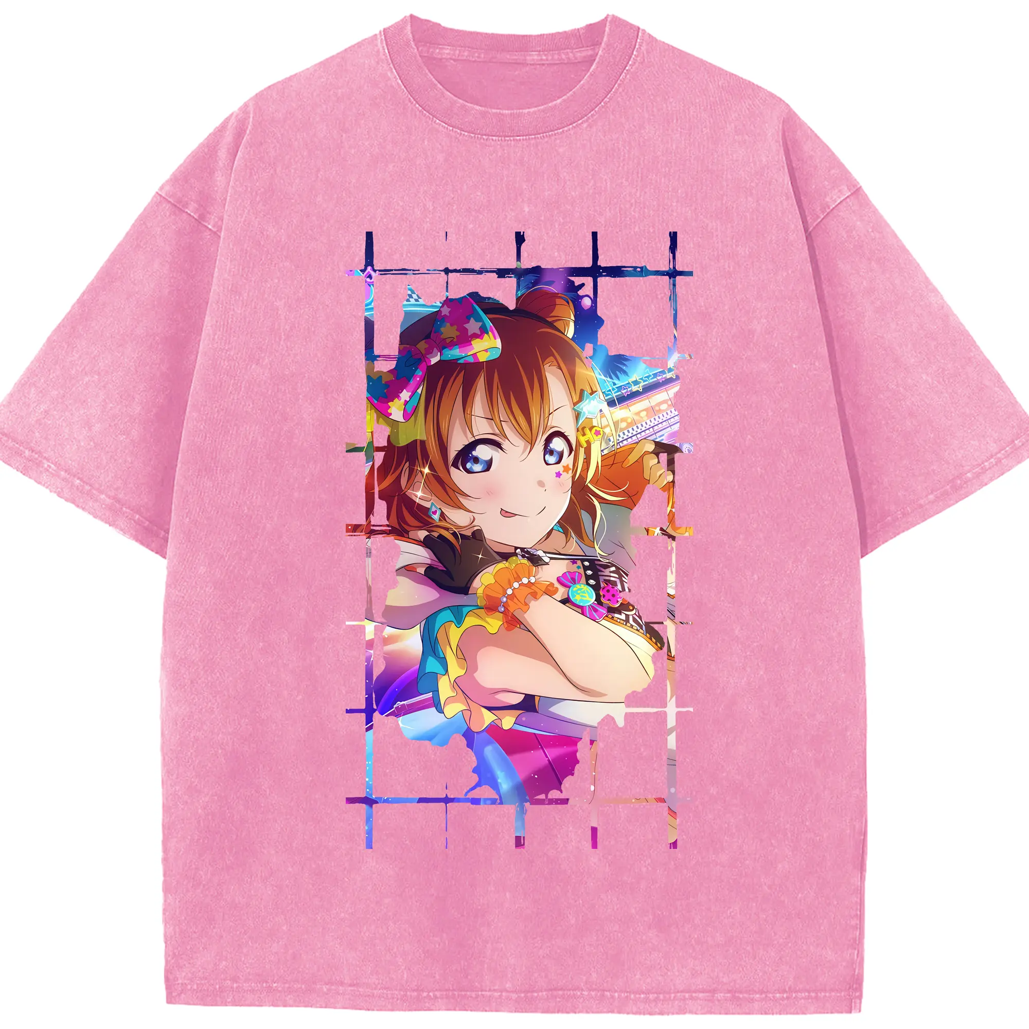 Love Live! グッズ,高坂穂乃果 - 綿100% ヴィンテージ風 半袖Tシャツ ・ 背面プリント ・ 柔らか肌触り ・ 通気性 快適 ・ スポーツ カジュアル 外出用