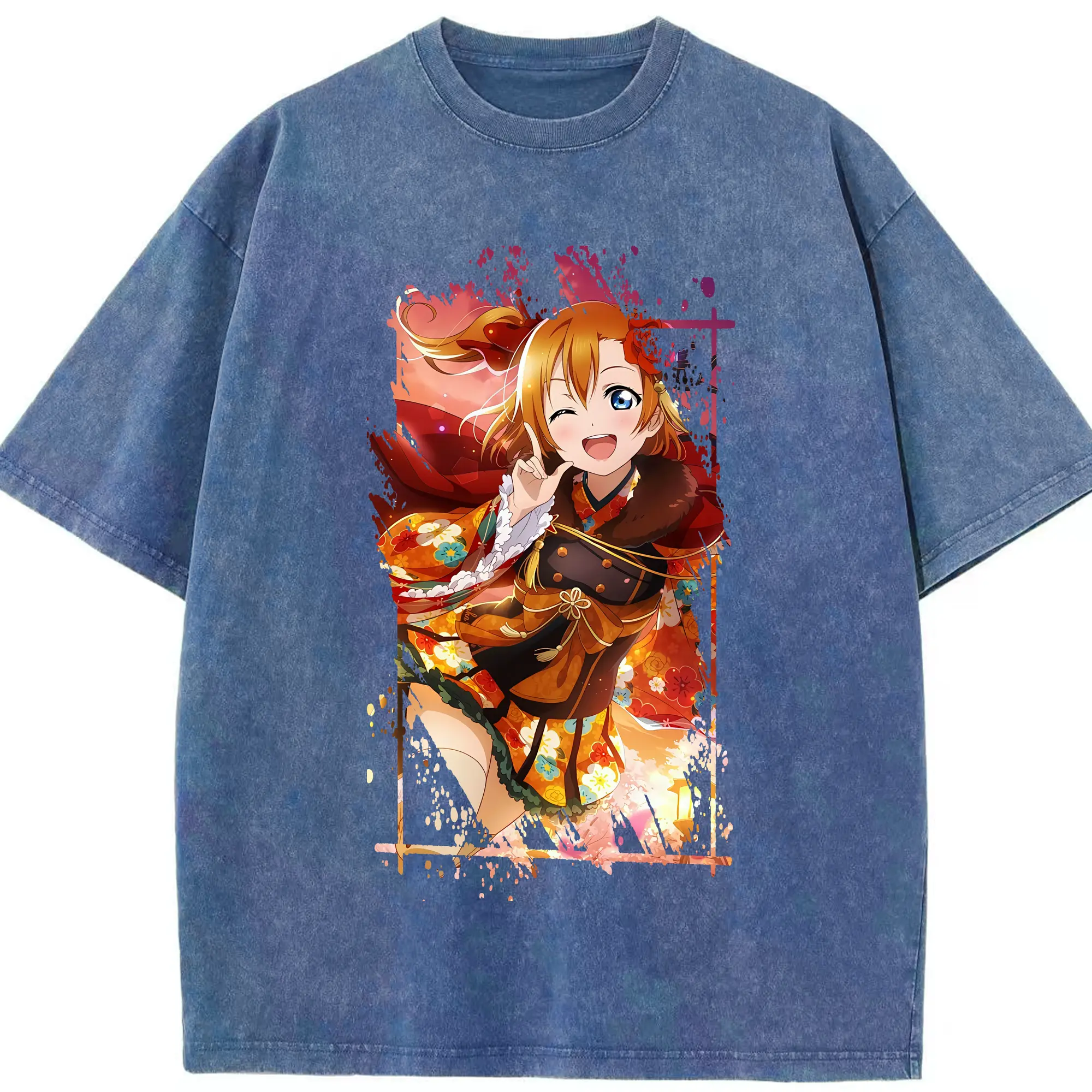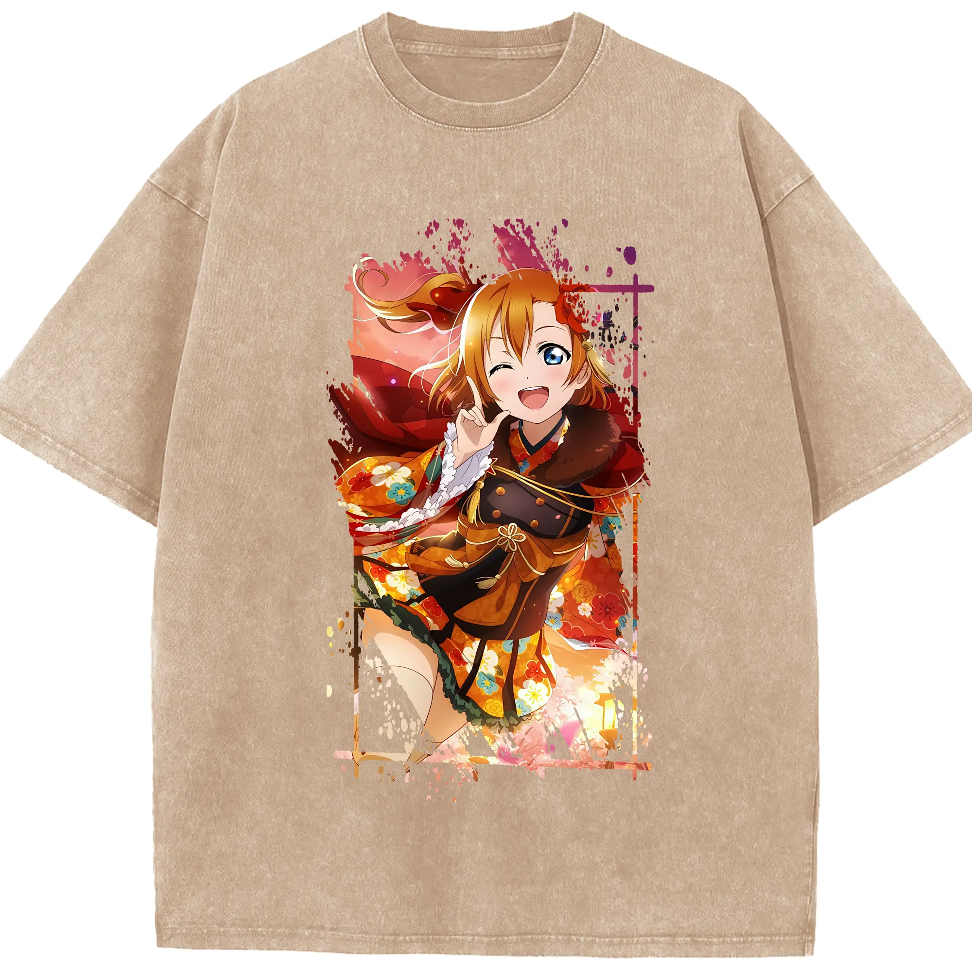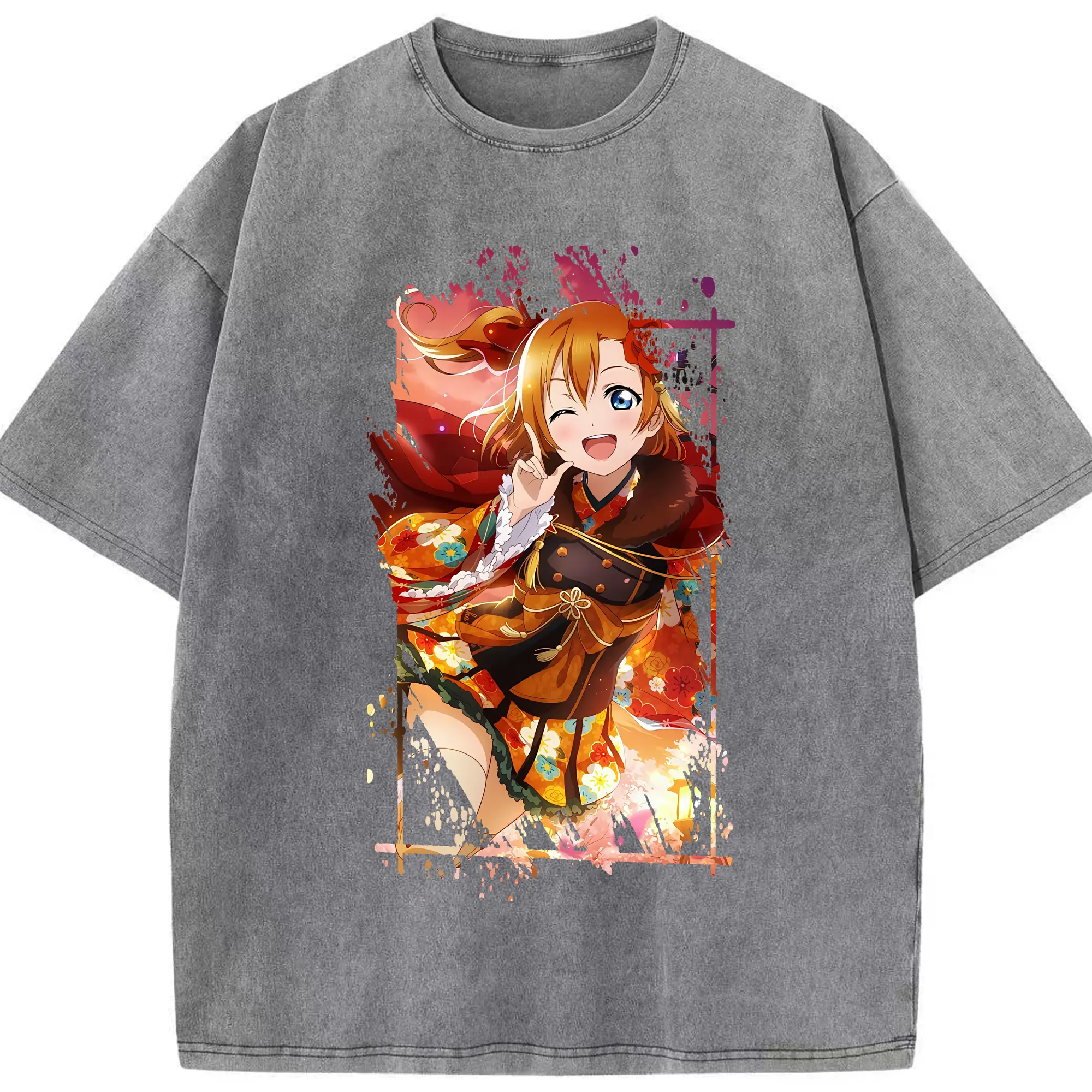 Love Live! グッズ,高坂穂乃果 - 綿100% ヴィンテージ風 半袖Tシャツ ・ 背面プリント ・ 柔らか肌触り ・ 通気性 快適 ・ スポーツ カジュアル 外出用