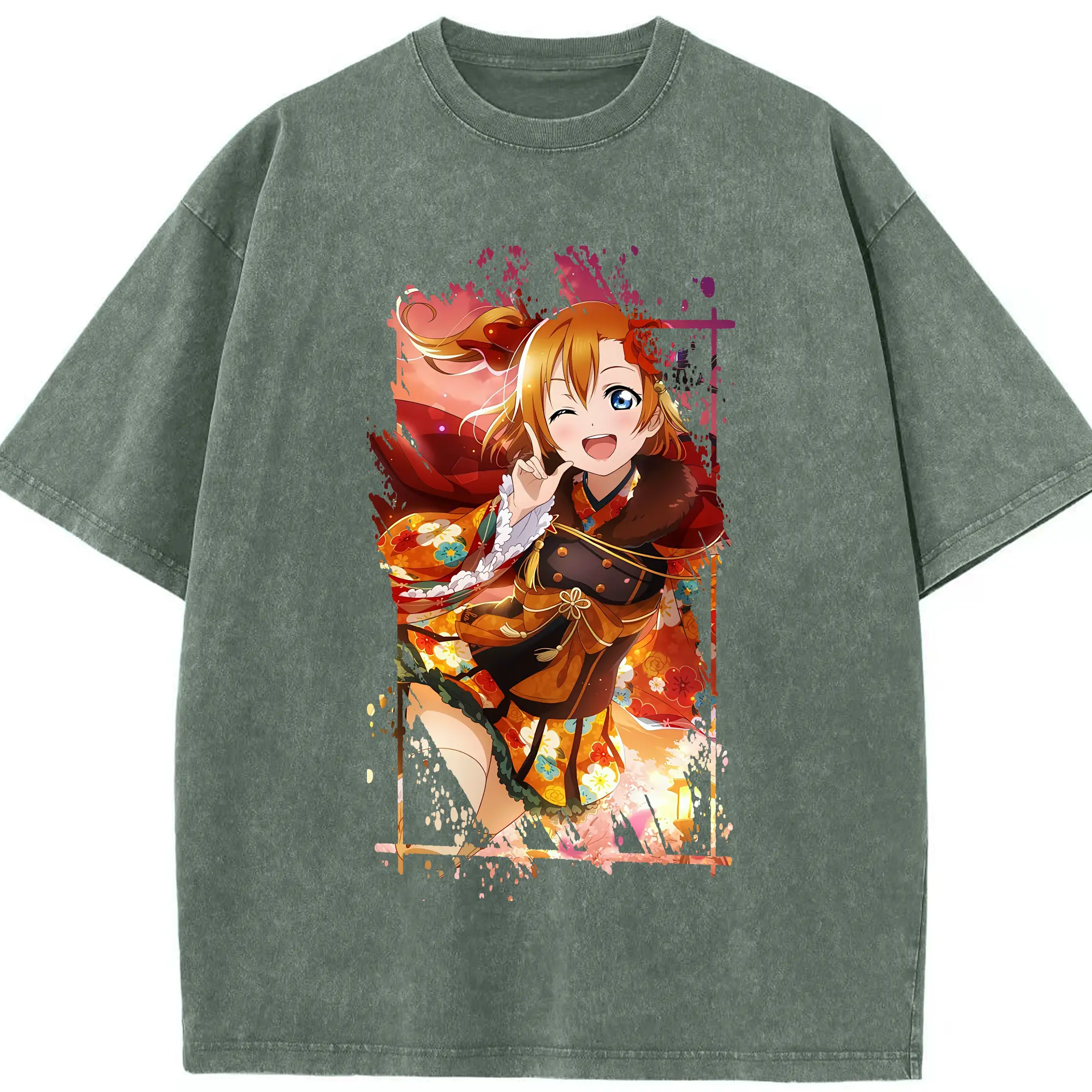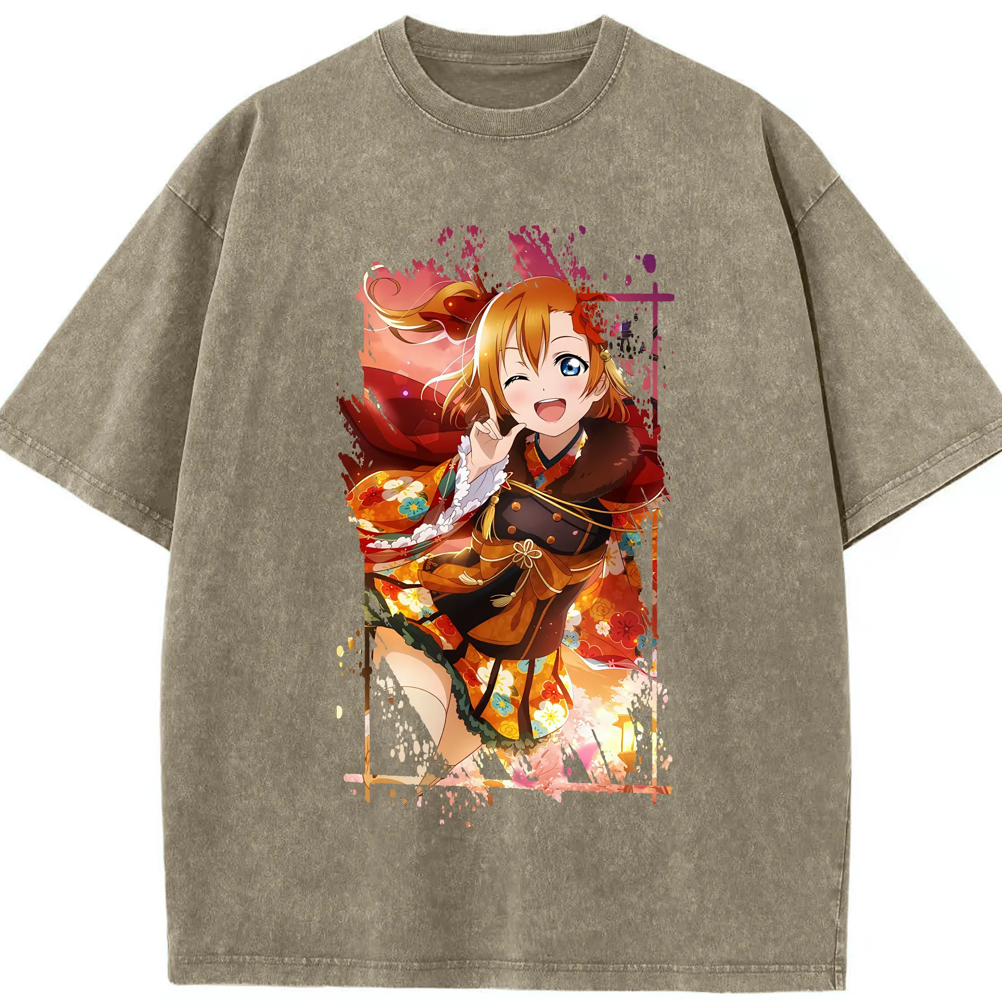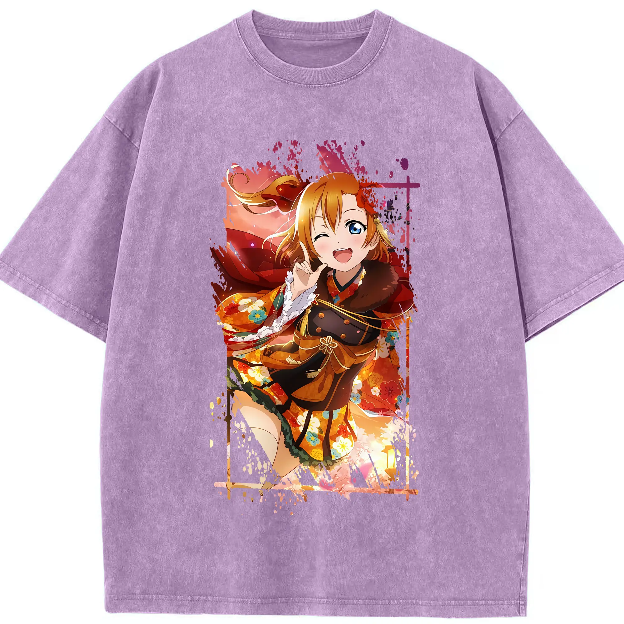 Love Live! グッズ,高坂穂乃果 - 綿100% ヴィンテージ風 半袖Tシャツ ・ 背面プリント ・ 柔らか肌触り ・ 通気性 快適 ・ スポーツ カジュアル 外出用