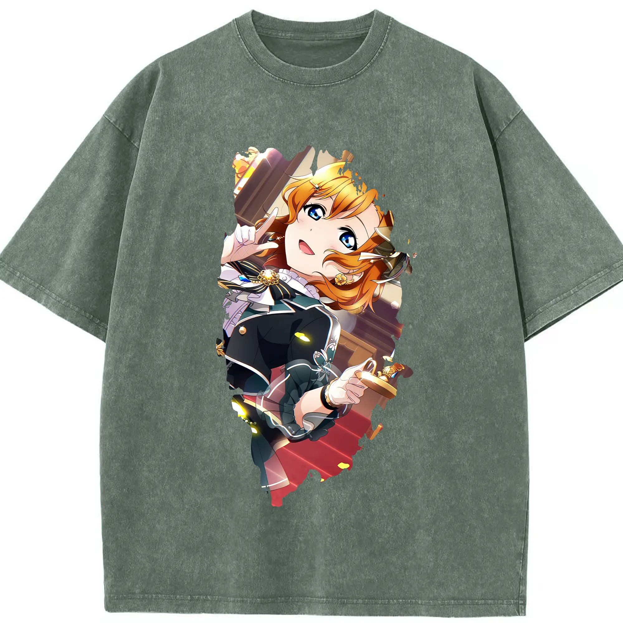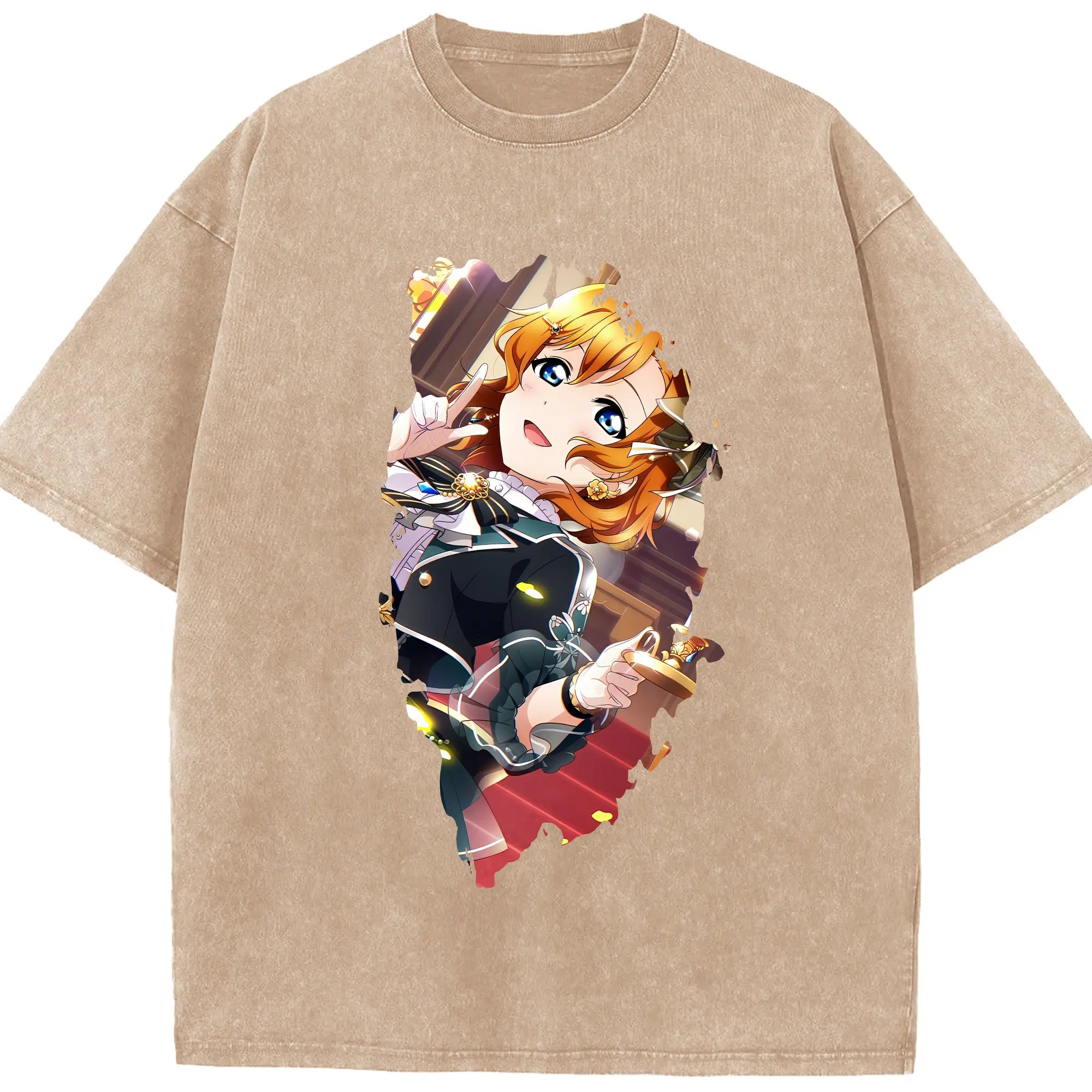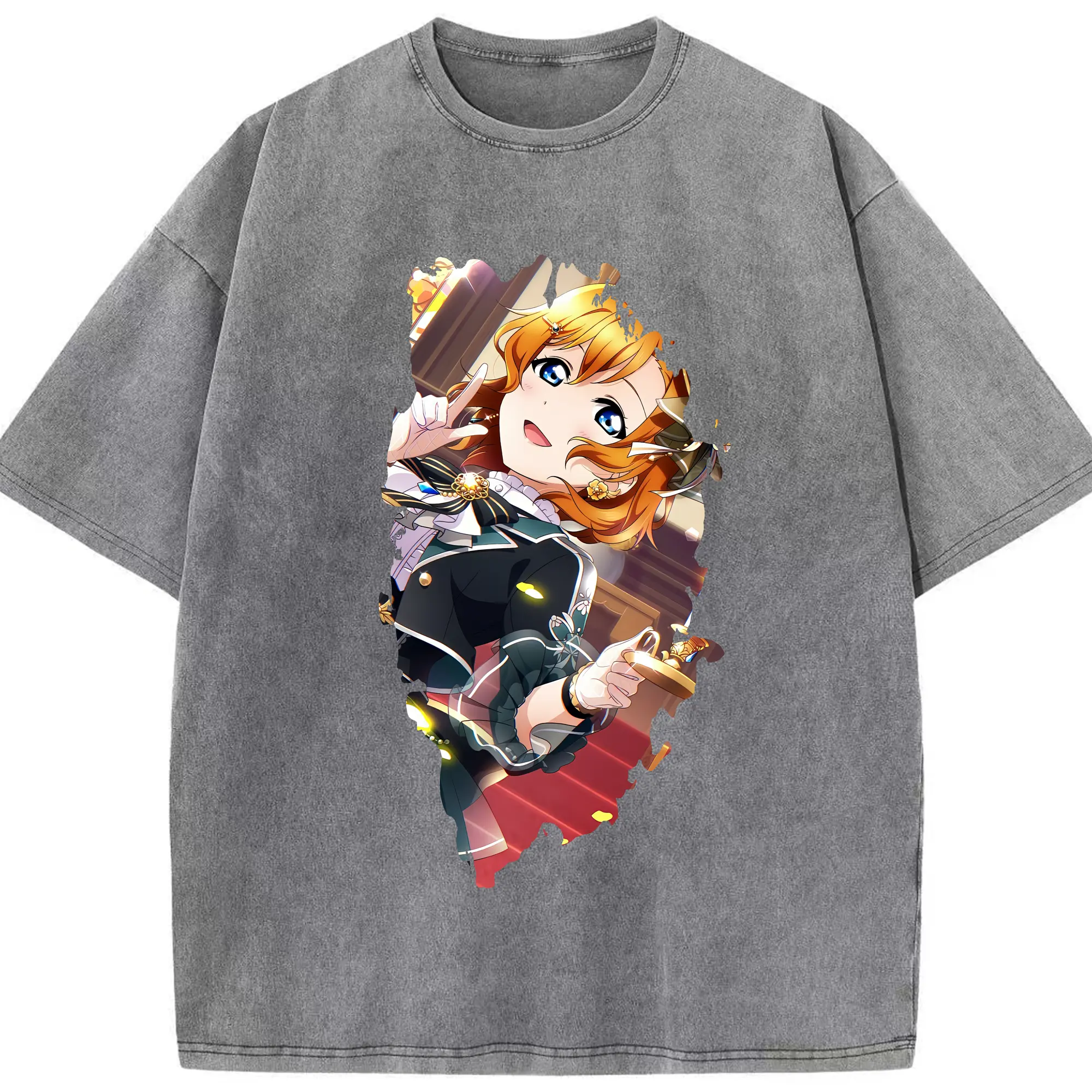 Love Live! グッズ,高坂穂乃果 - 綿100% ヴィンテージ風 半袖Tシャツ ・ 背面プリント ・ 柔らか肌触り ・ 通気性 快適 ・ スポーツ カジュアル 外出用