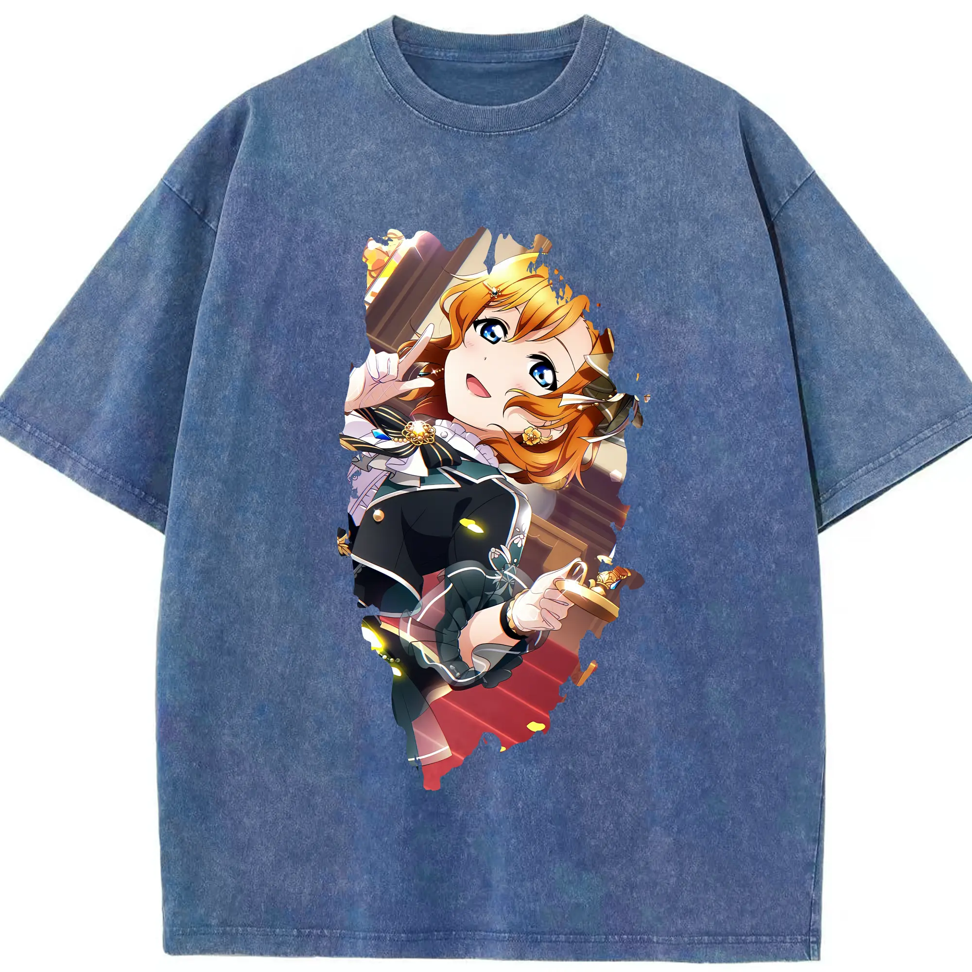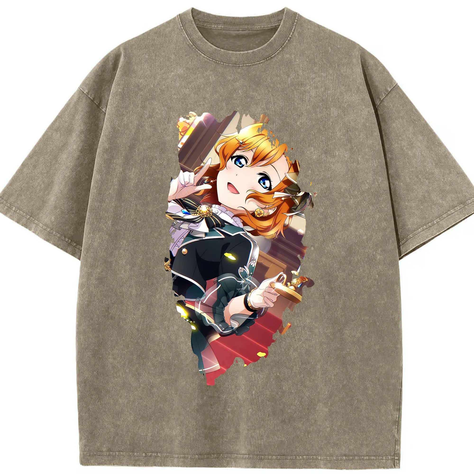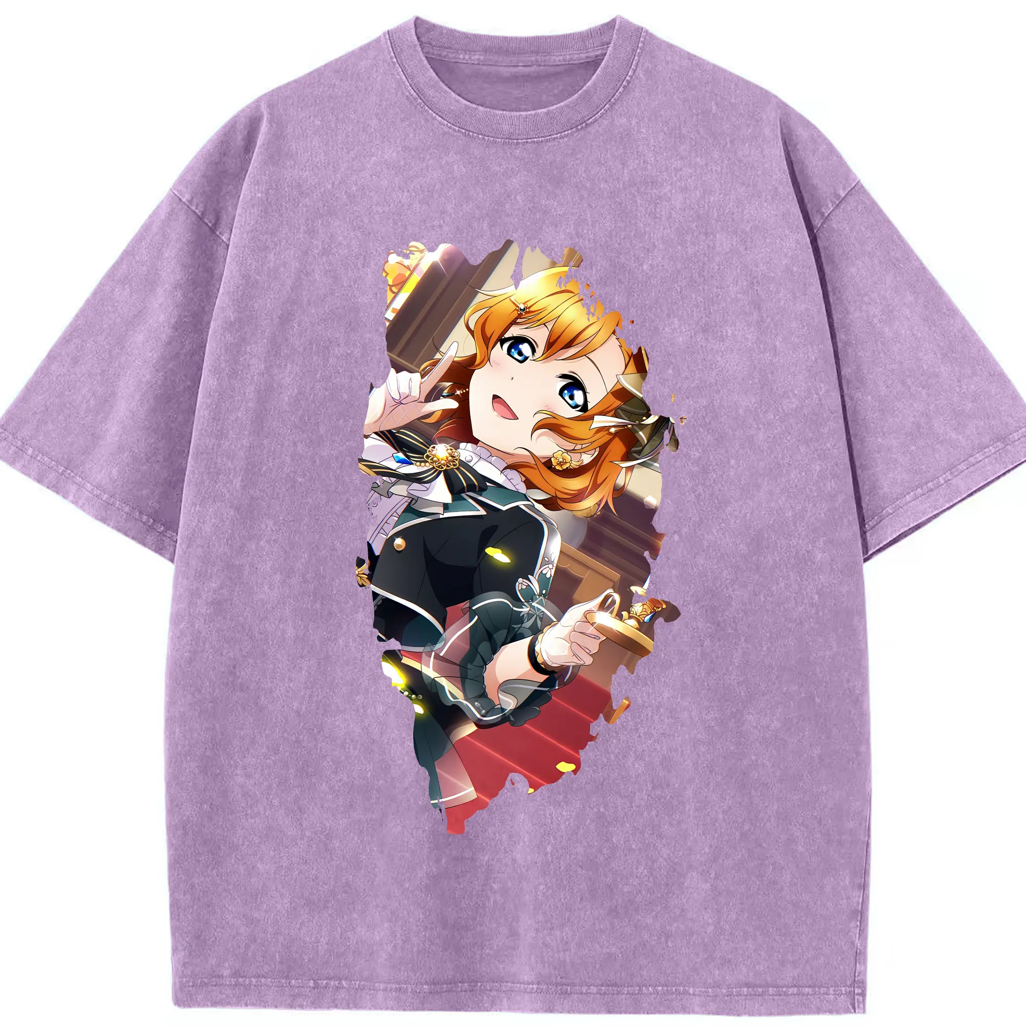 Love Live! グッズ,高坂穂乃果 - 綿100% ヴィンテージ風 半袖Tシャツ ・ 背面プリント ・ 柔らか肌触り ・ 通気性 快適 ・ スポーツ カジュアル 外出用