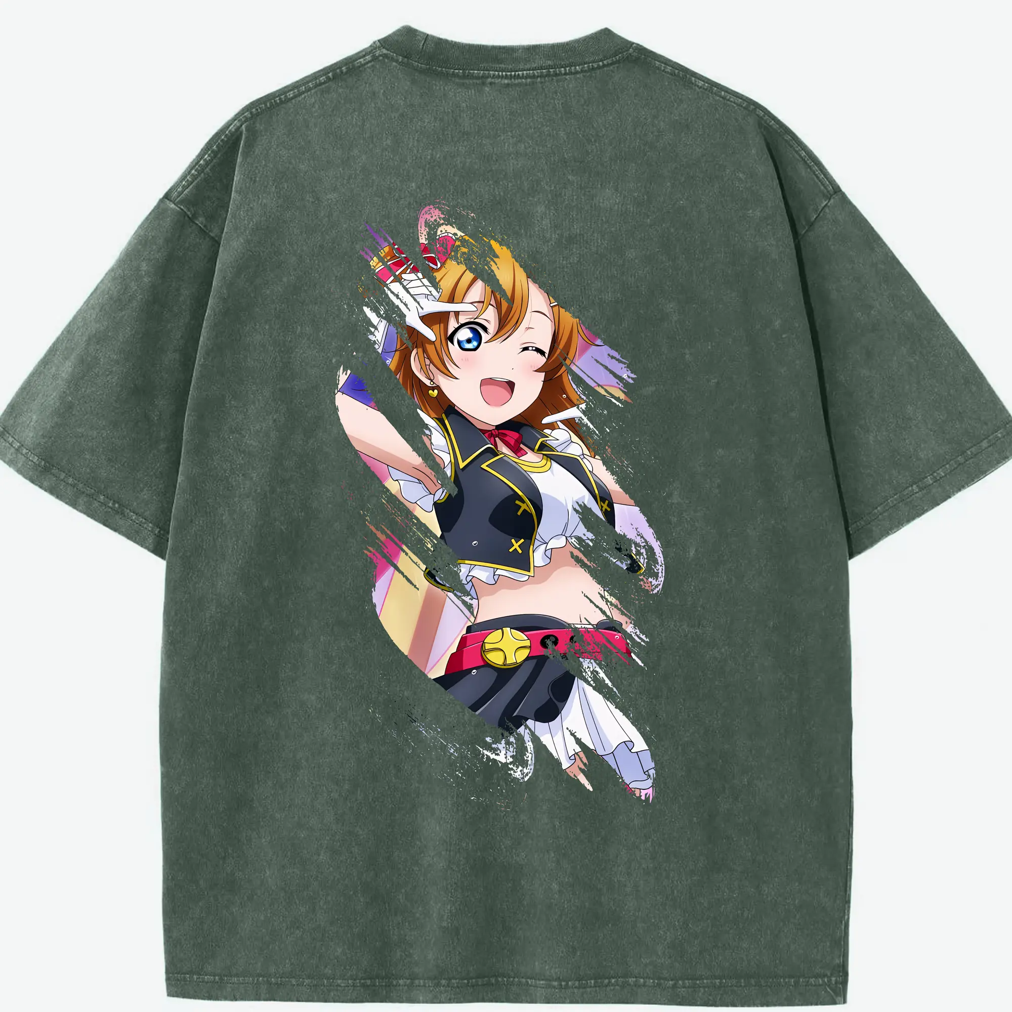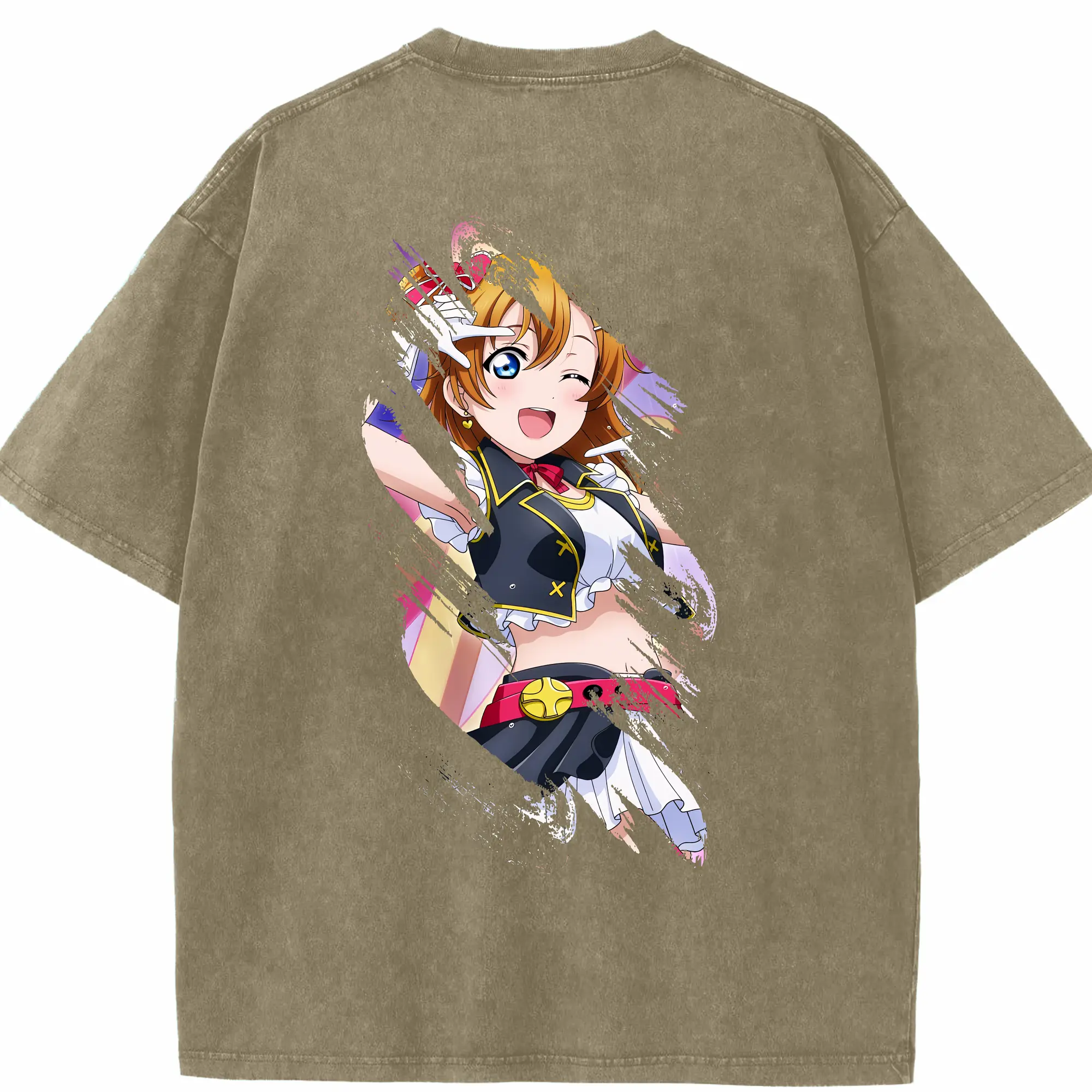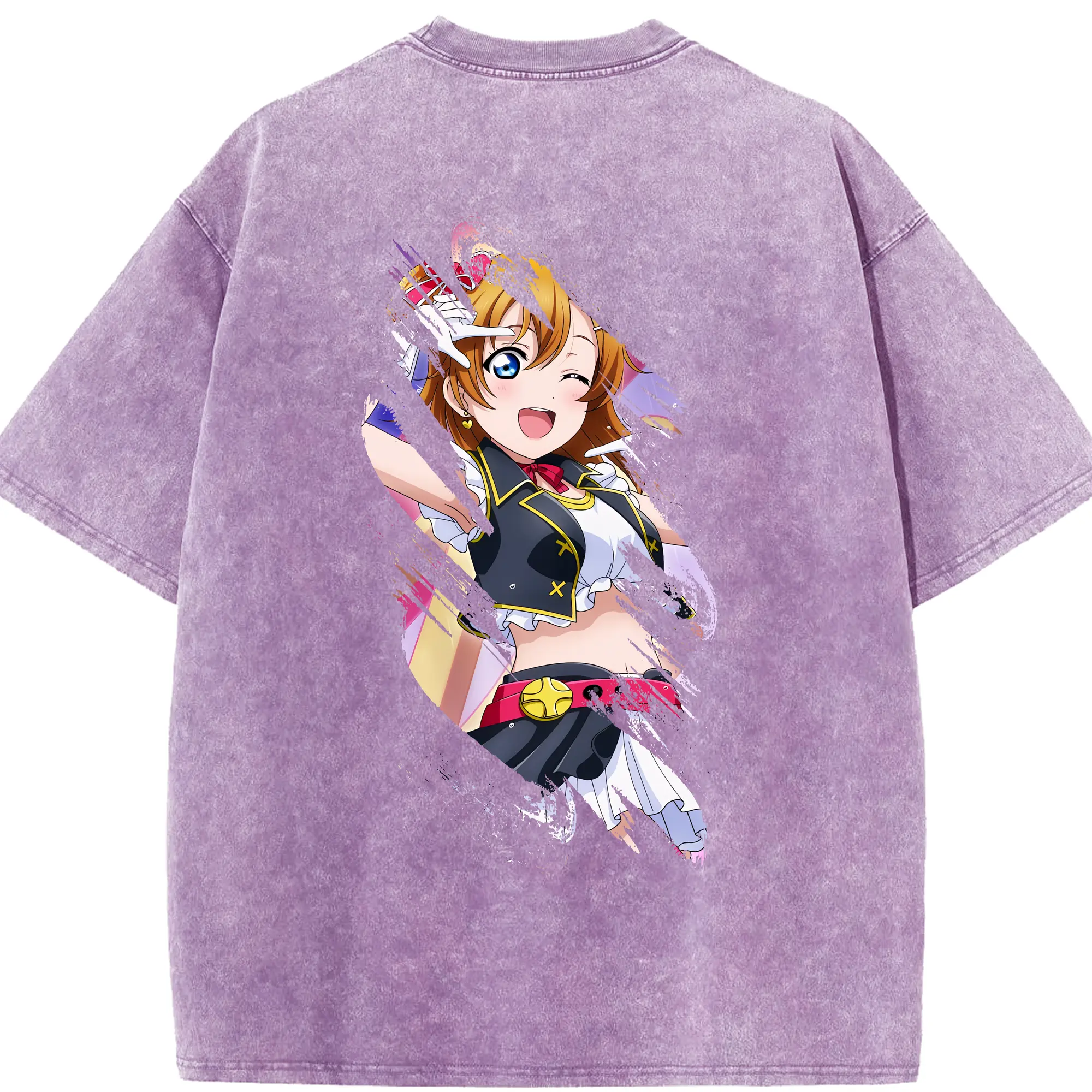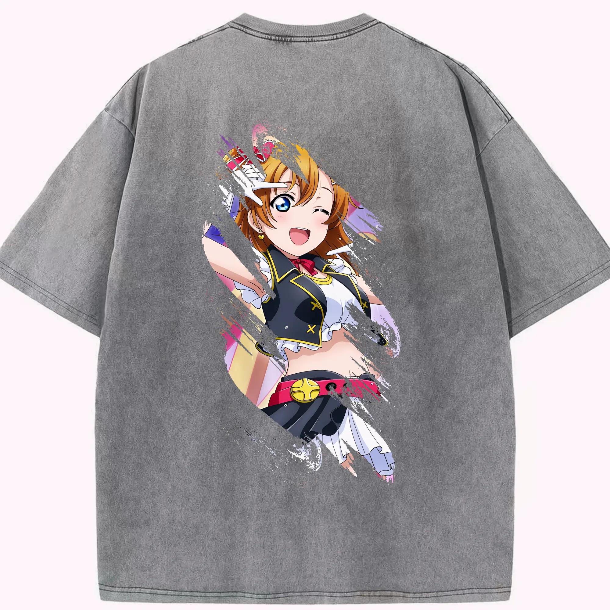 Love Live! グッズ,高坂穂乃果 - 綿100% ヴィンテージ風 半袖Tシャツ ・ フロントプリント ・ 柔らか肌触り ・ 通気性 快適 ・ スポーツ カジュアル 外出用