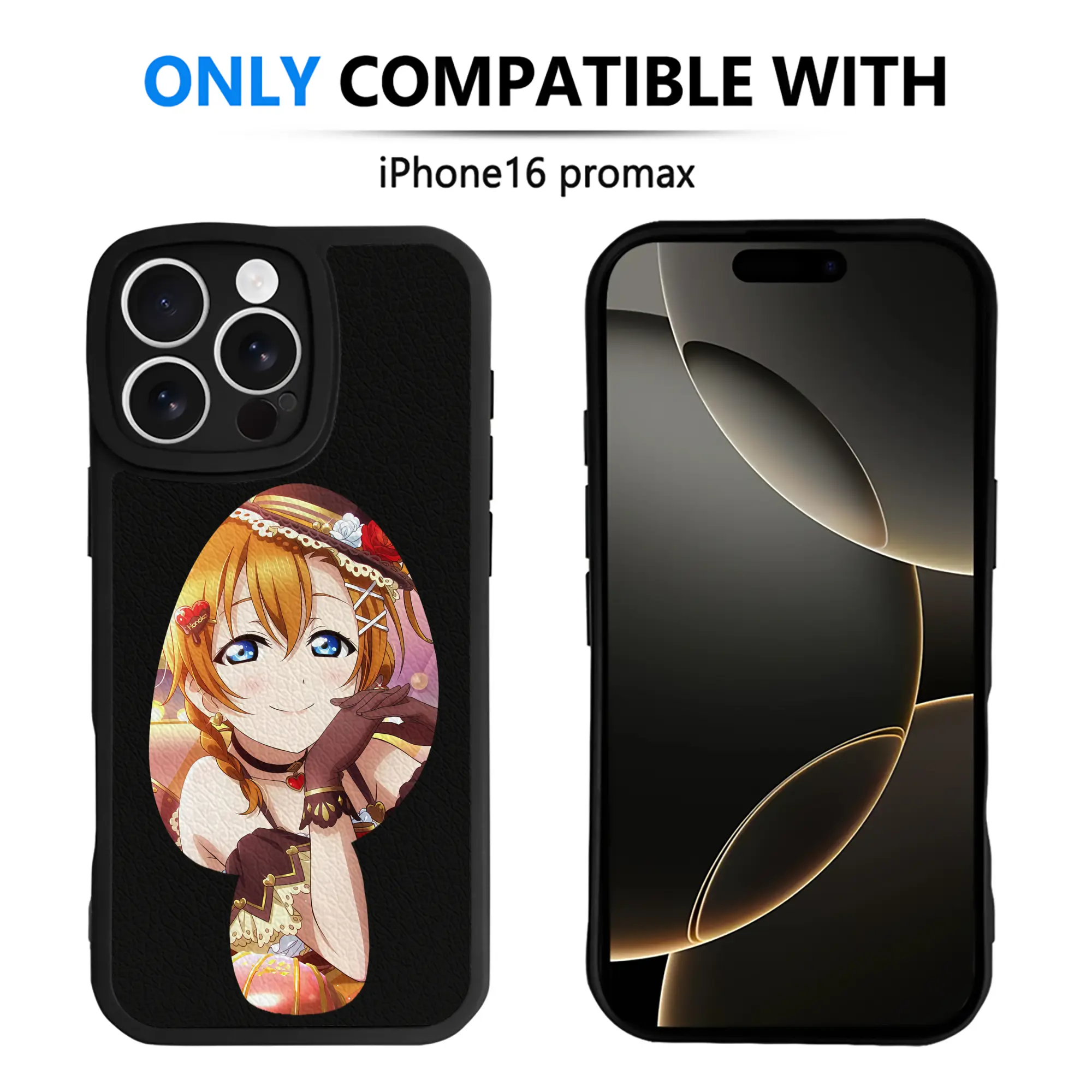 Love Live! グッズ,高坂穂乃果 - IPhone 16シリーズ対応 ・ シリコンスマホケース ・ レザー調 ・ 高精度フィット ・ 耐衝撃 ・ ワイヤレス充電対応 ・ 精密カット