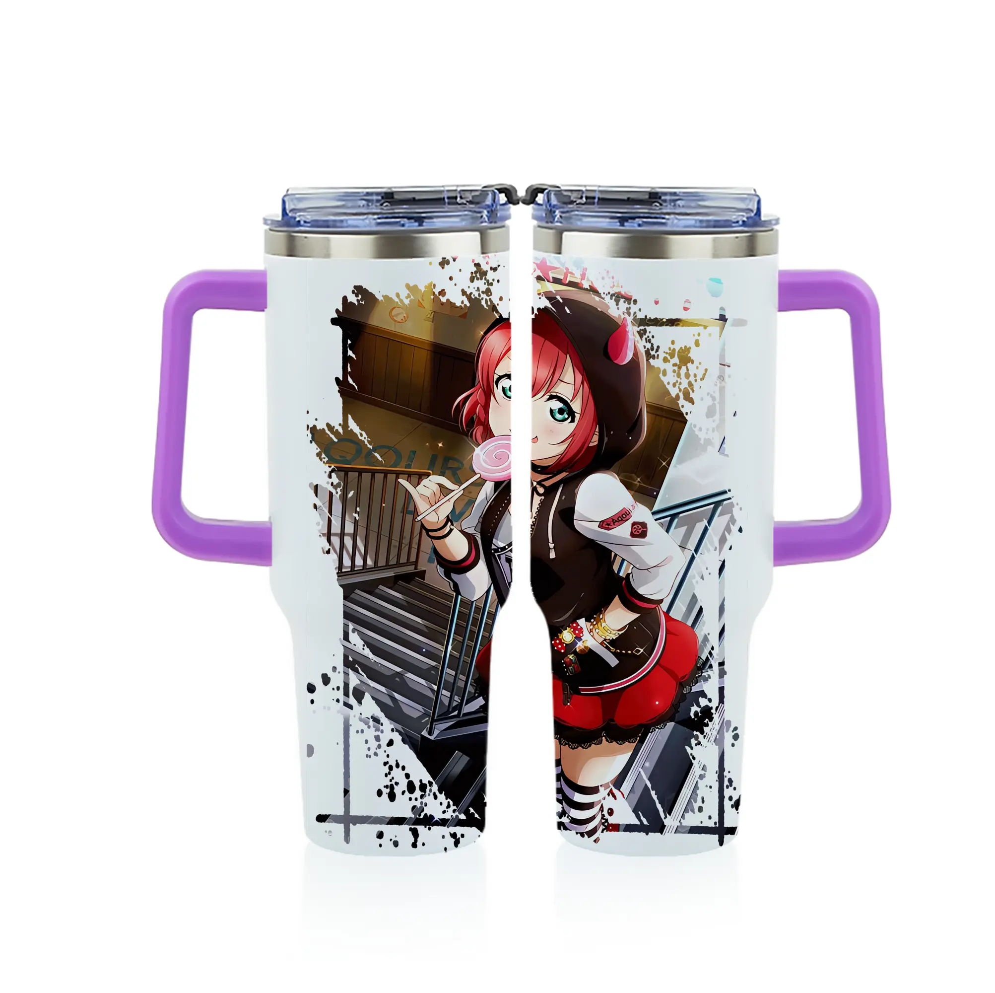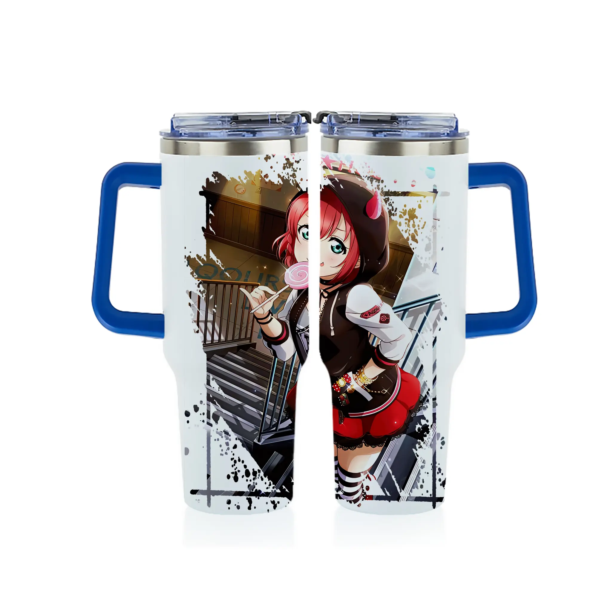 Love Live! グッズ,黒澤ルビィ - 1200mL フルプリント車用タンブラー ・ 304ステンレス 内側 ・ 201ステンレス 外側 ・ 保温 保冷 ・ 通勤 ドライブ アウトドア用