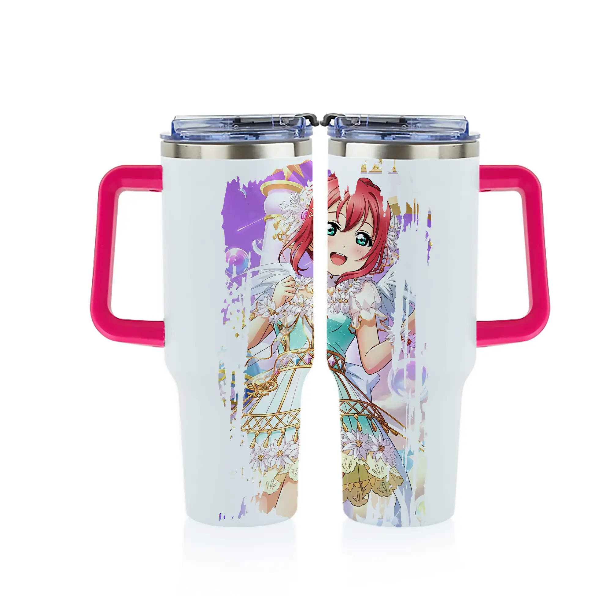 Love Live! グッズ,黒澤ルビィ - 1200mL フルプリント車用タンブラー ・ 304ステンレス 内側 ・ 201ステンレス 外側 ・ 保温 保冷 ・ 通勤 ドライブ アウトドア用