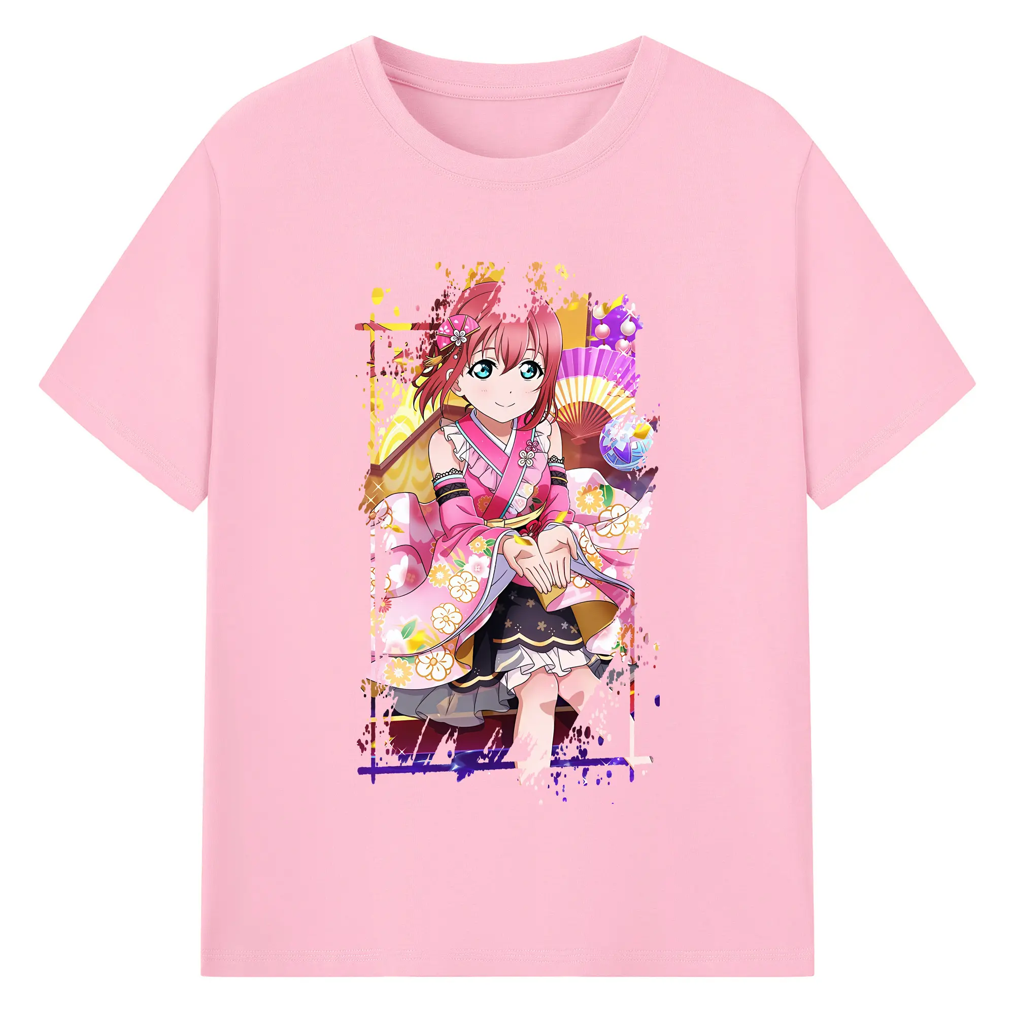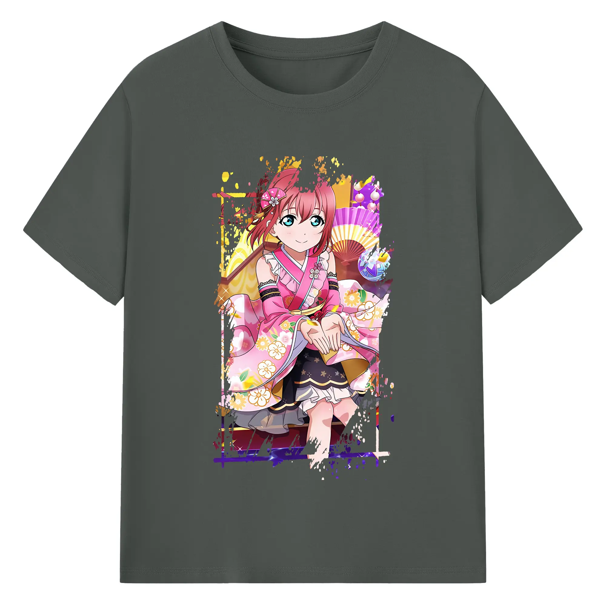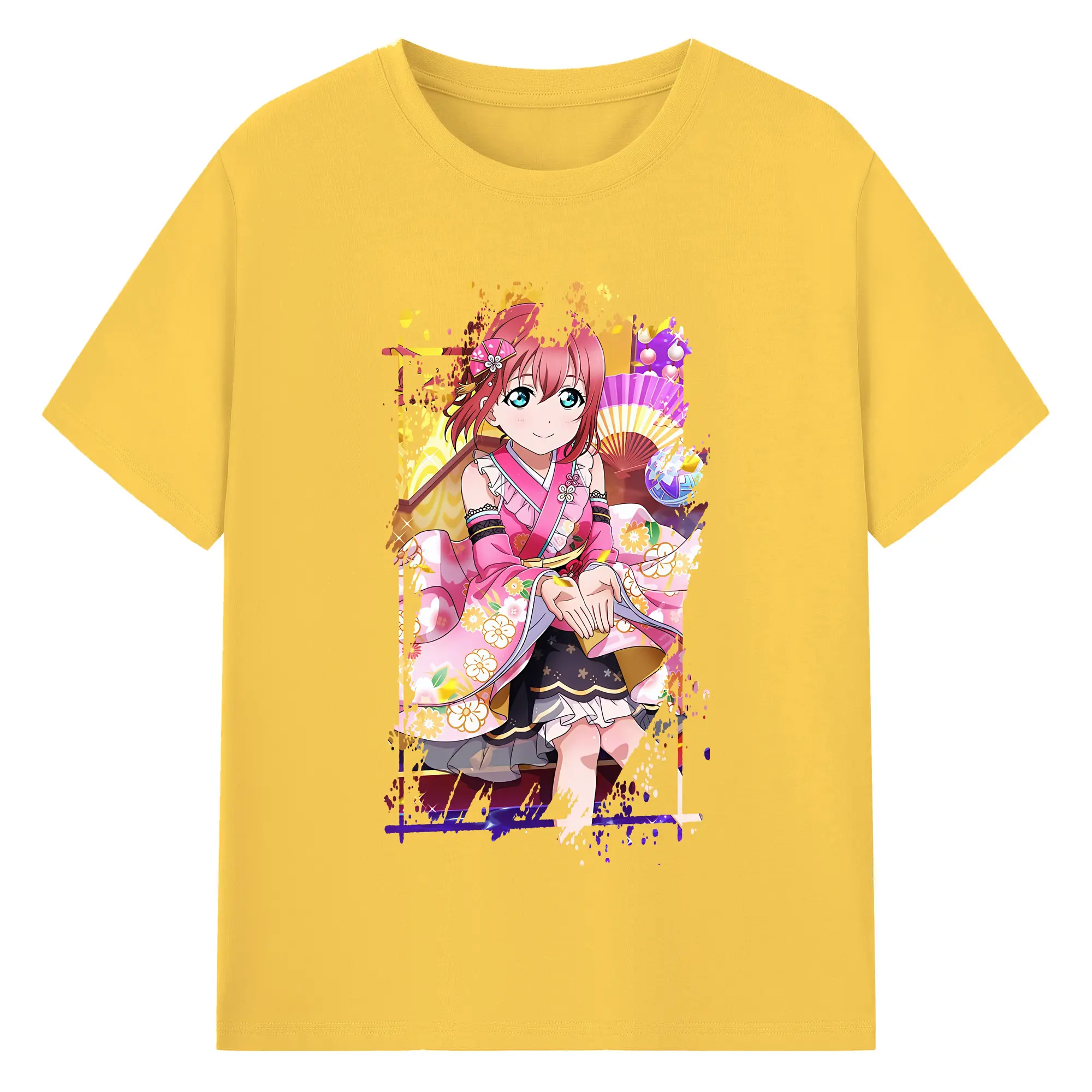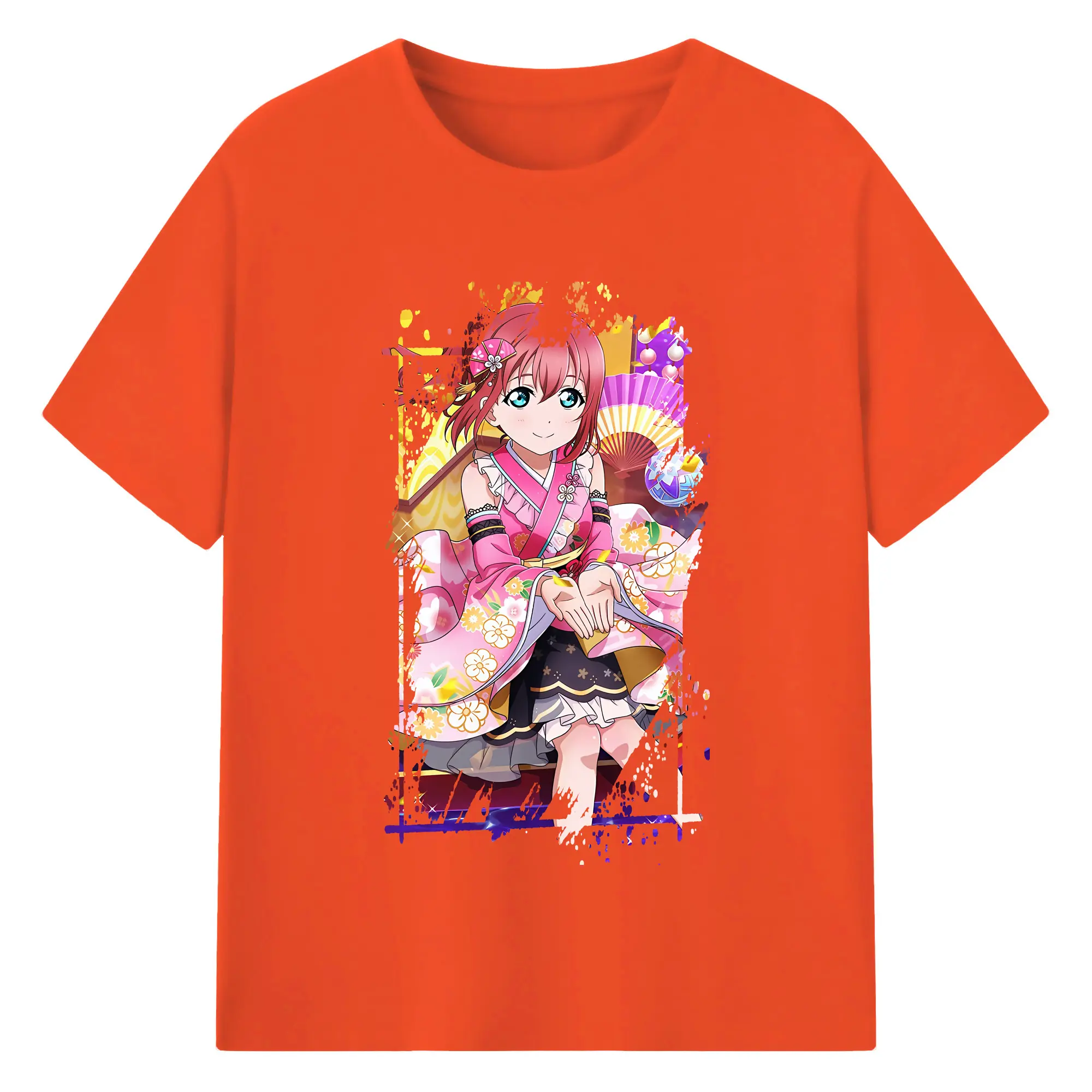 Love Live! グッズ,黒澤ルビィ - 綿100% ヴィンテージ風 半袖Tシャツ ・ フロントプリント ・ 柔らか肌触り ・ 通気性 快適 ・ スポーツ カジュアル 外出用